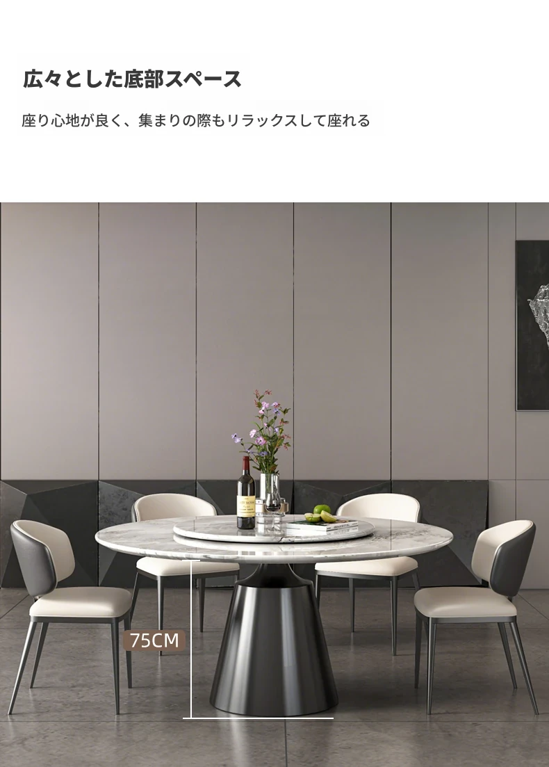 1.5M大理石ダイニングテーブル【回転盤あり】+猫の爪研ぎ用の皮製ダイニングチェア4脚