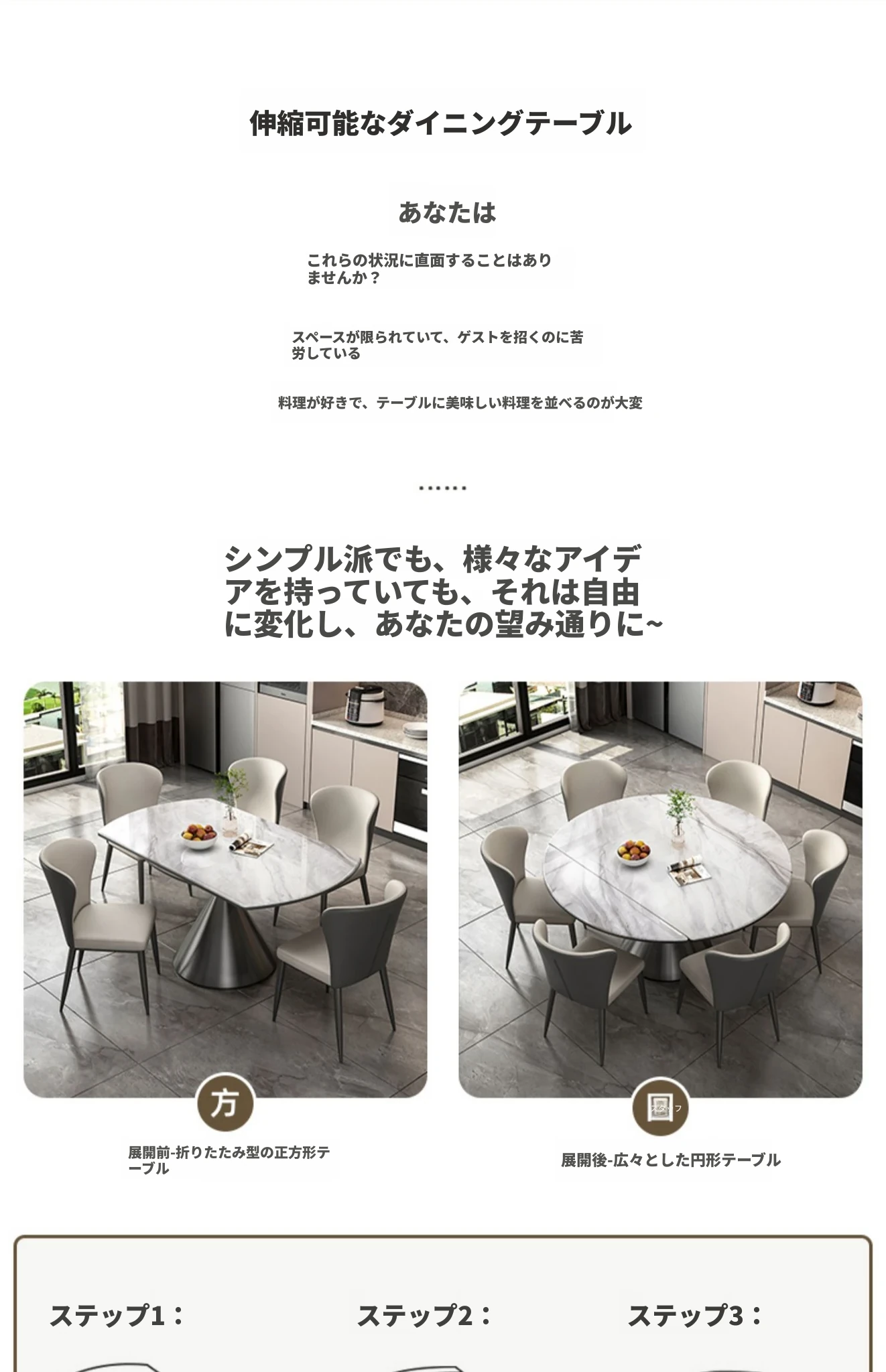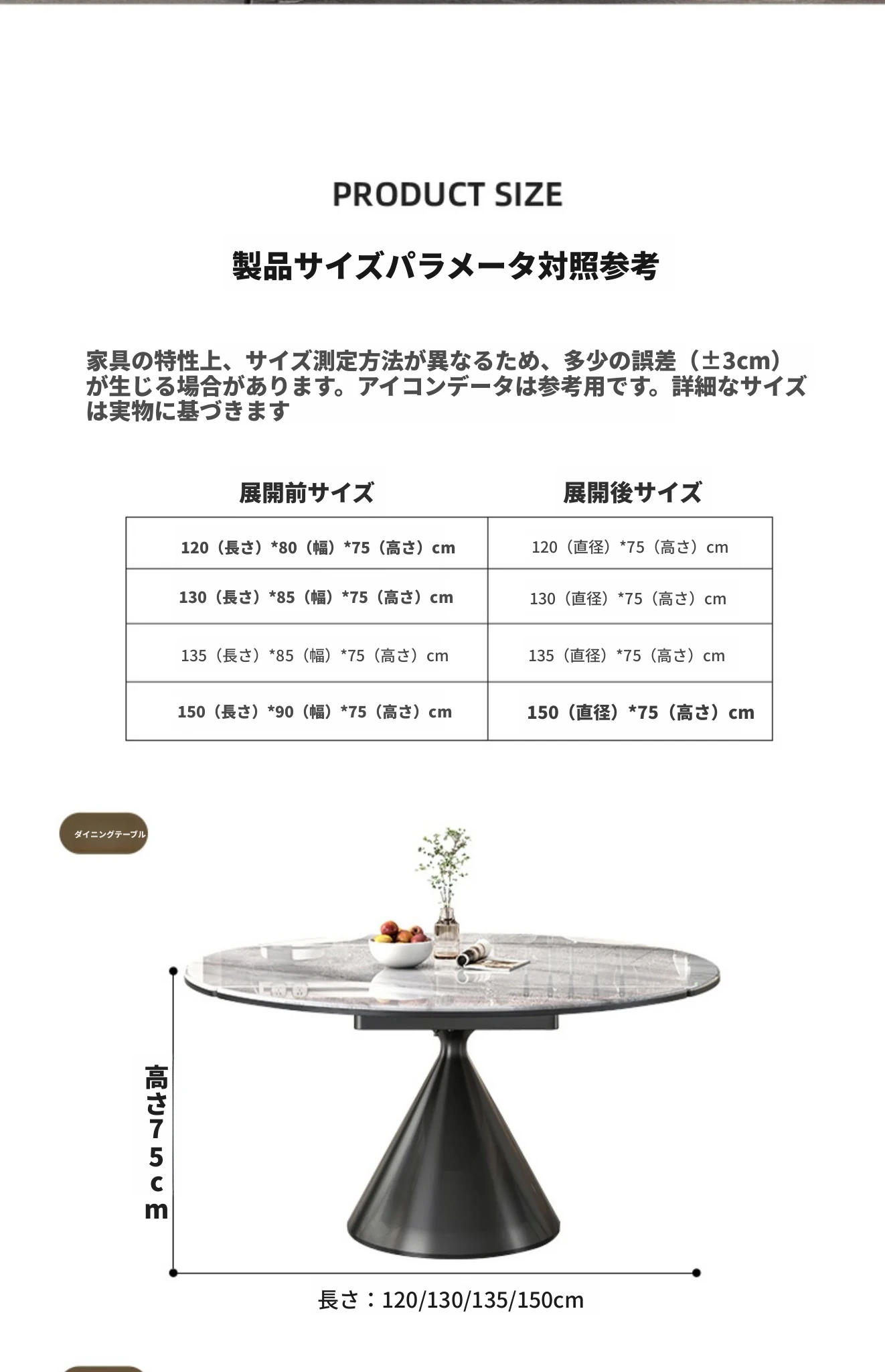 1.5Mマイクロクリスタル石伸縮ダイニングテーブル