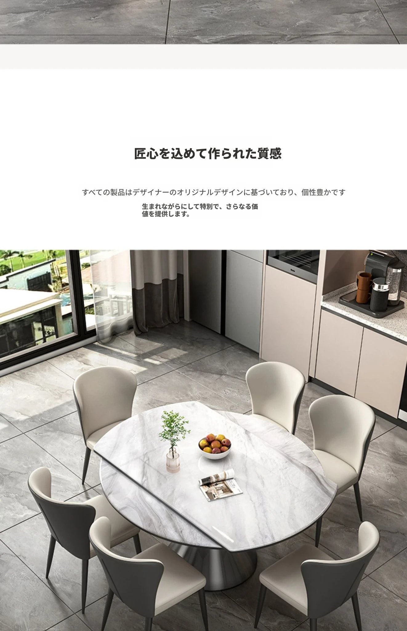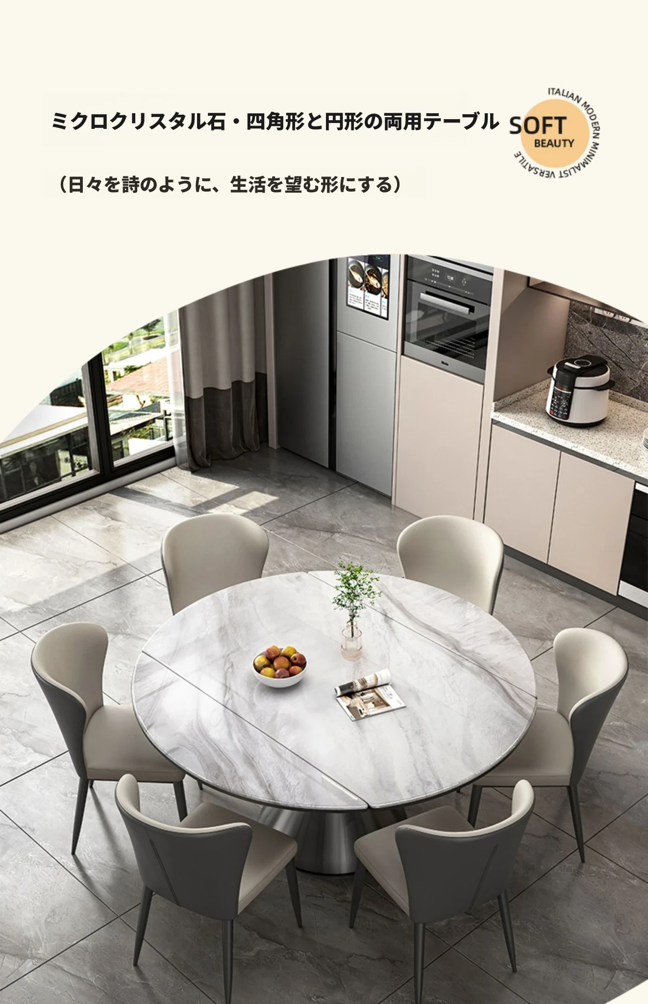 1.5Mマイクロクリスタル石伸縮ダイニングテーブル+猫爪皮製ダイニングチェア*6