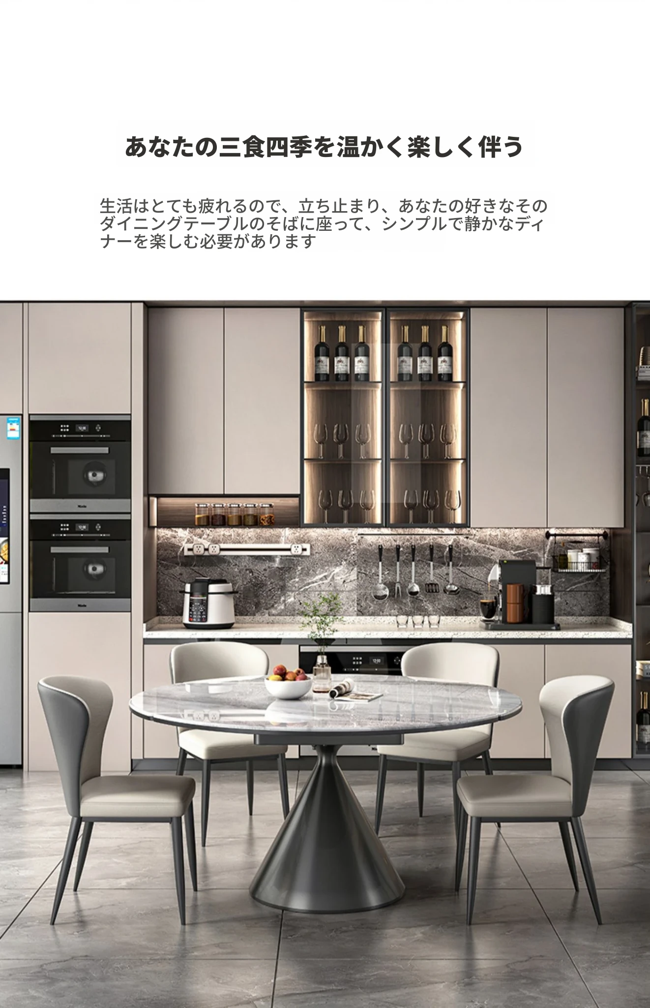 1.5Mマイクロクリスタル石伸縮ダイニングテーブル+猫爪皮製ダイニングチェア*4