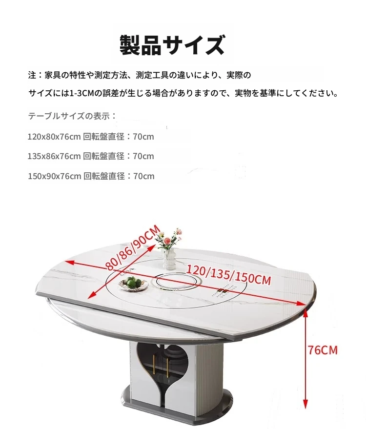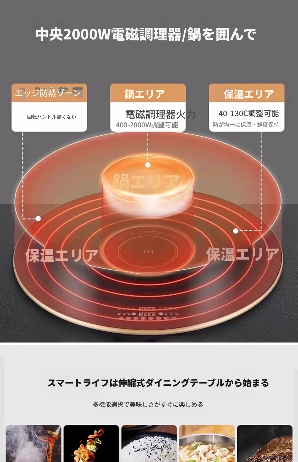 1.35メートル佛山ダイニングテーブル【AI音声制御温菜板】+自動回転台+電磁調理器