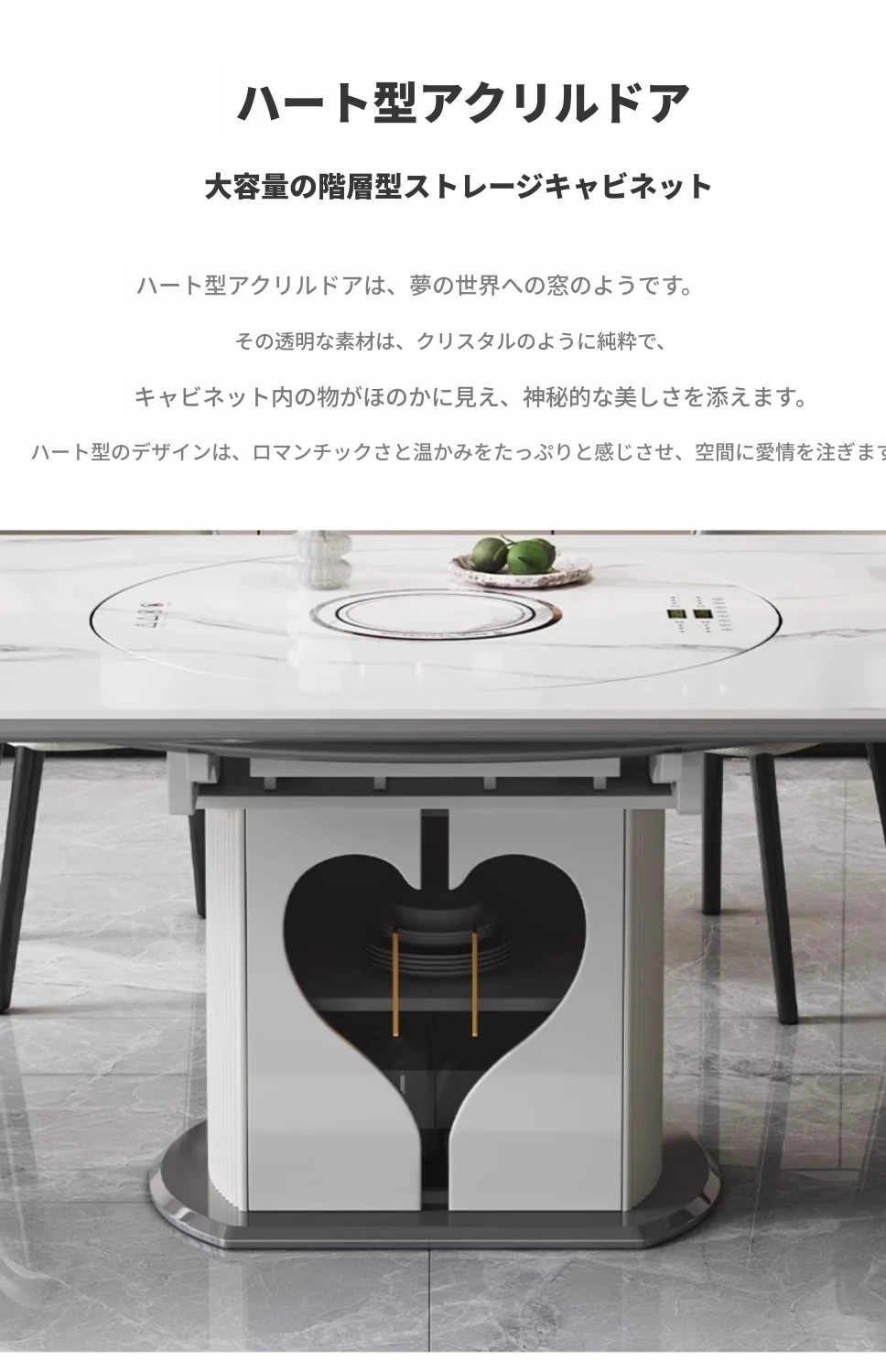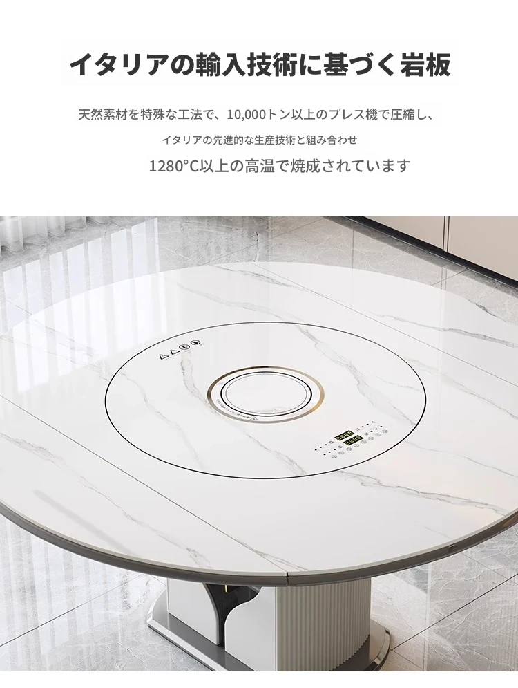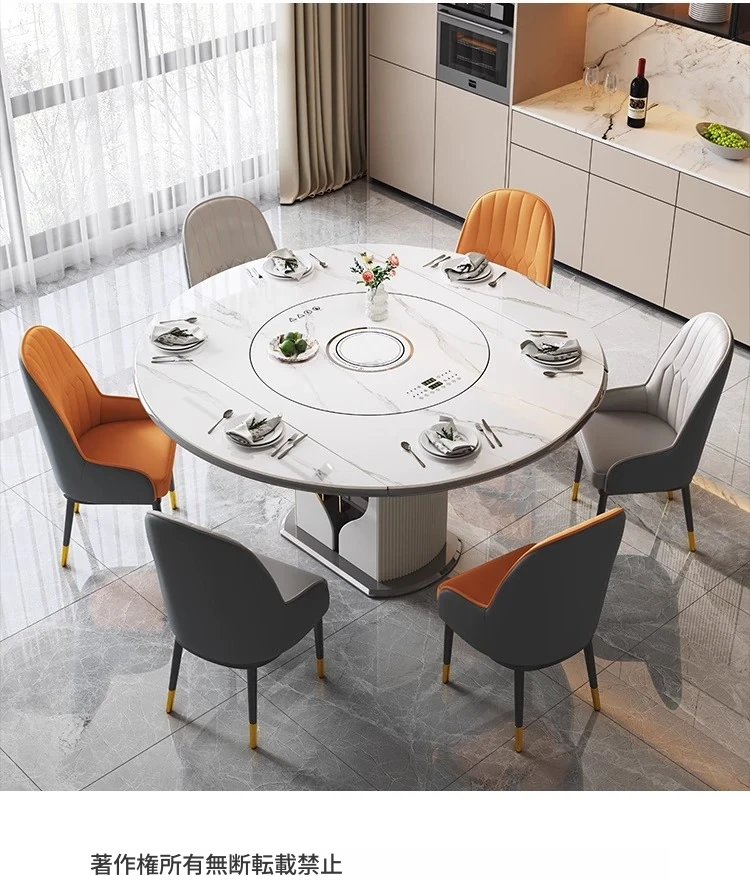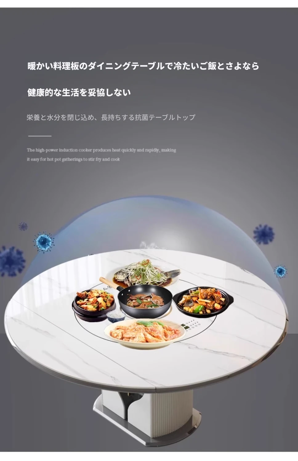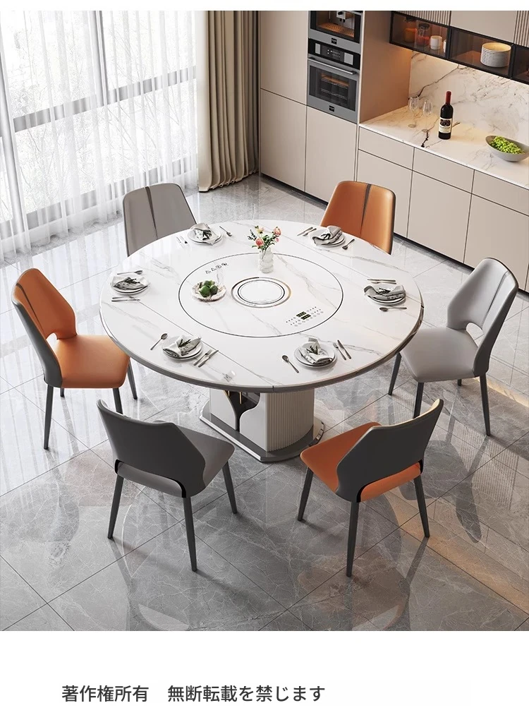 1.5メートル佛山ダイニングテーブル+8椅子【AI音声制御温菜板】+自動回転台+電磁調理器