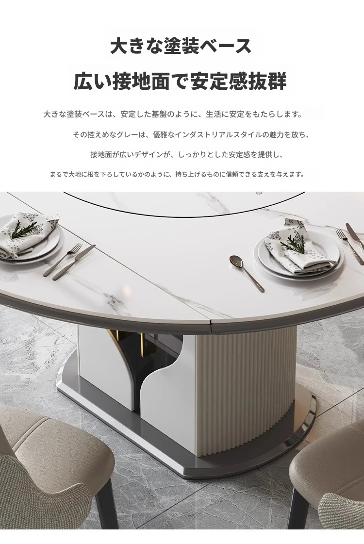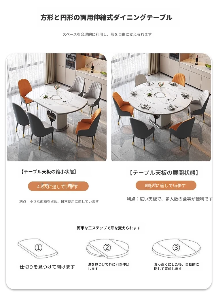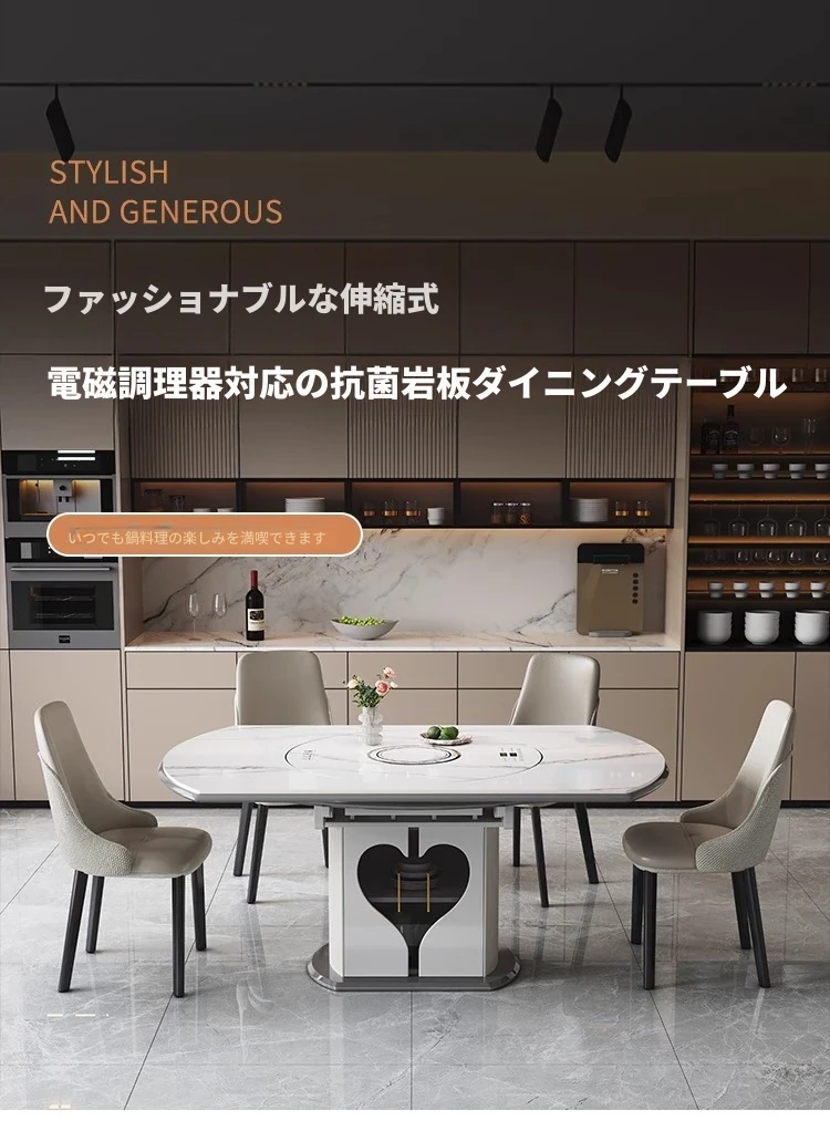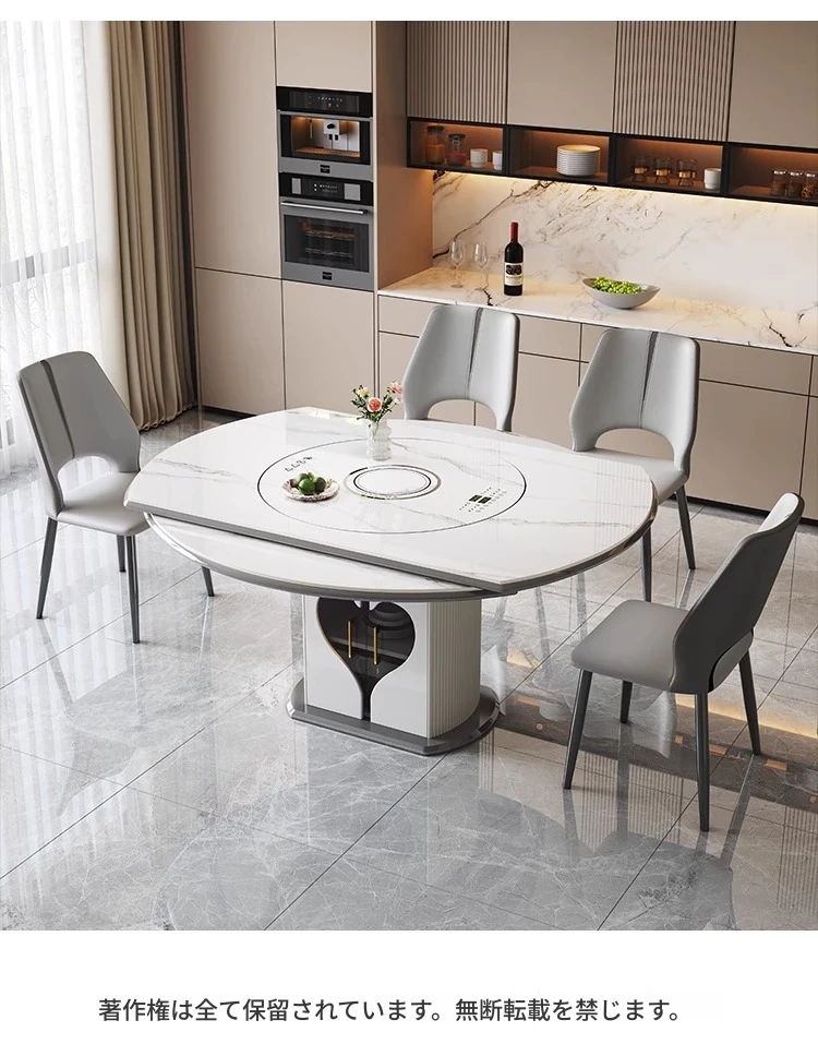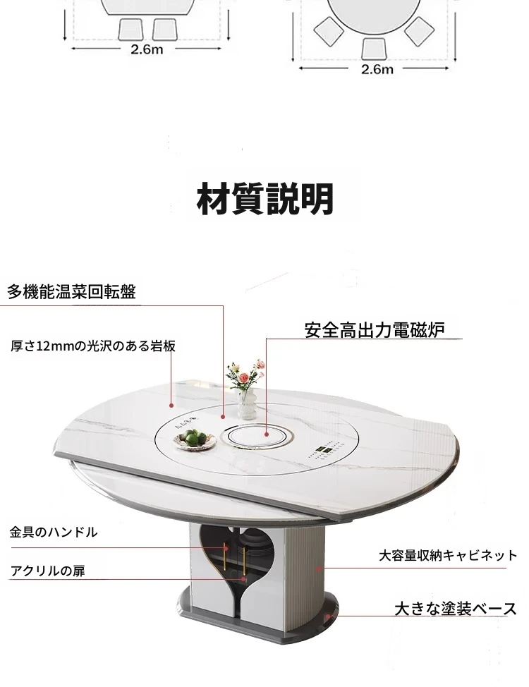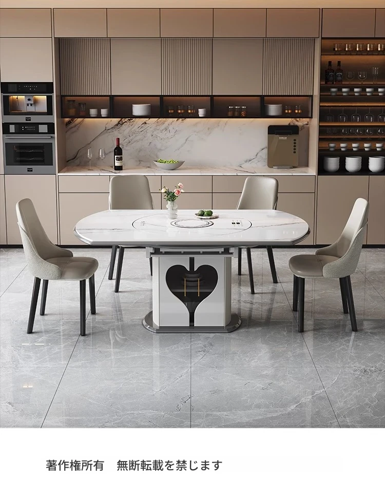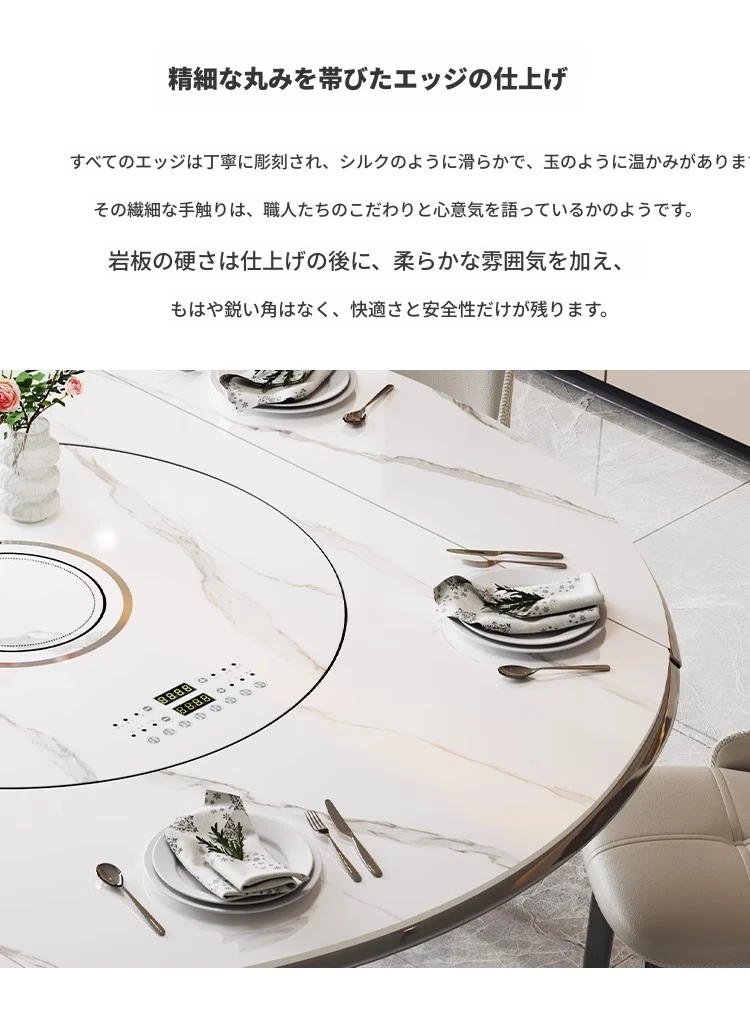 1.5メートル佛山ダイニングテーブル+8椅子【AI音声制御温菜板】+自動回転台+電磁調理器