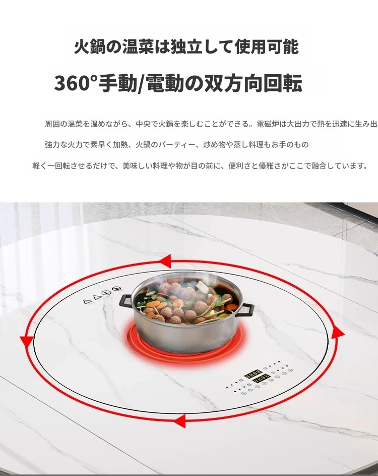 1.2メートル佛山ダイニングテーブル【AI音声制御温菜板】+自動回転台+電磁調理器