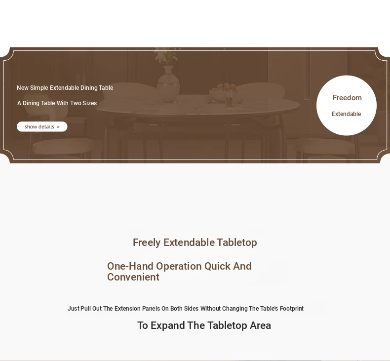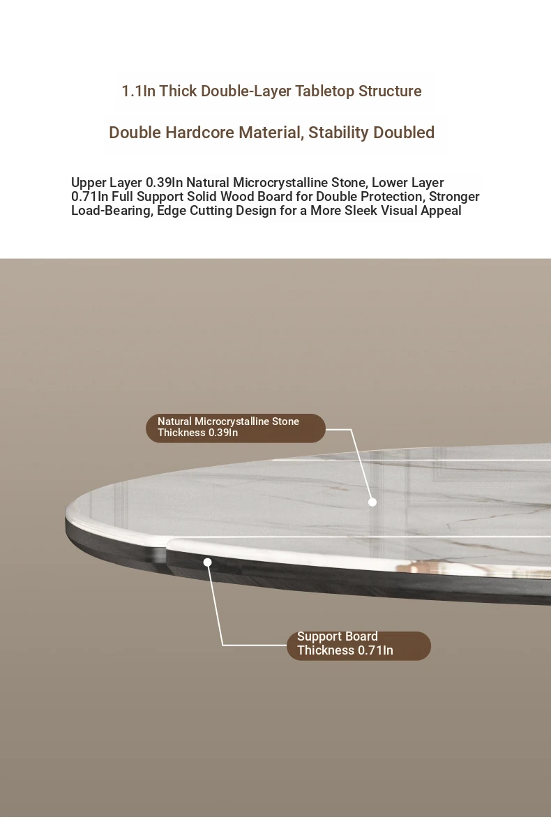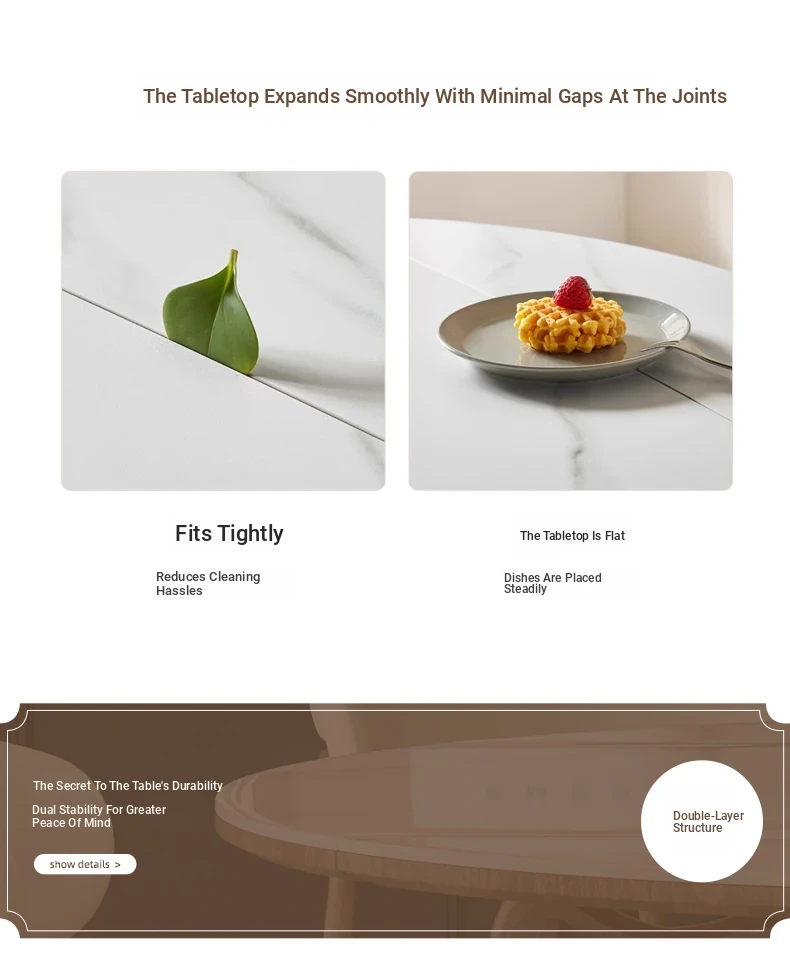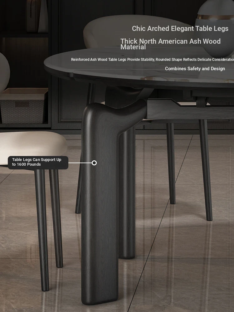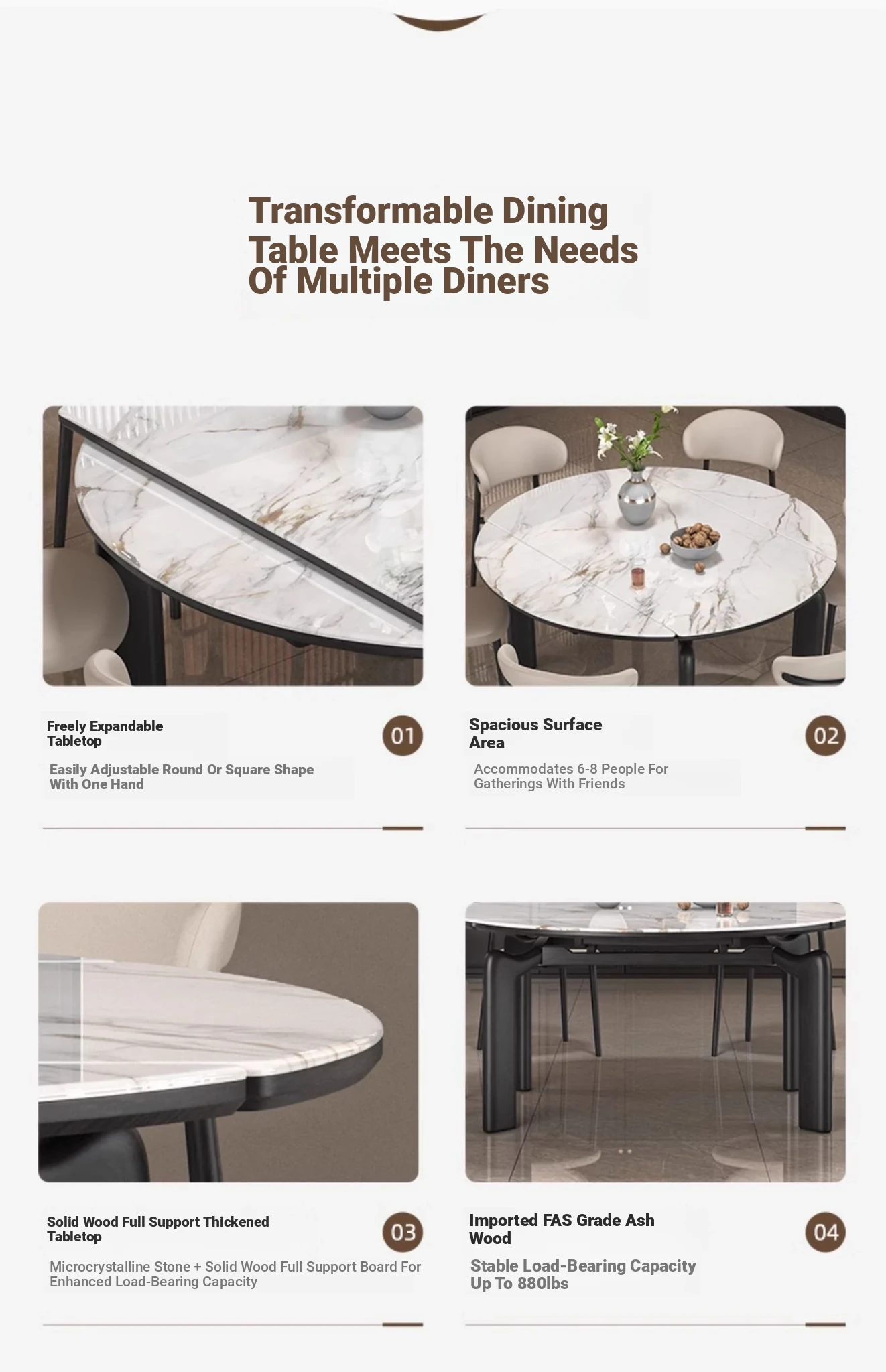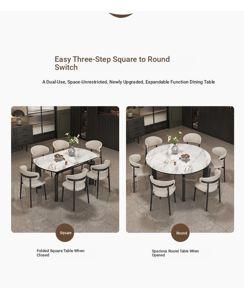 French Vintage Luxury Retractable Round Dining Table with Natural Microcrystalline Stone and Marble Top - Perfect for Small Spaces and Elegant Interiors