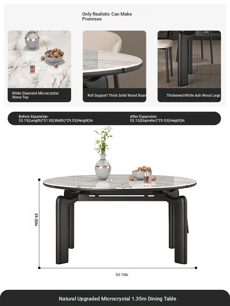 53.15in natural microcrystalline stone telescopic dining table +4 dining chairs (designer Matching)