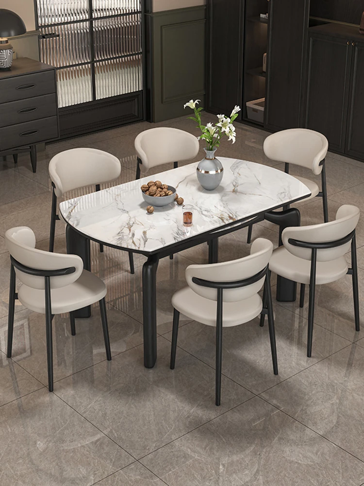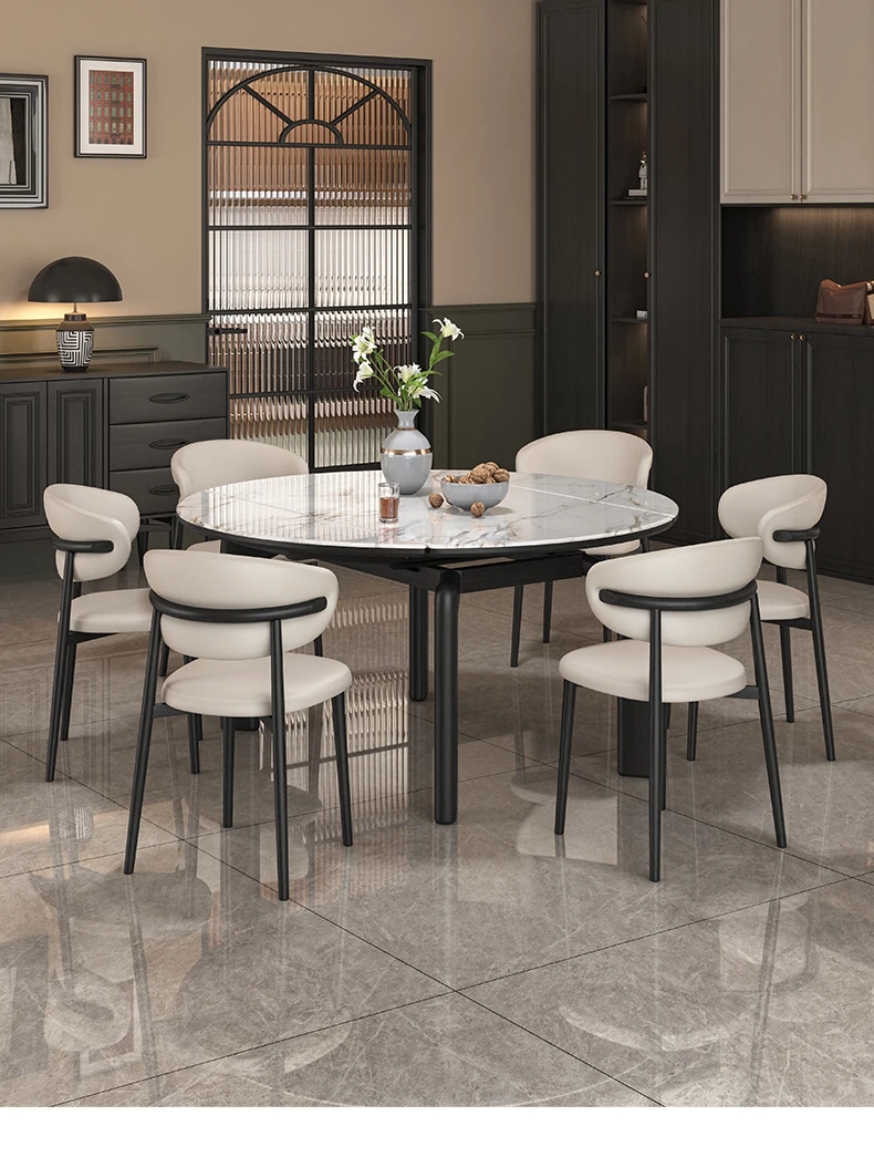 53.15in natural microcrystalline stone telescopic dining table +6 dining chairs (designer Matching)