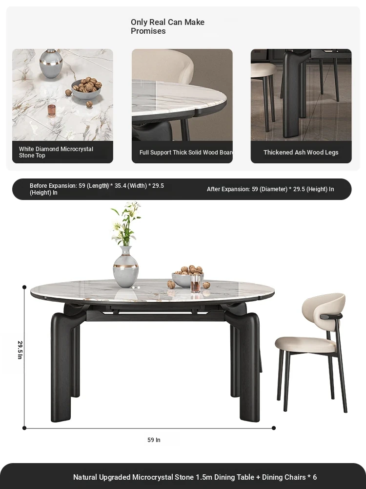 59.06in natural microcrystalline stone telescopic dining table +6 dining chairs (designer Matching)