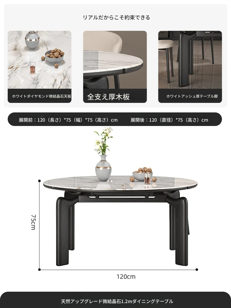 1.2M天然マイクロクリスタル石伸縮ダイニングテーブル
