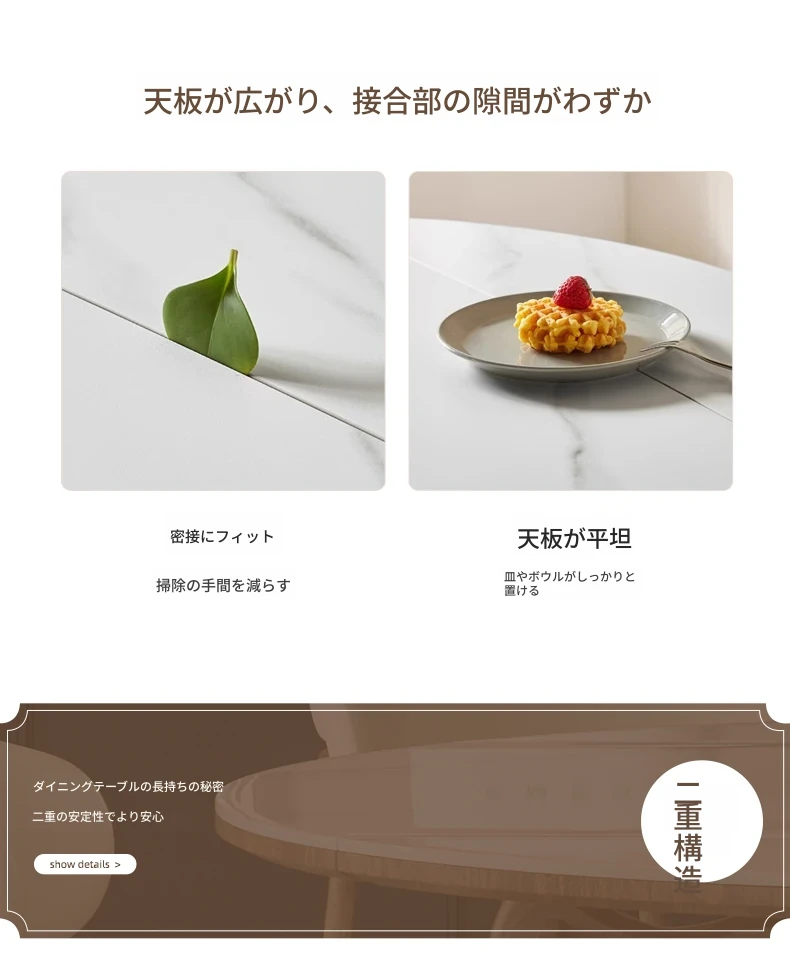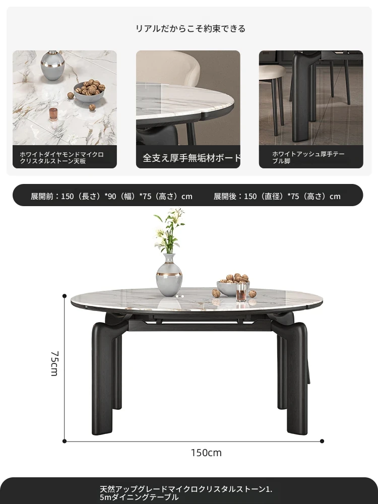 1.5M天然マイクロクリスタル石伸縮ダイニングテーブル
