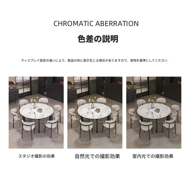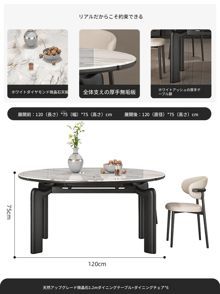 1.2M天然マイクロクリスタル石伸縮ダイニングテーブル+6チェア(デザイナーコーディネート)