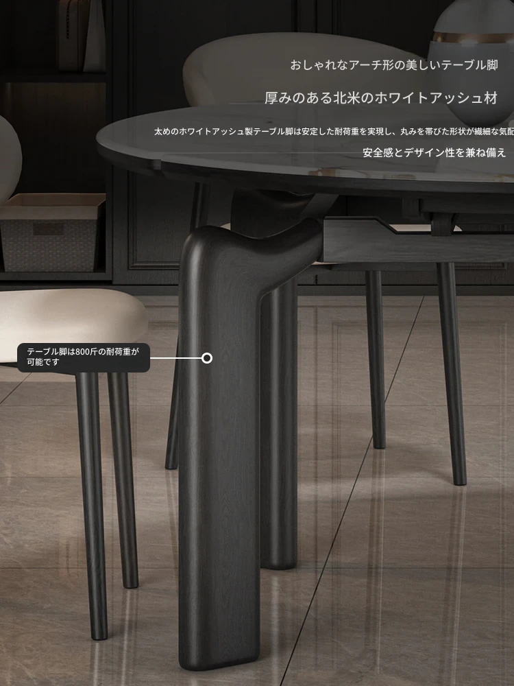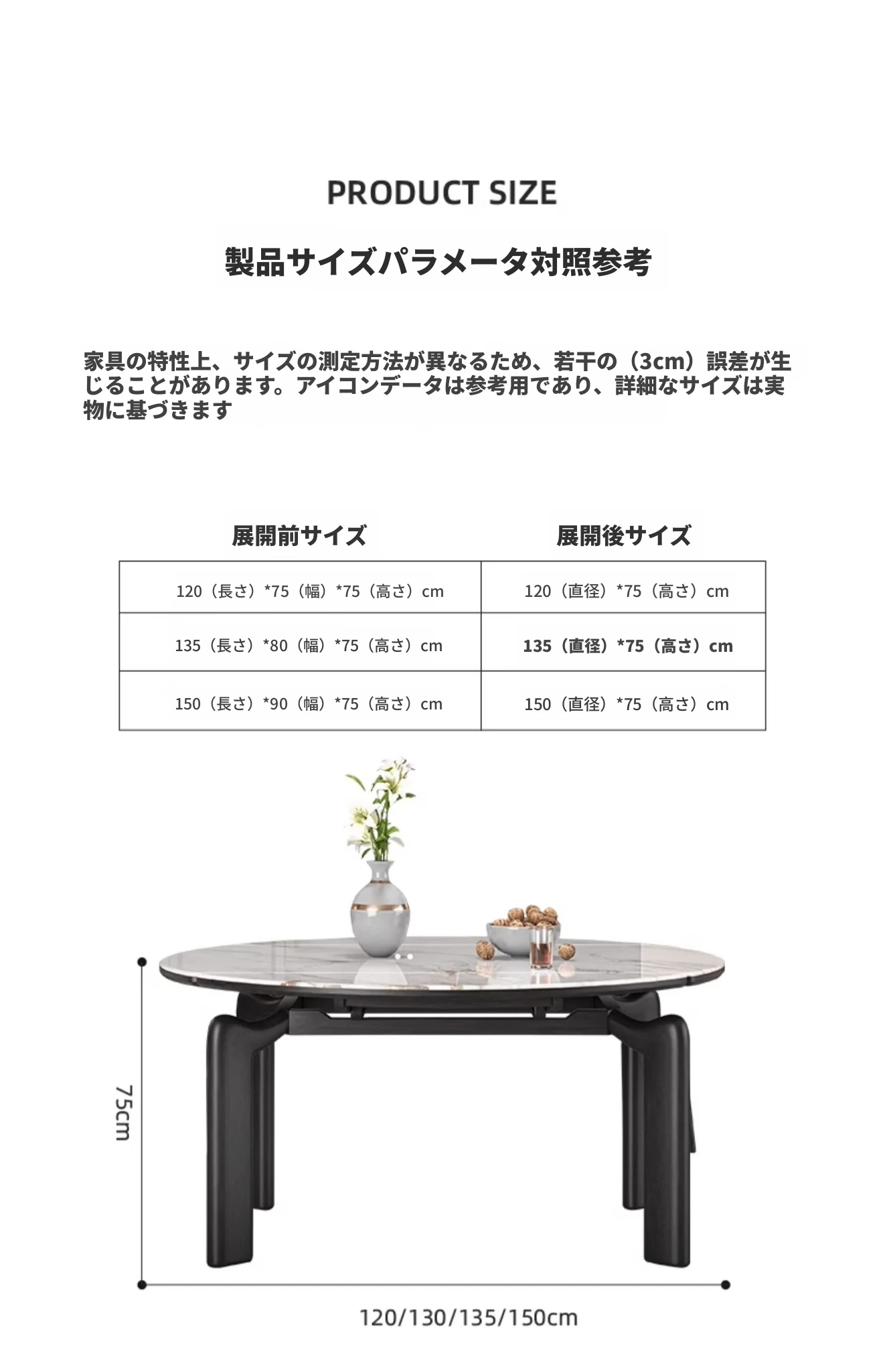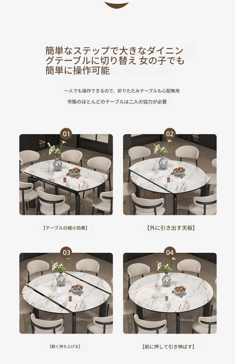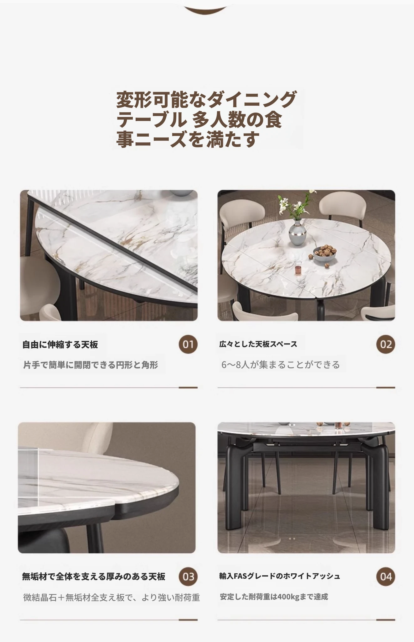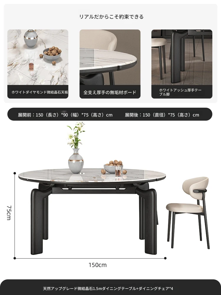 1.5M天然マイクロクリスタル石伸縮ダイニングテーブル+4チェア(デザイナーコーディネート)