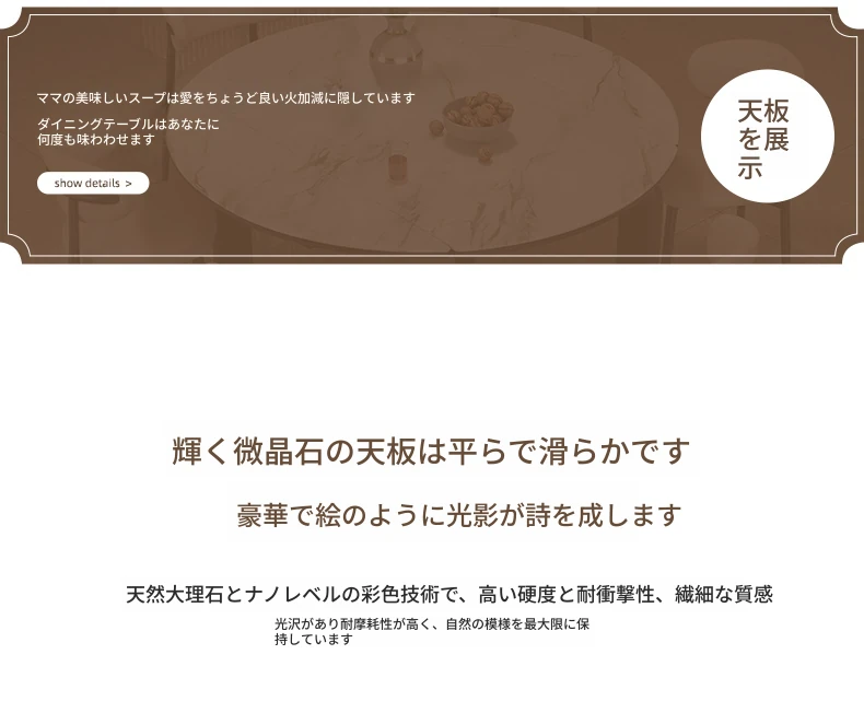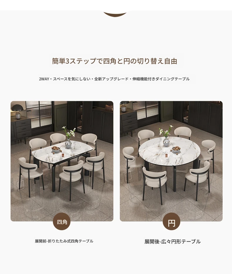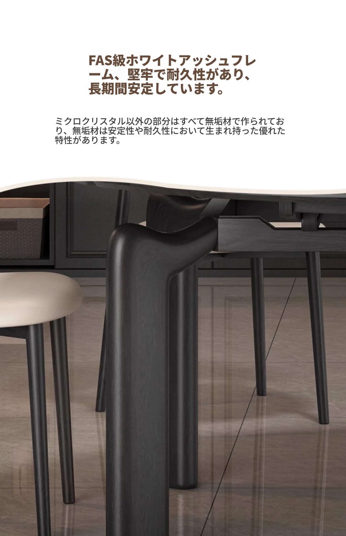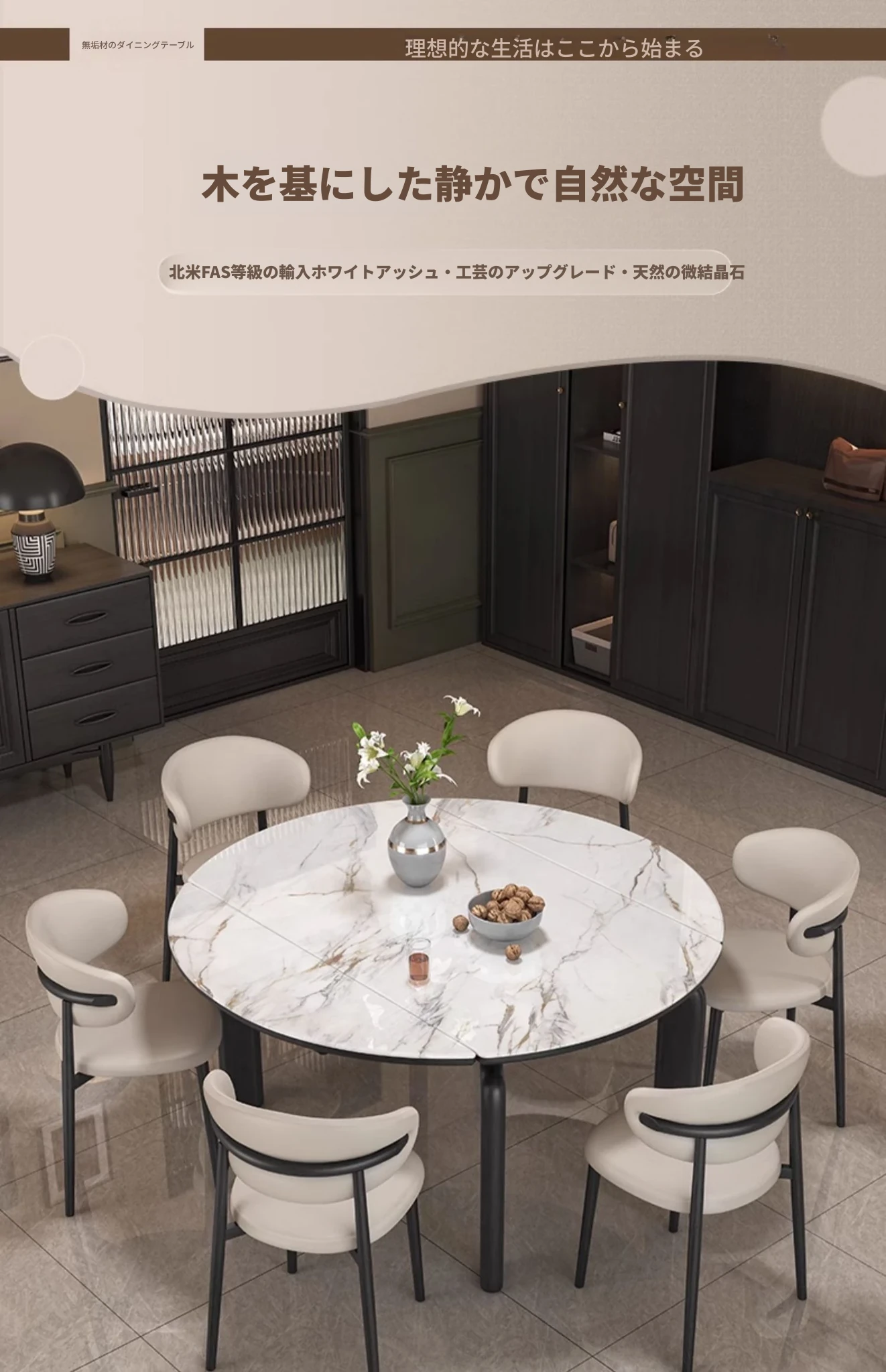 1.35M天然マイクロクリスタル石伸縮ダイニングテーブル+6チェア(デザイナーコーディネート)