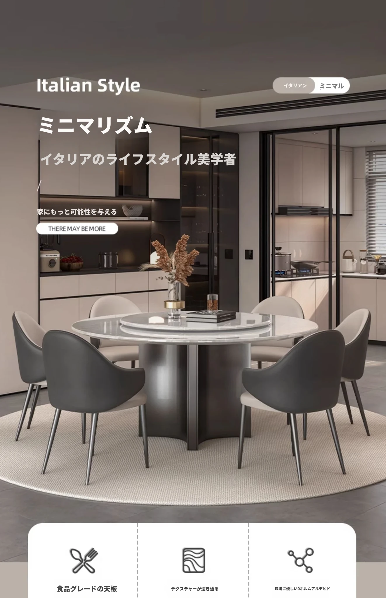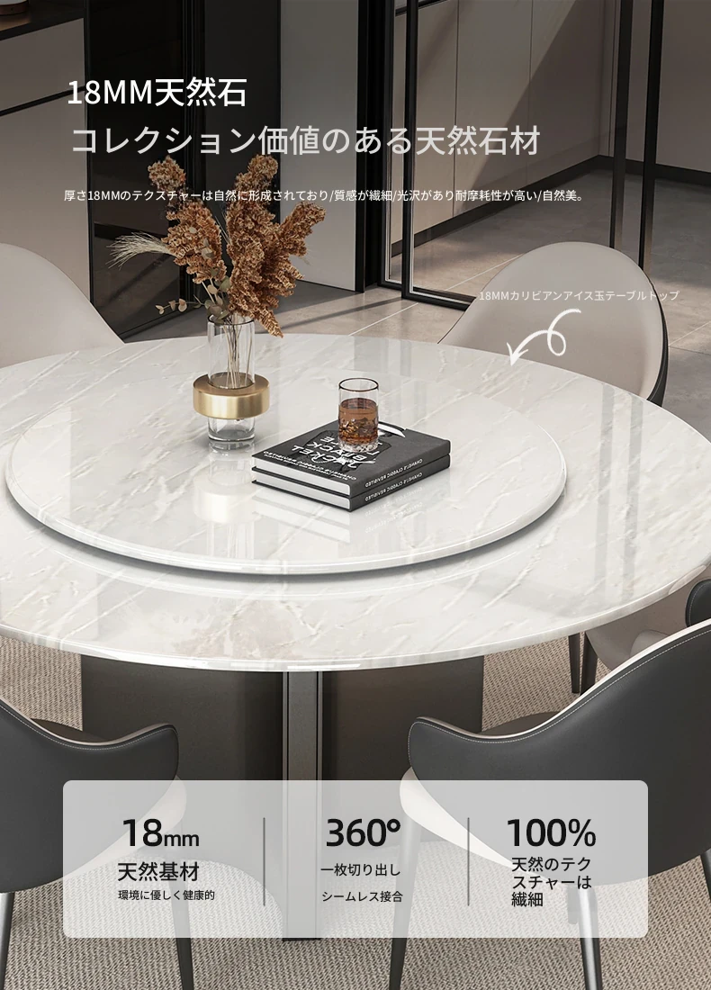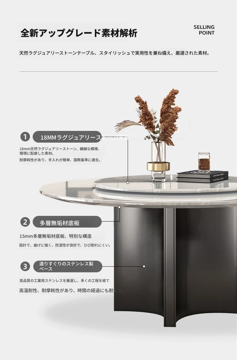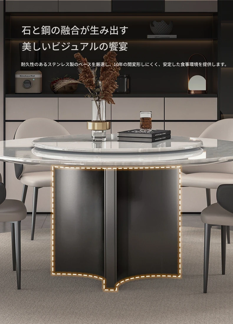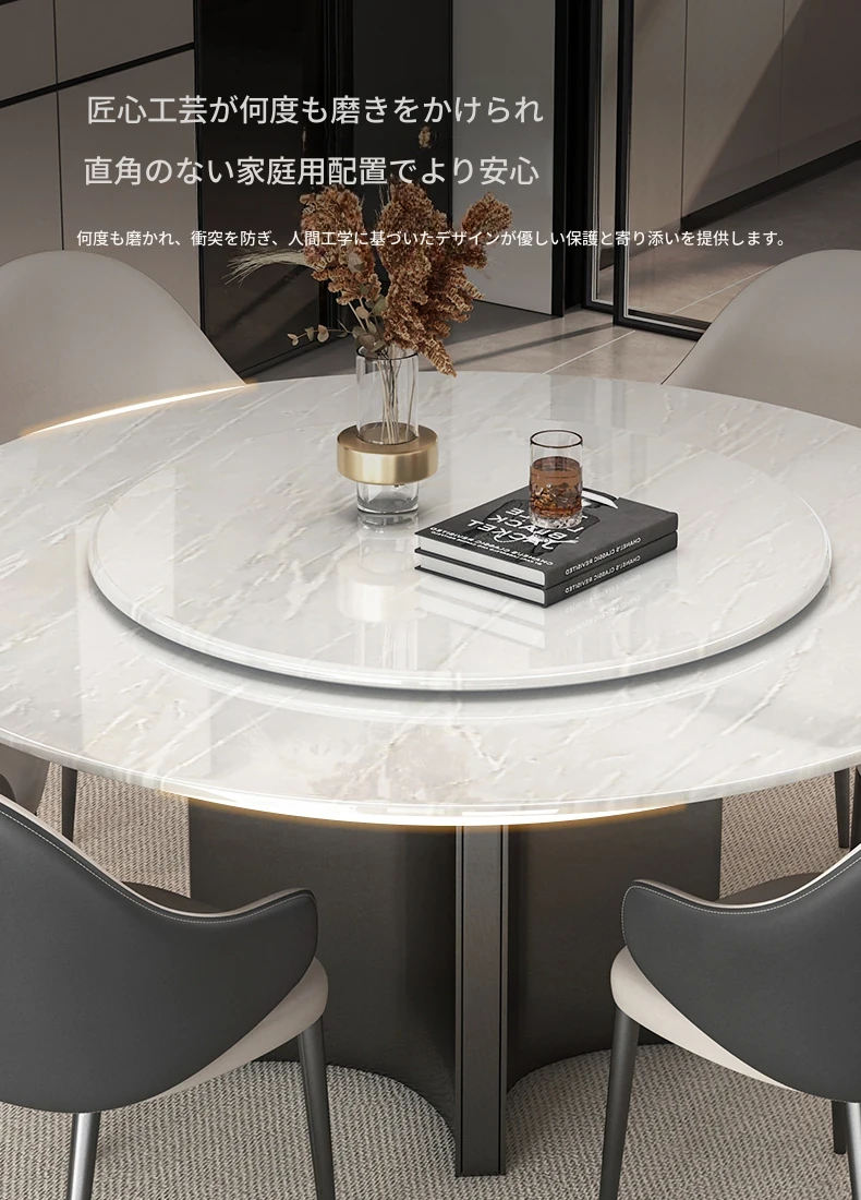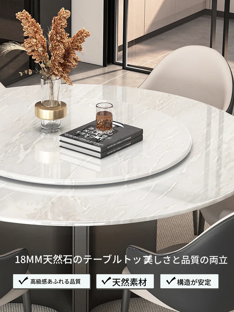 1.3キャリーバーレイパールストーンダイニングテーブル+回転台