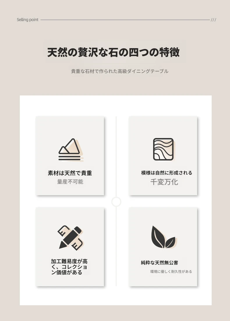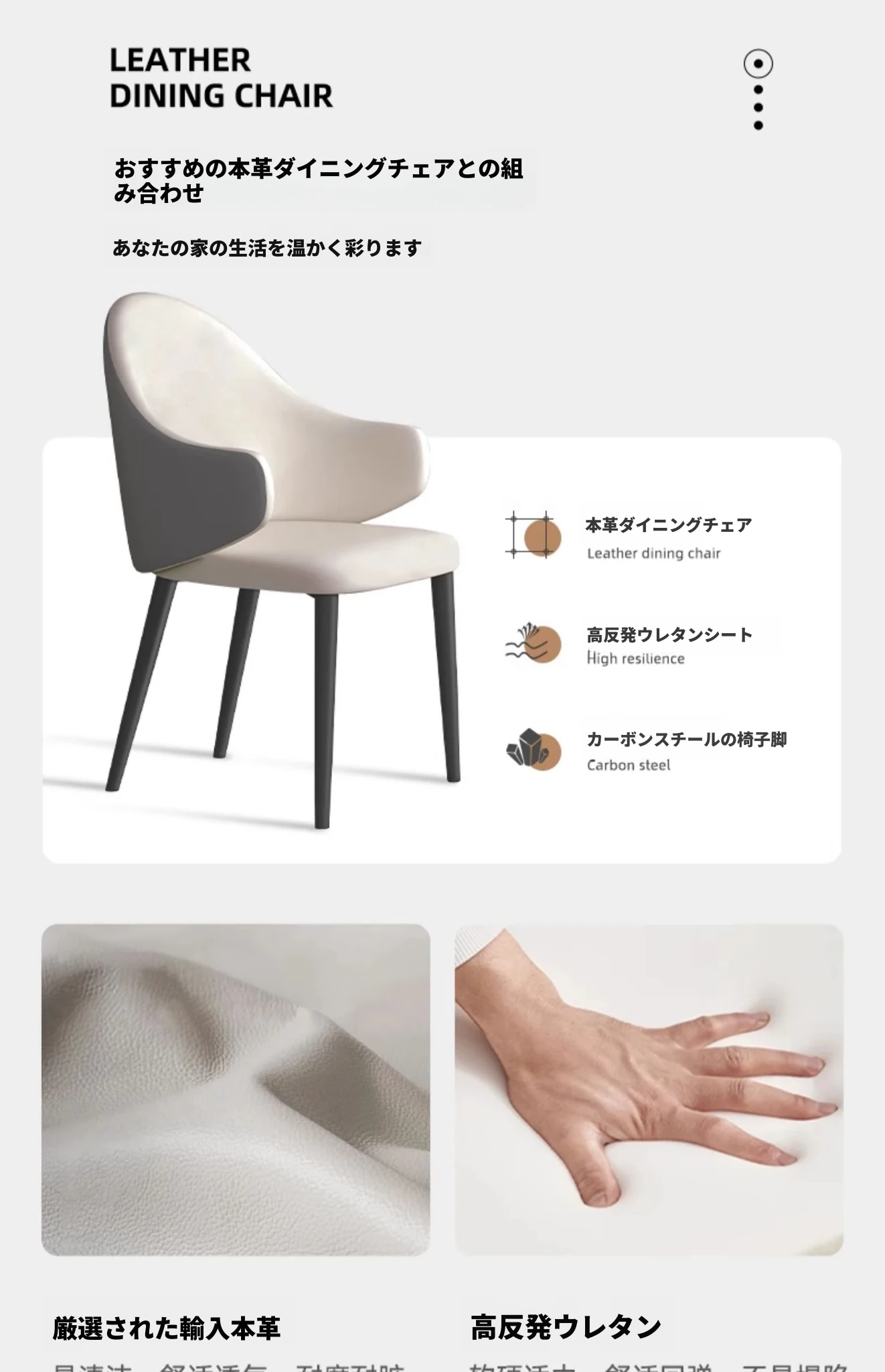 1.3キャリーバーレイパールストーンダイニングテーブル+本革椅子*4