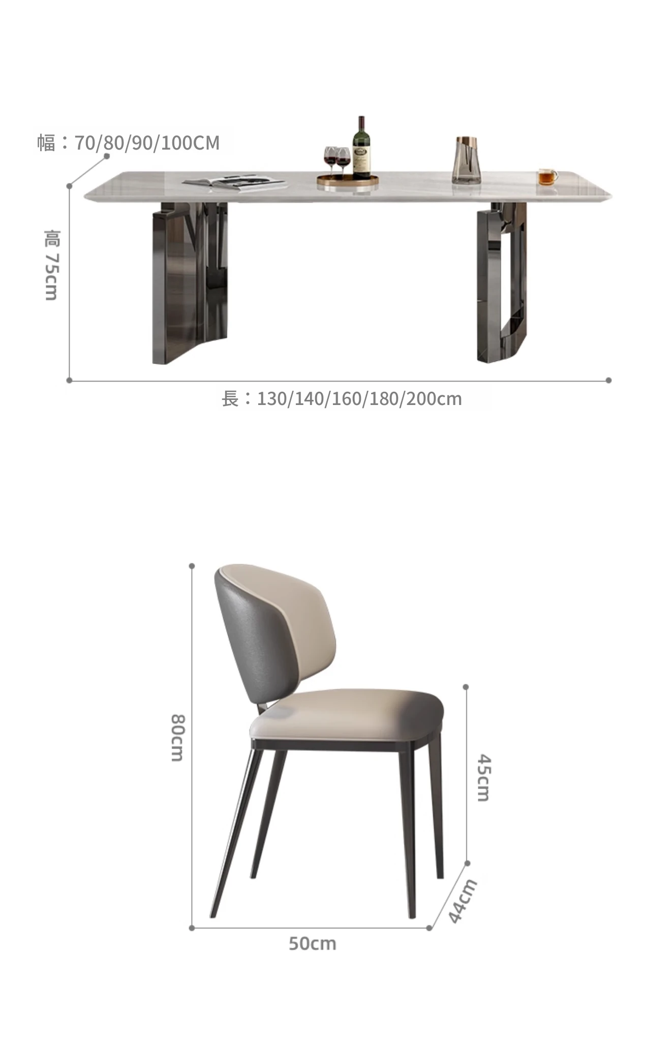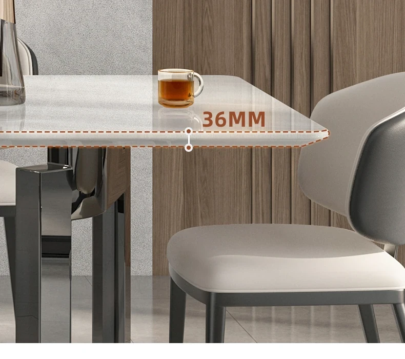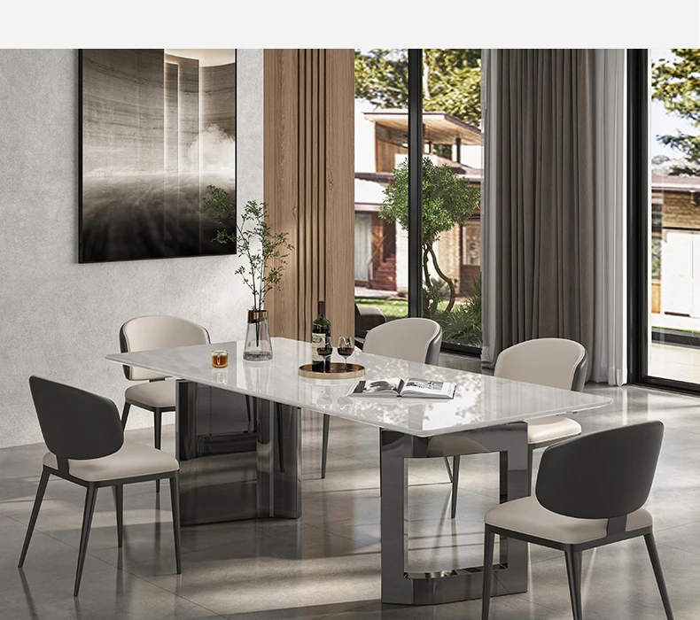 輸入ミラノホワイトジェム高級石製ダイニングテーブル+デザイナーチェア*6