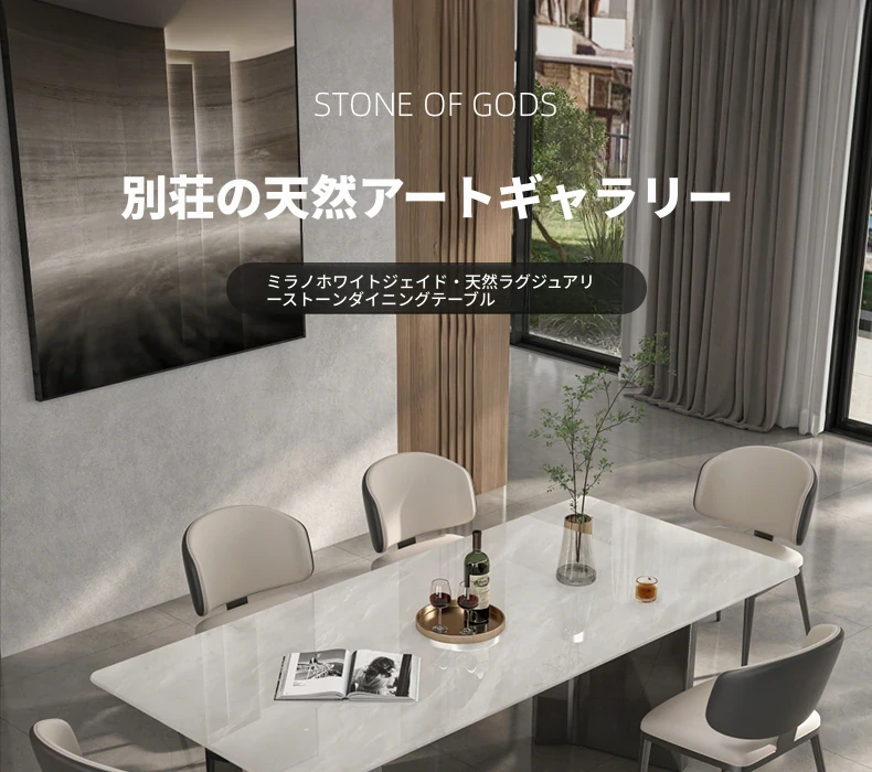 輸入天然高級石材のミラノホワイト大理石テーブル - 高級感あふれるイタリアンデザイン、ヴィラやリビングに最適なインポートダイニングテーブル!