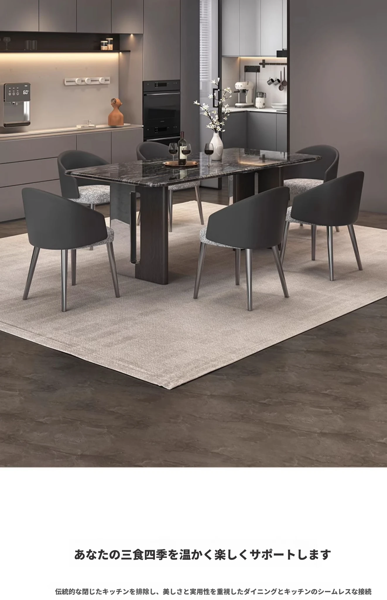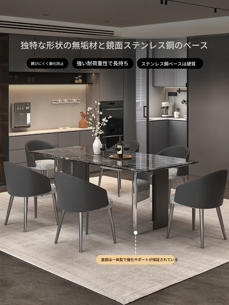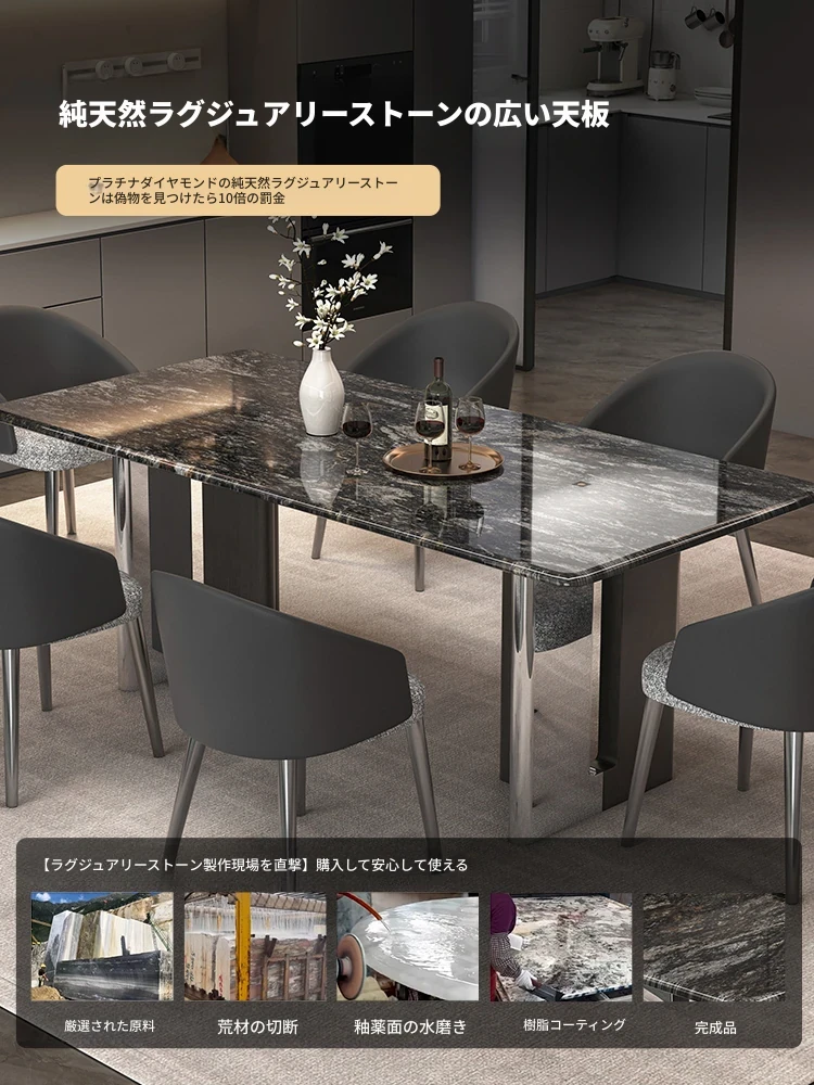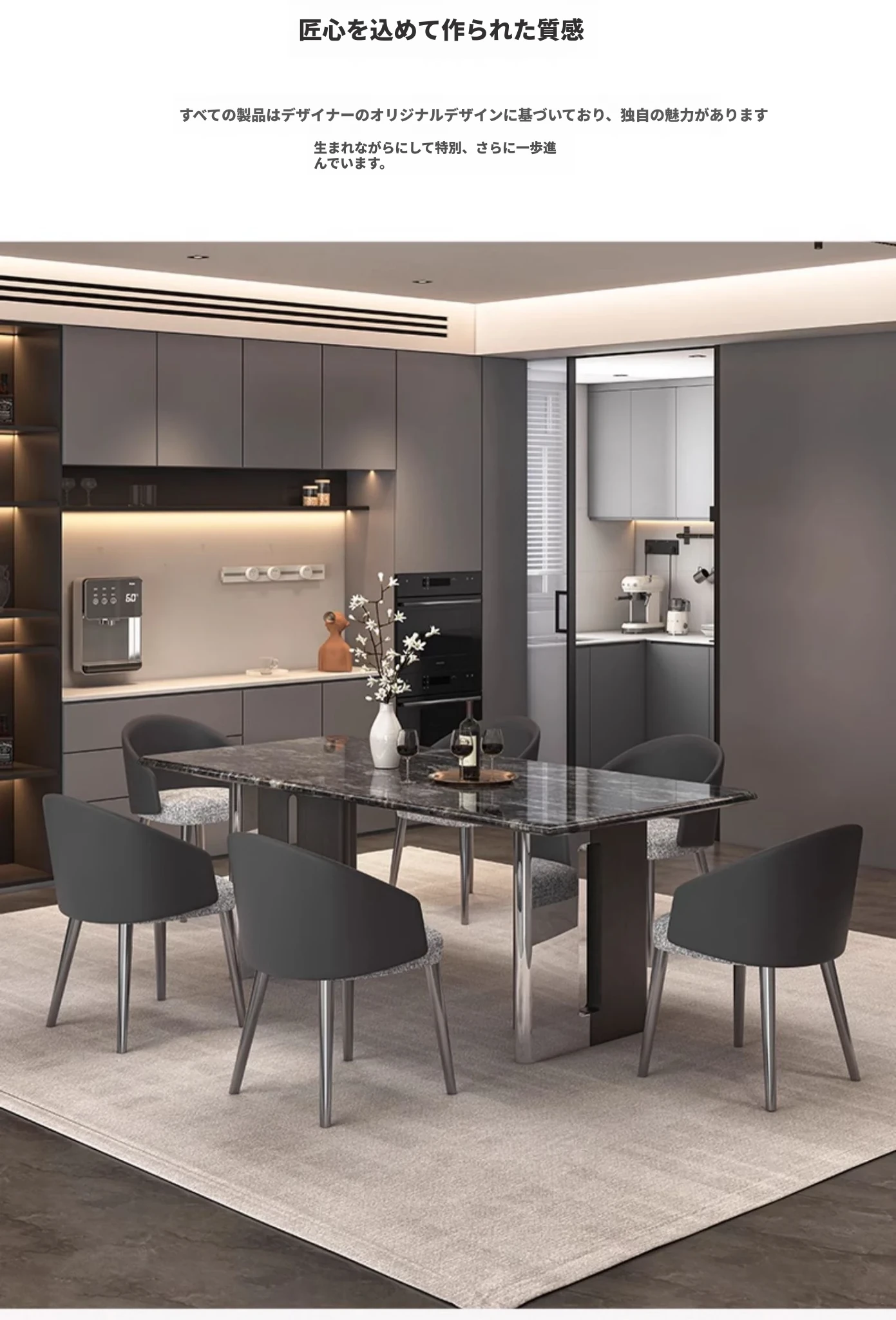 1.8*0.9メートル輸入プラチナダイヤモンドラグジュアリーストーンダイニングテーブル+ハイエンドデザイナーダイニングチェア*6