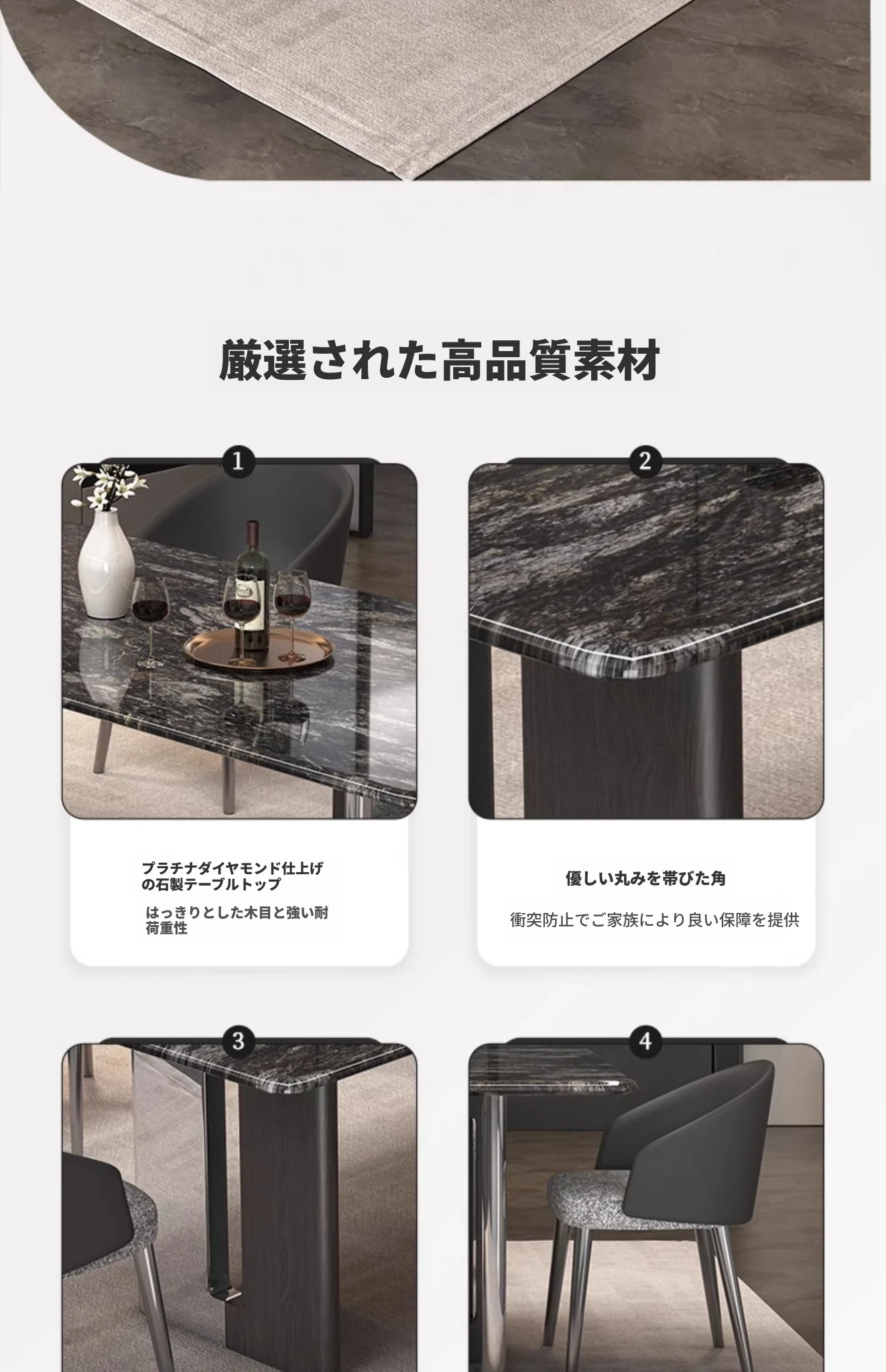 1.8*0.9メートル輸入プラチナダイヤモンドラグジュアリーストーンダイニングテーブル+ハイエンドデザイナーダイニングチェア*4