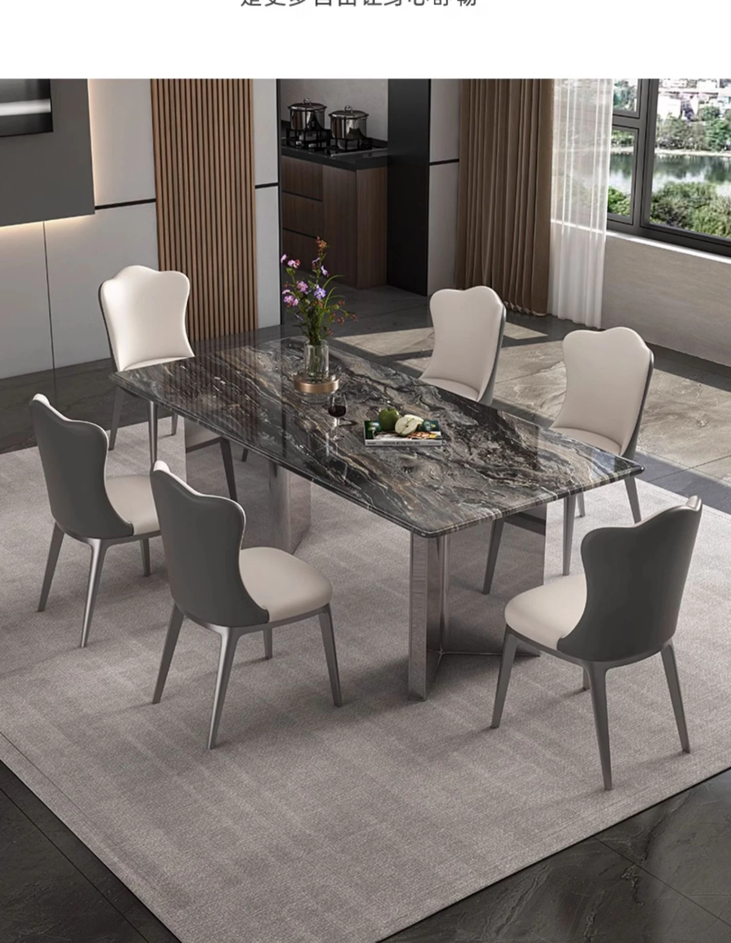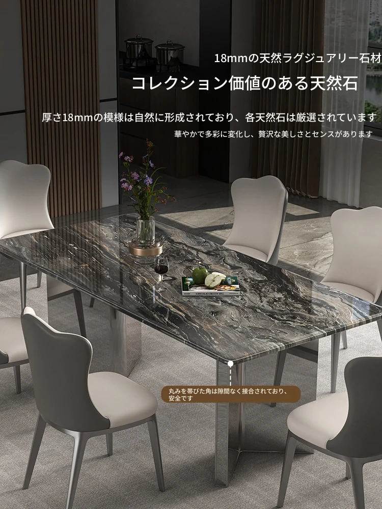 1.8*0.9メートル輸入ヴェネツィアブラウン高級石製ダイニングテーブル+雲真皮椅子*6