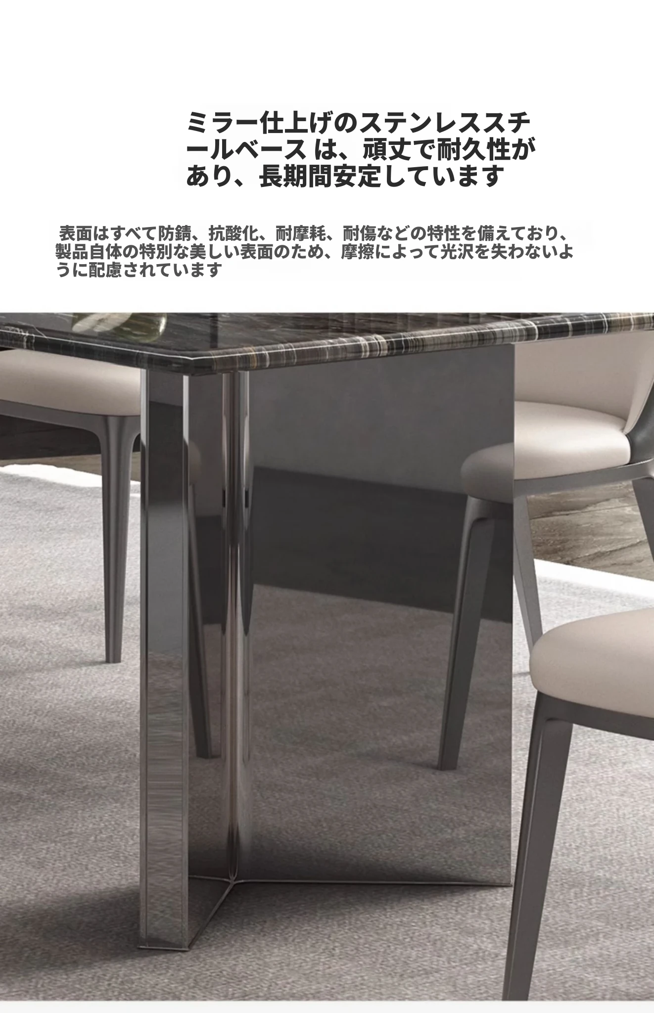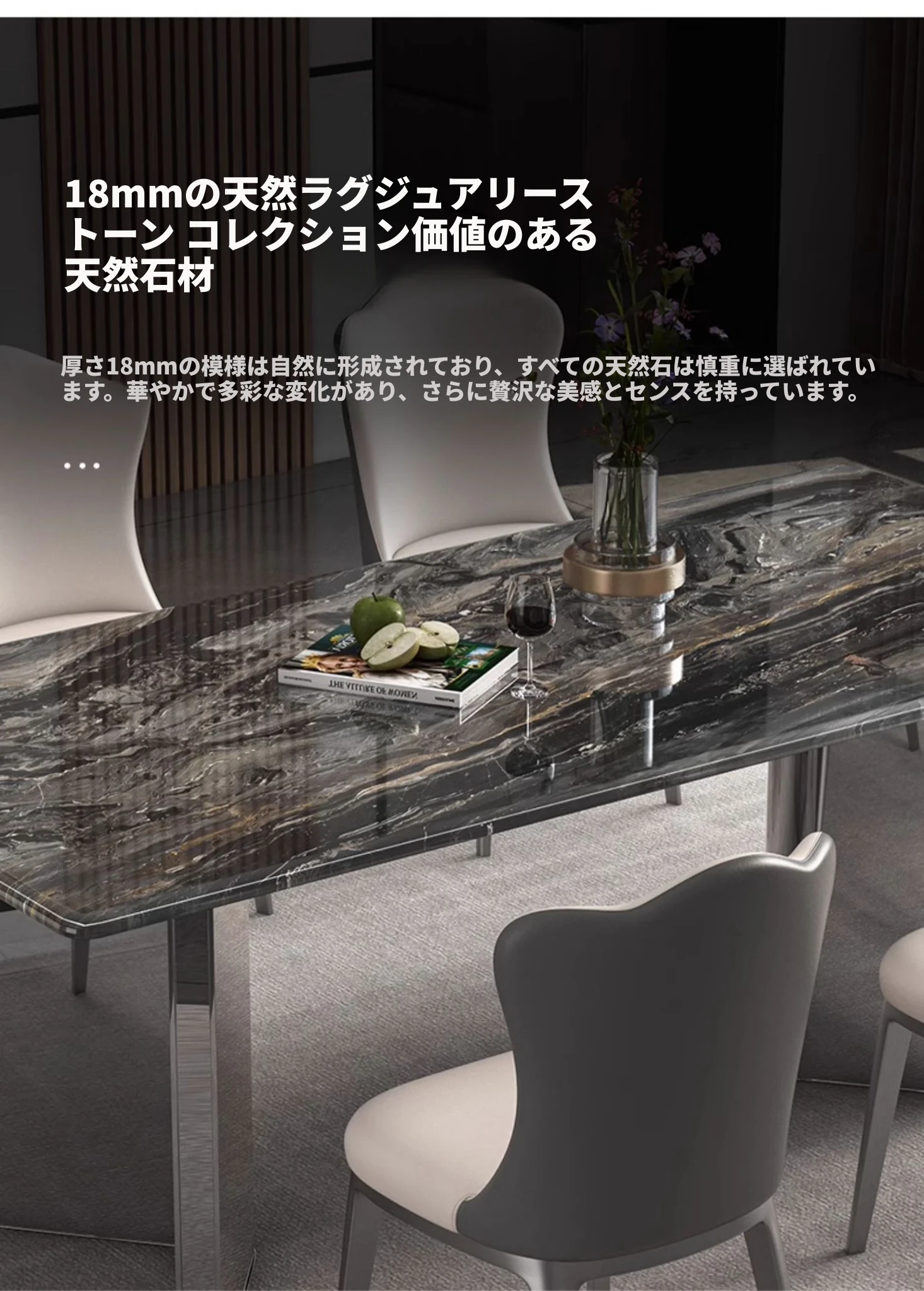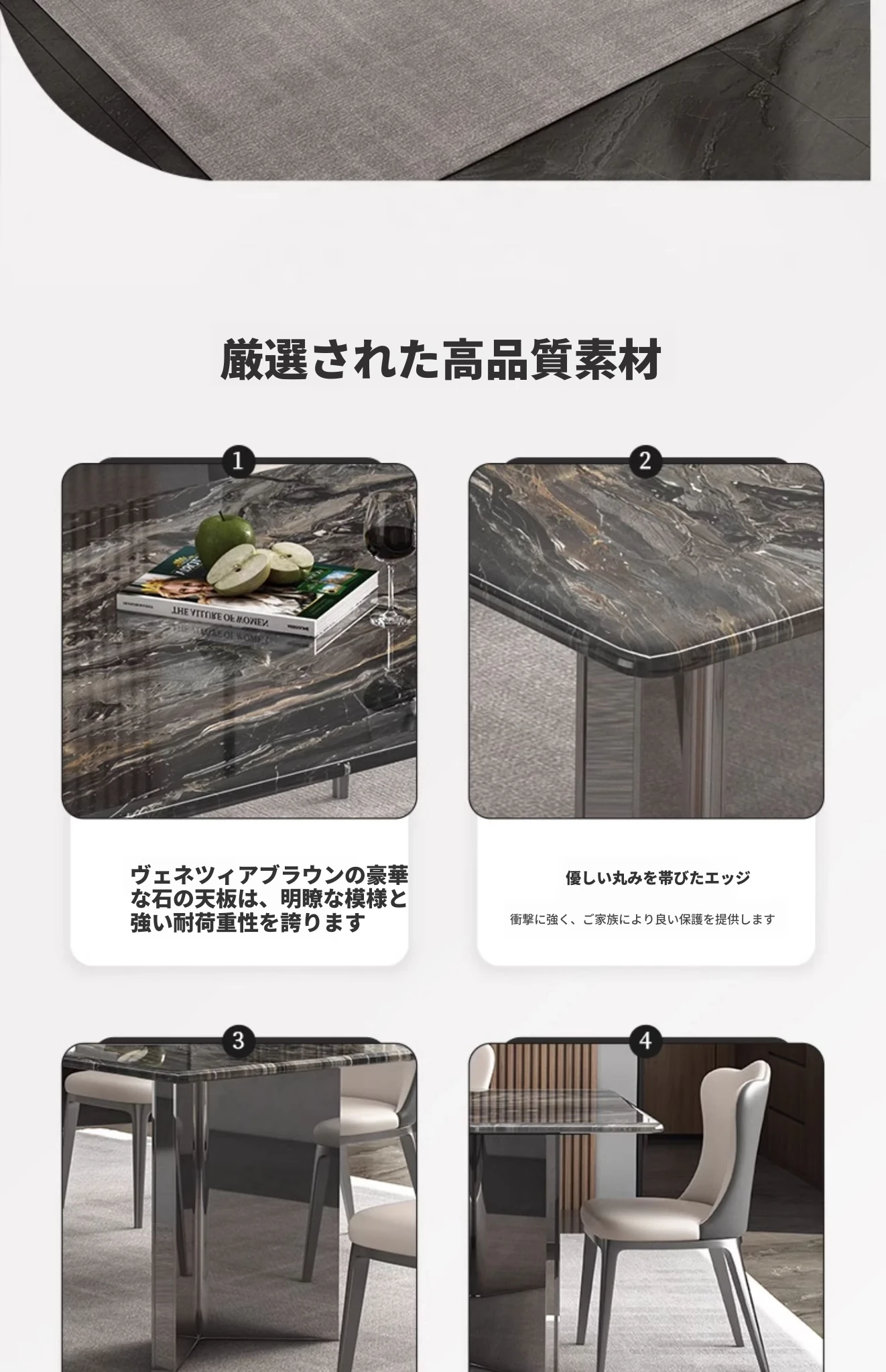 1.8*0.9メートル輸入ヴェネツィアブラウン高級石製ダイニングテーブル+雲真皮椅子*4