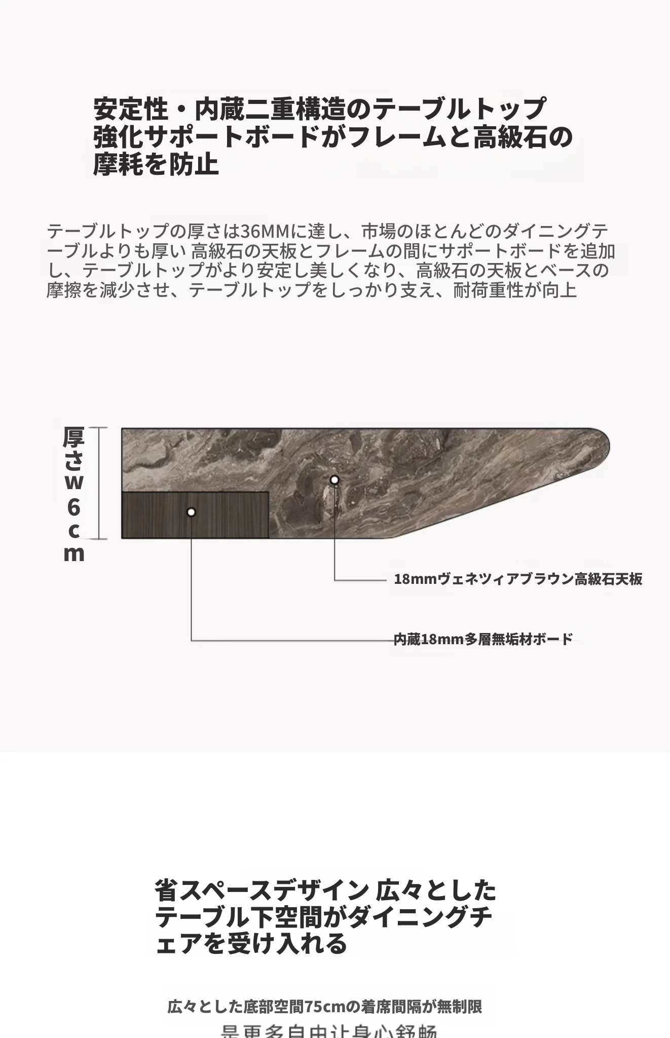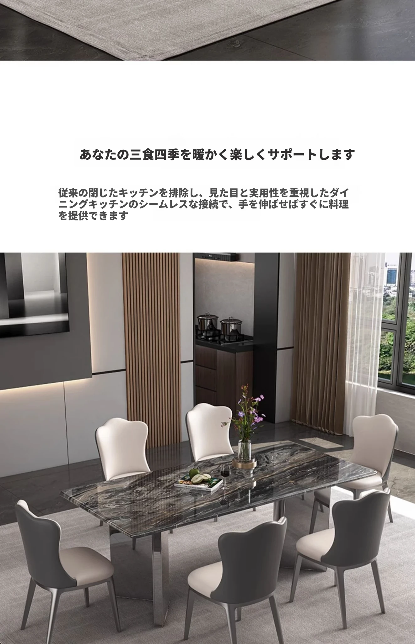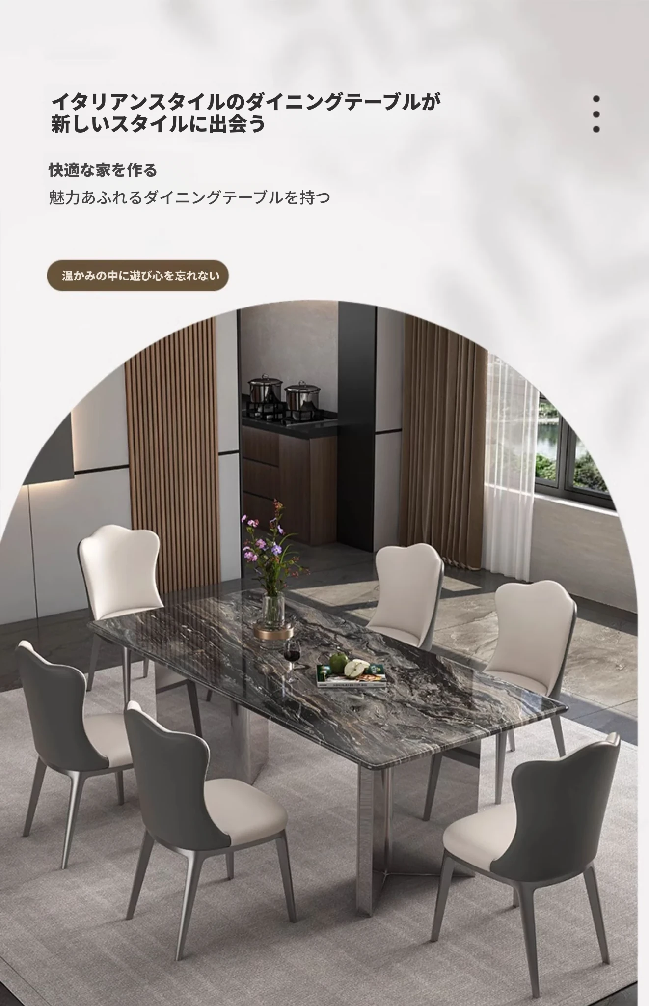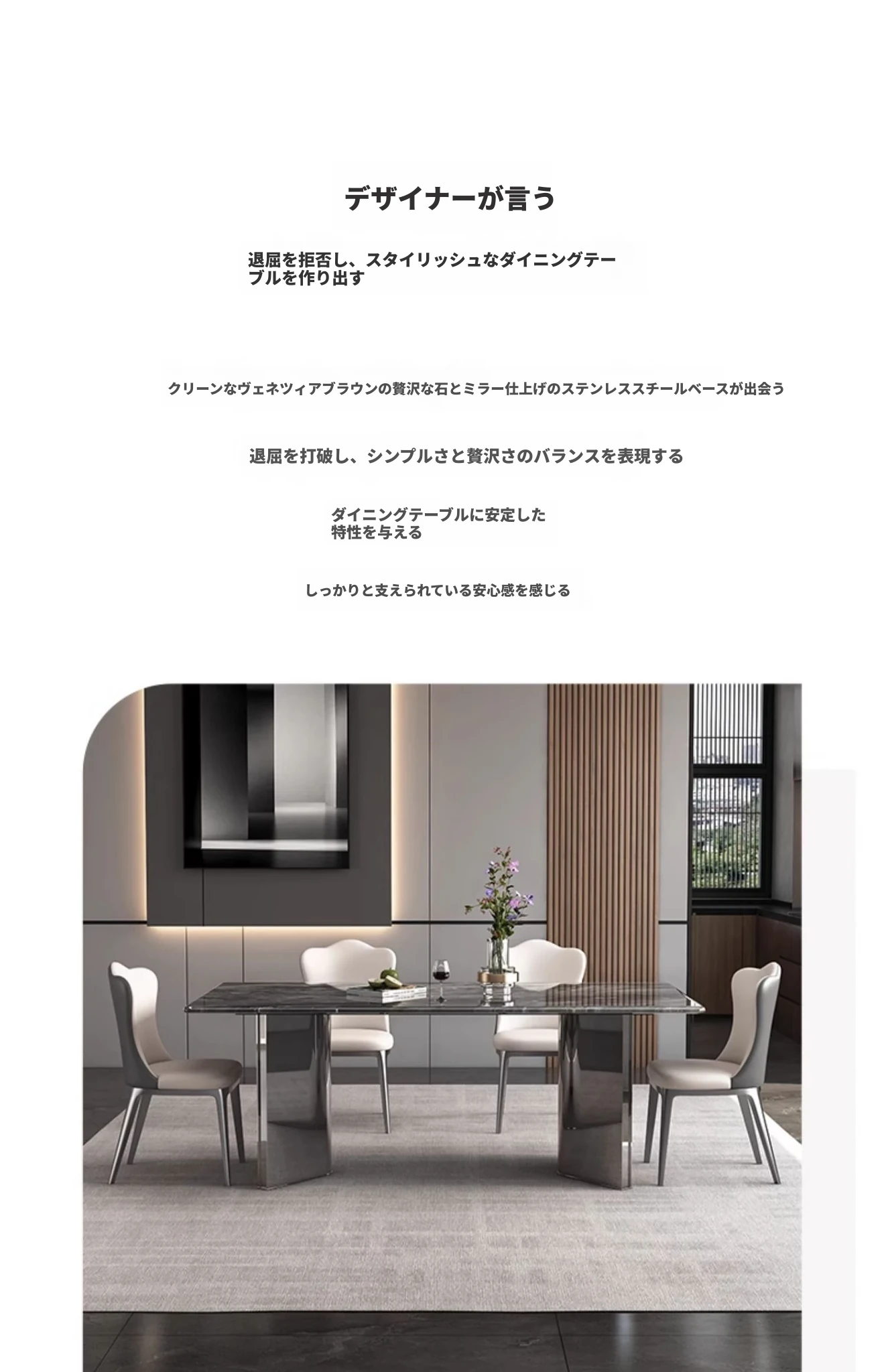 1.8*0.9メートル輸入ヴェネツィアブラウン高級石製ダイニングテーブル+雲真皮椅子*4