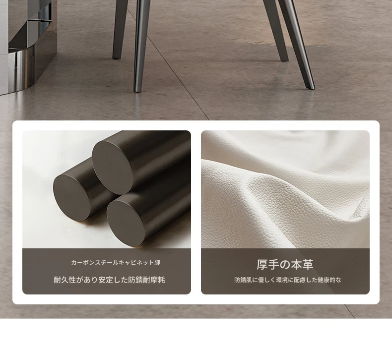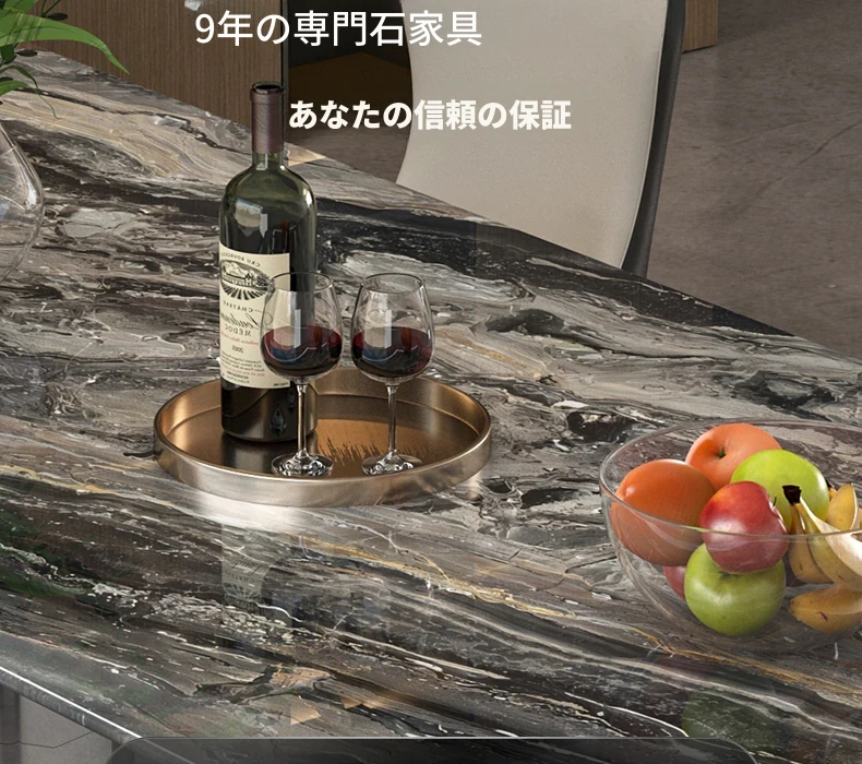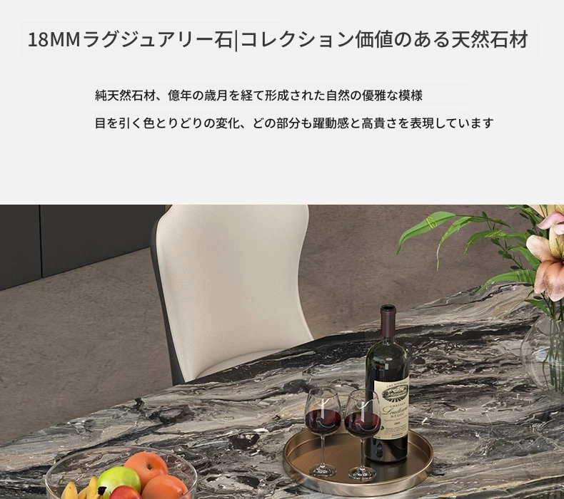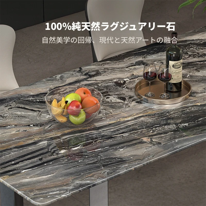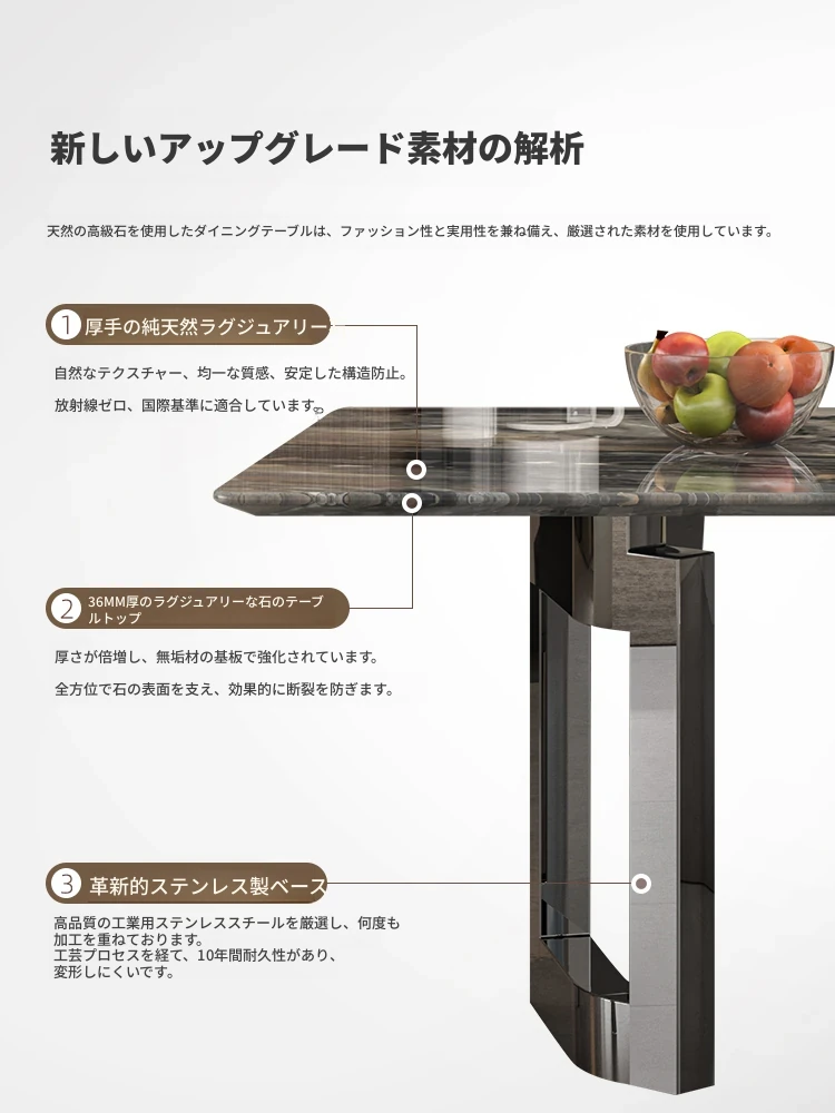 インポートヴェネチアブラウンラグジュアリー石材ダイニングテーブル + 本革ダイニングチェア*6
