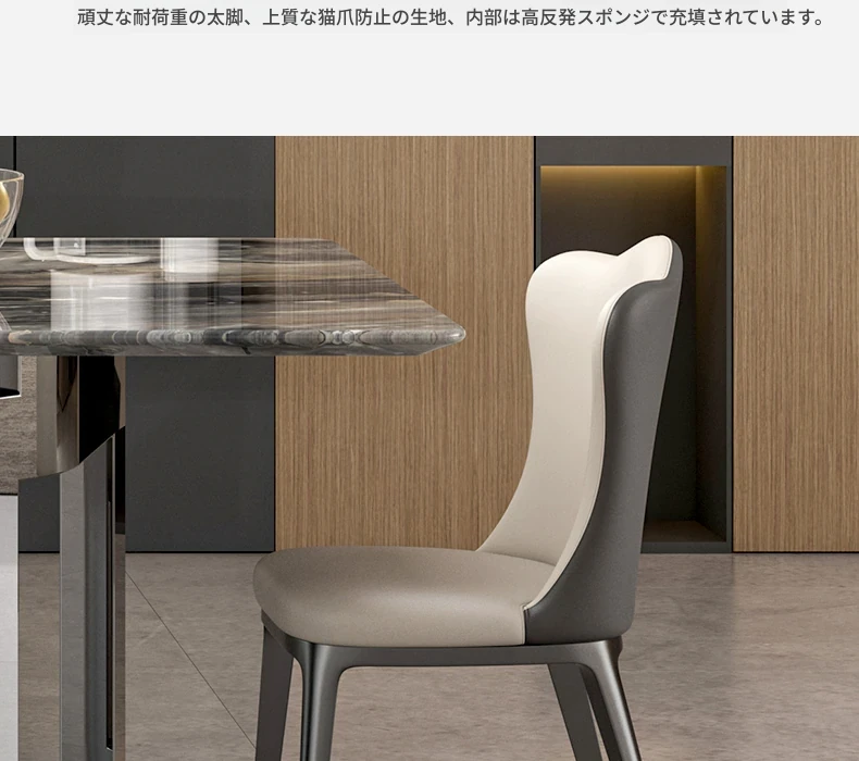 インポートヴェネチアブラウンラグジュアリー石材ダイニングテーブル + 本革ダイニングチェア*4