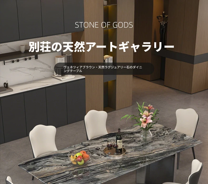 インポートヴェネチアブラウンラグジュアリー石材ダイニングテーブル