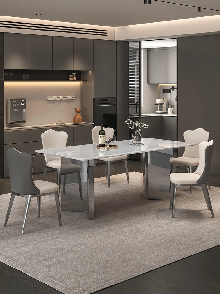 1.8M輸入天然白水晶ラグジュアリーストーンダイニングテーブル+高級本革ダイニングチェア*6