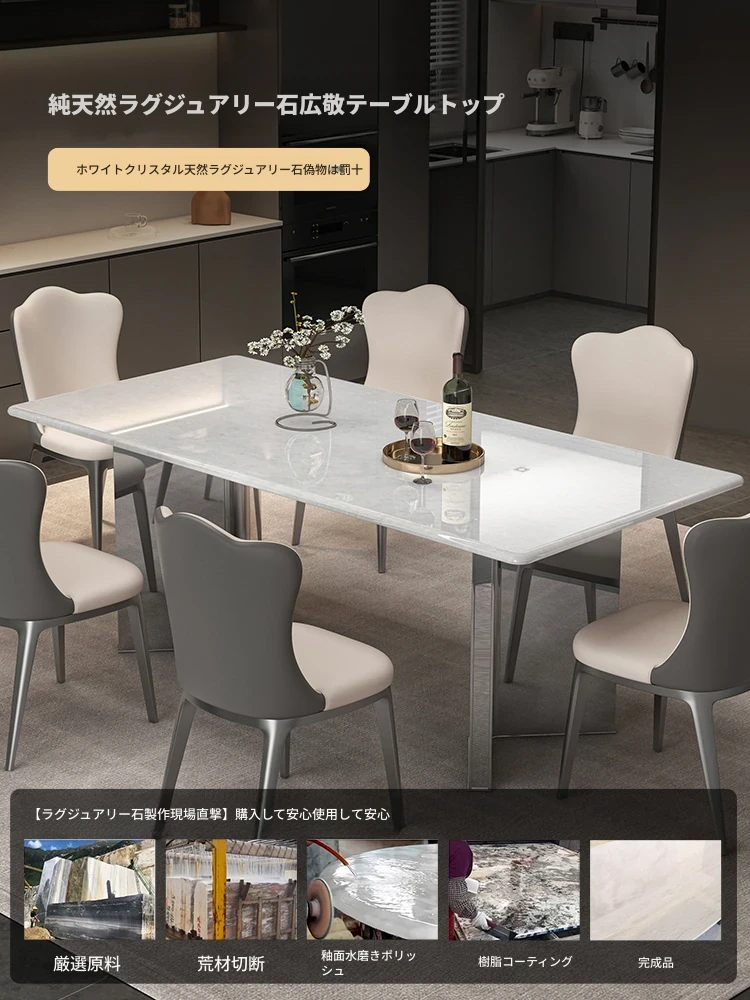 1.3M輸入天然白水晶ラグジュアリーストーンダイニングテーブル+高級本革ダイニングチェア*6