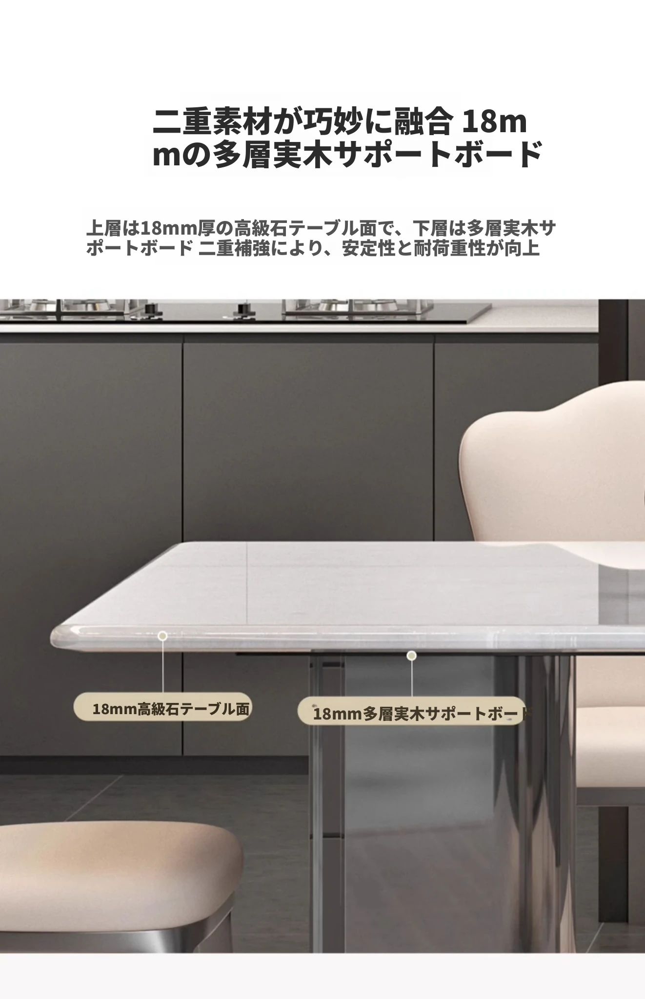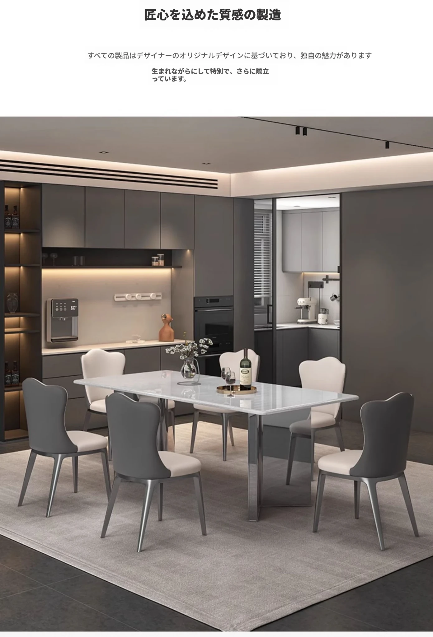 1.8M輸入天然白水晶ラグジュアリーストーンダイニングテーブル+高級本革ダイニングチェア*4