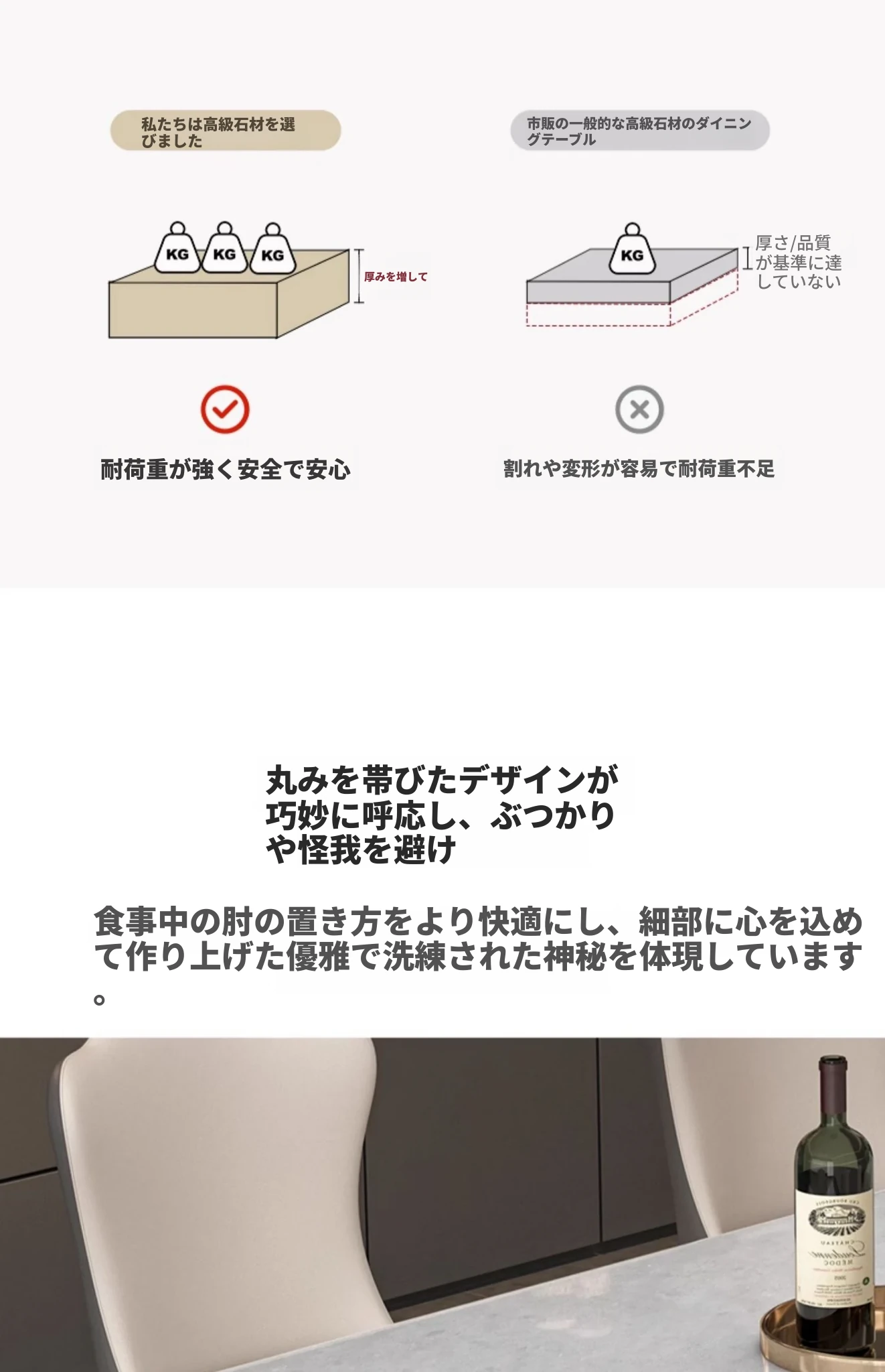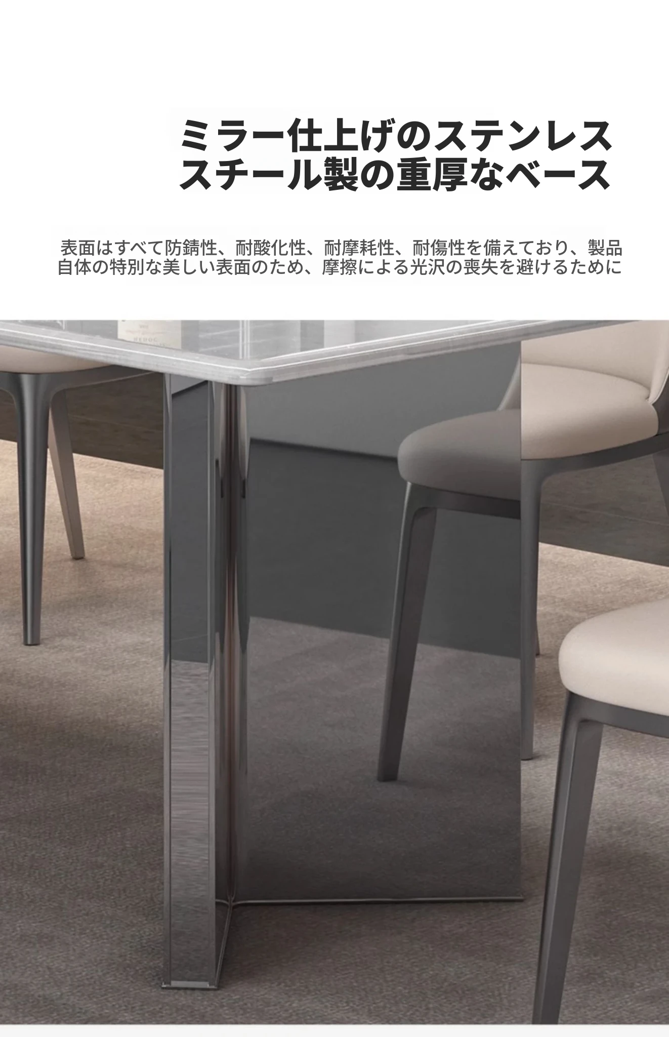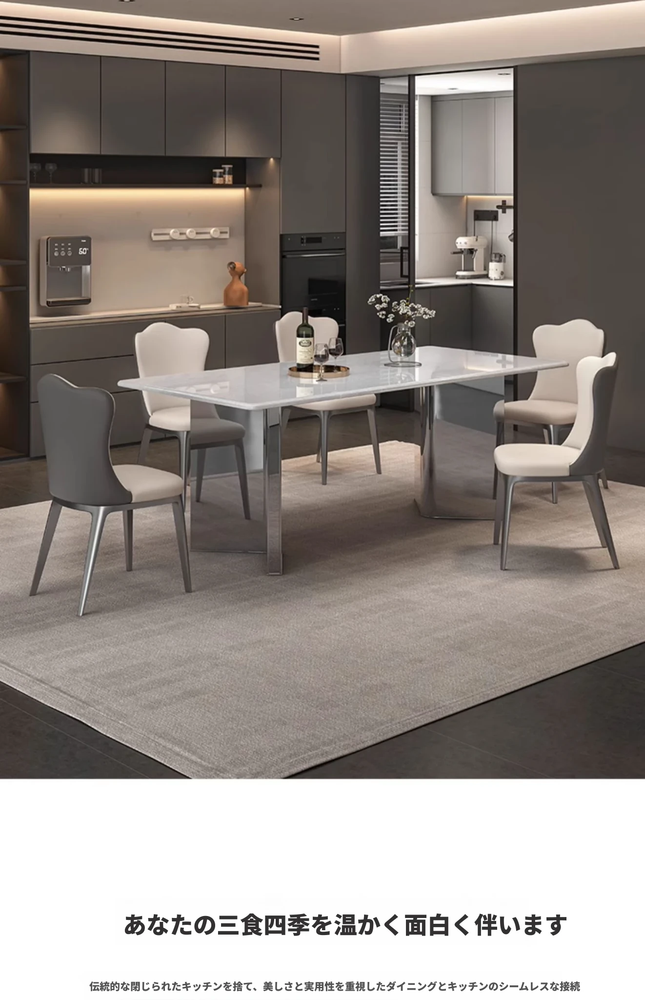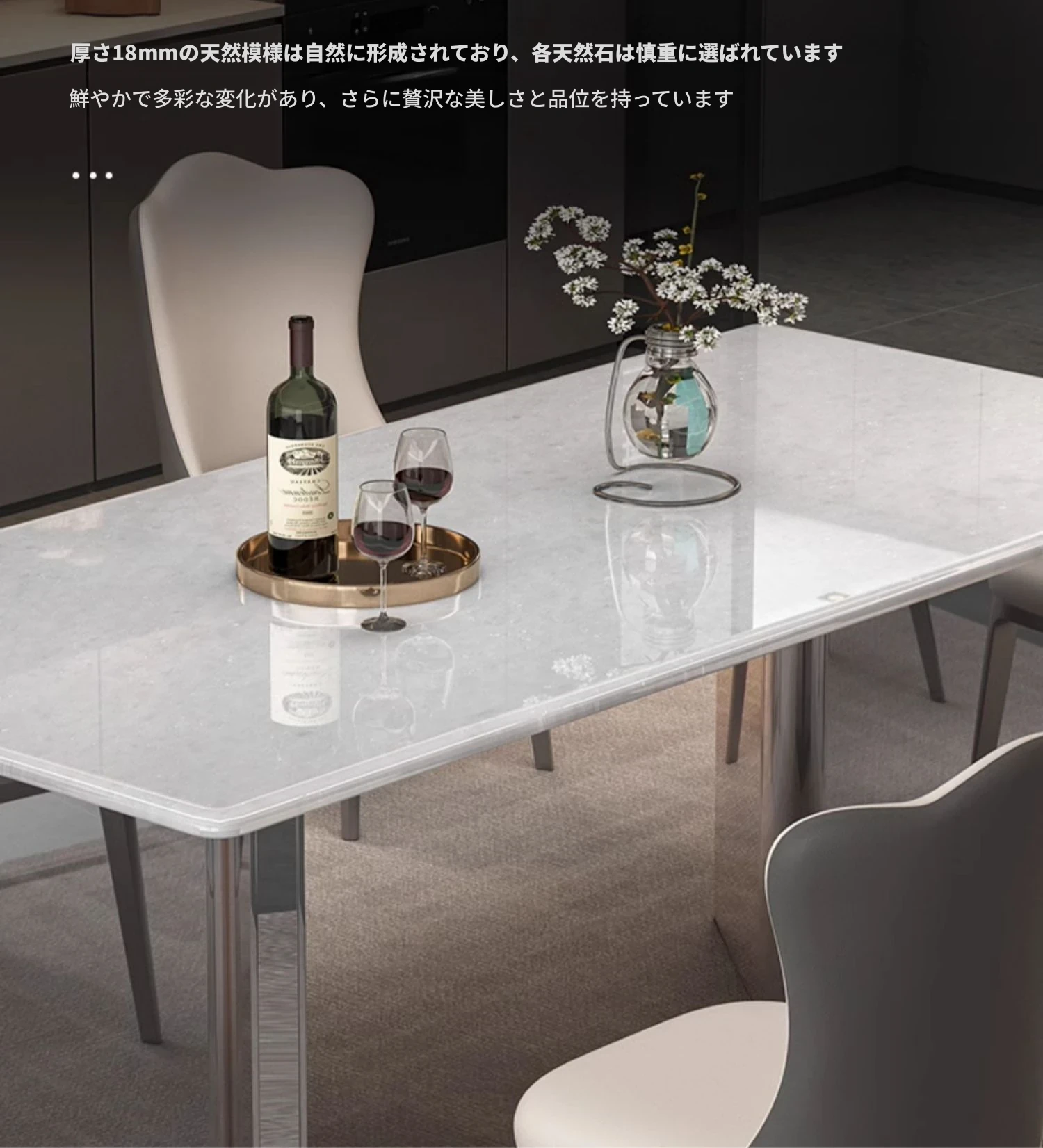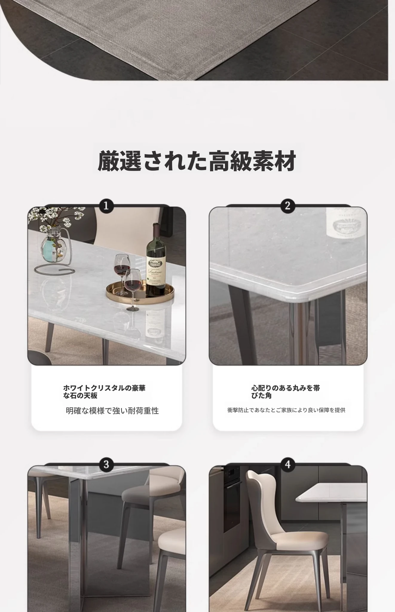 2M輸入天然白水晶ラグジュアリーストーンダイニングテーブル+高級本革ダイニングチェア*4