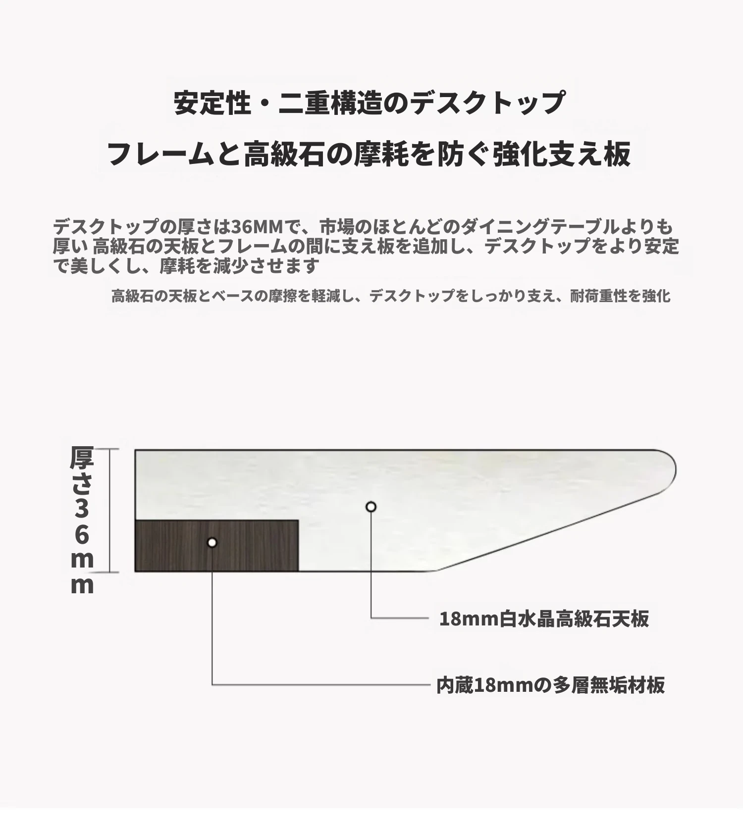 1.6M輸入天然白水晶ラグジュアリーストーンダイニングテーブル+高級本革ダイニングチェア*4