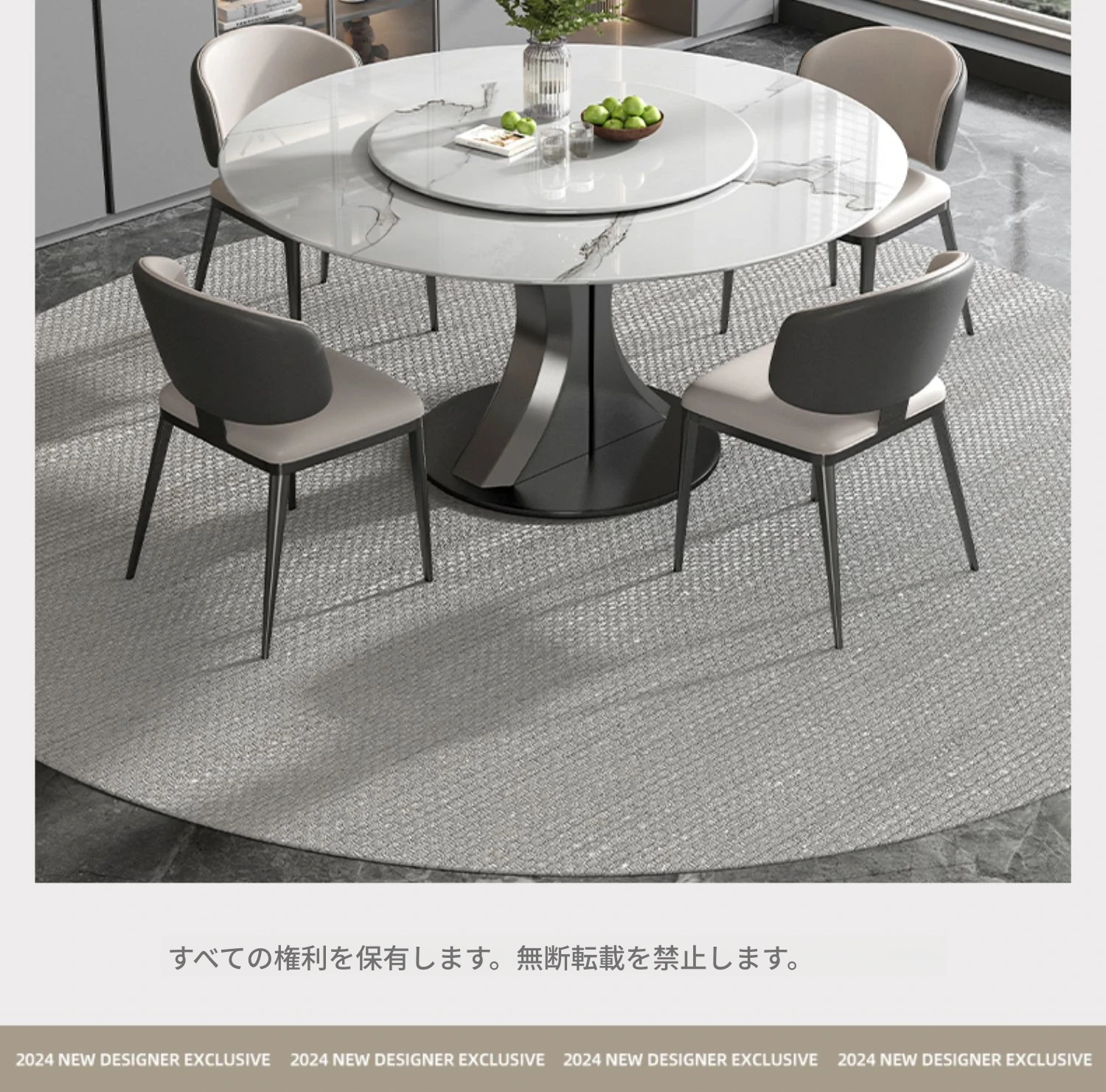 1.2M天然大理石ダイニングテーブル+猫爪皮製ダイニングチェア*4