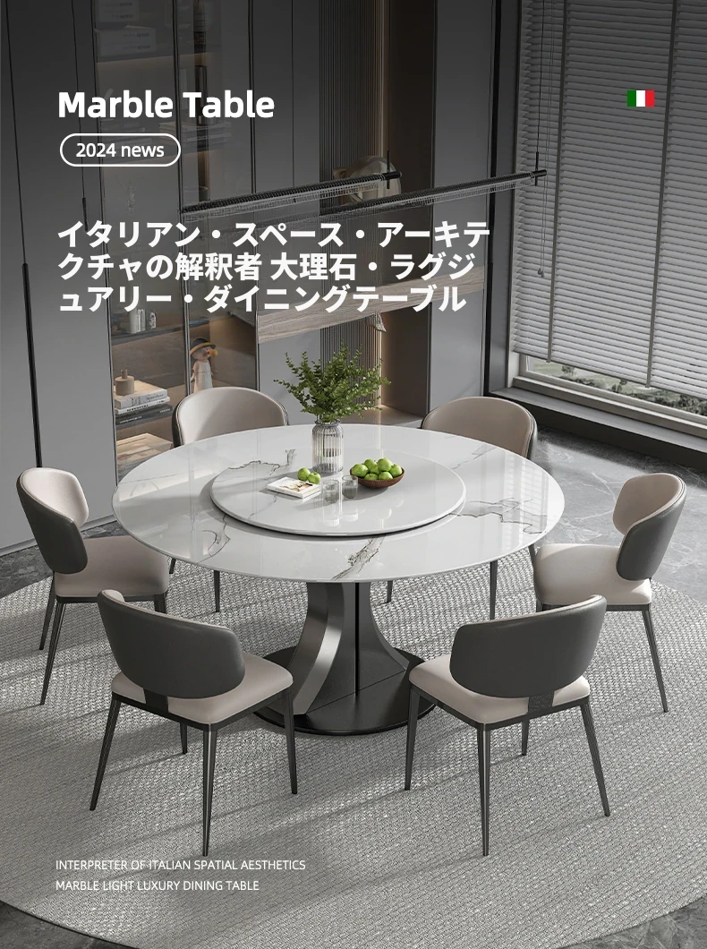 1.2M天然大理石ダイニングテーブル+猫爪皮製ダイニングチェア*6