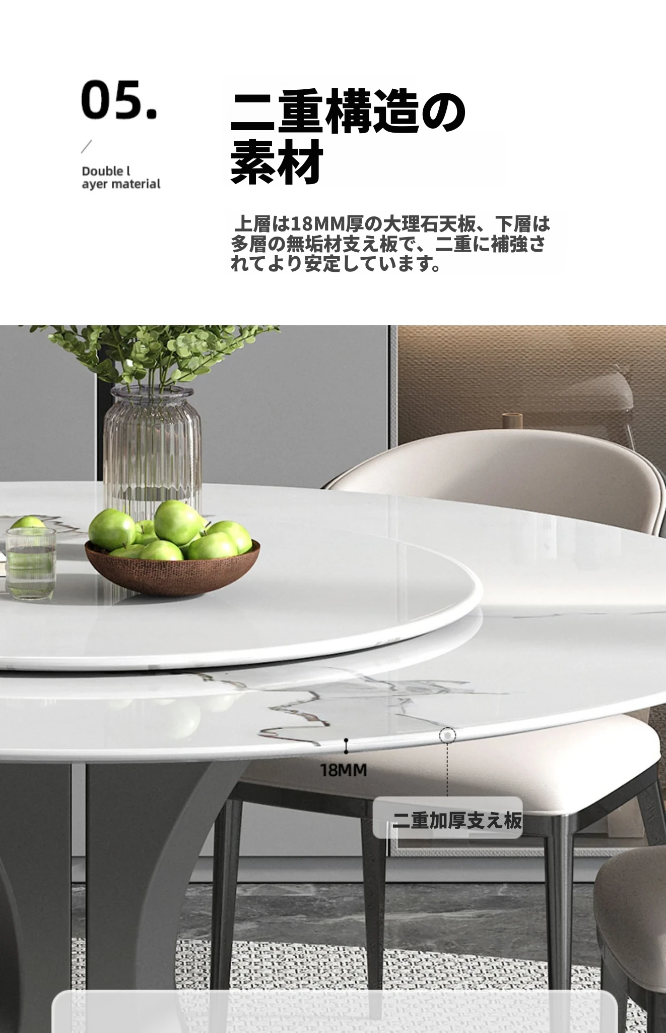 1.35M天然大理石ダイニングテーブル【全底板無料アップグレード】