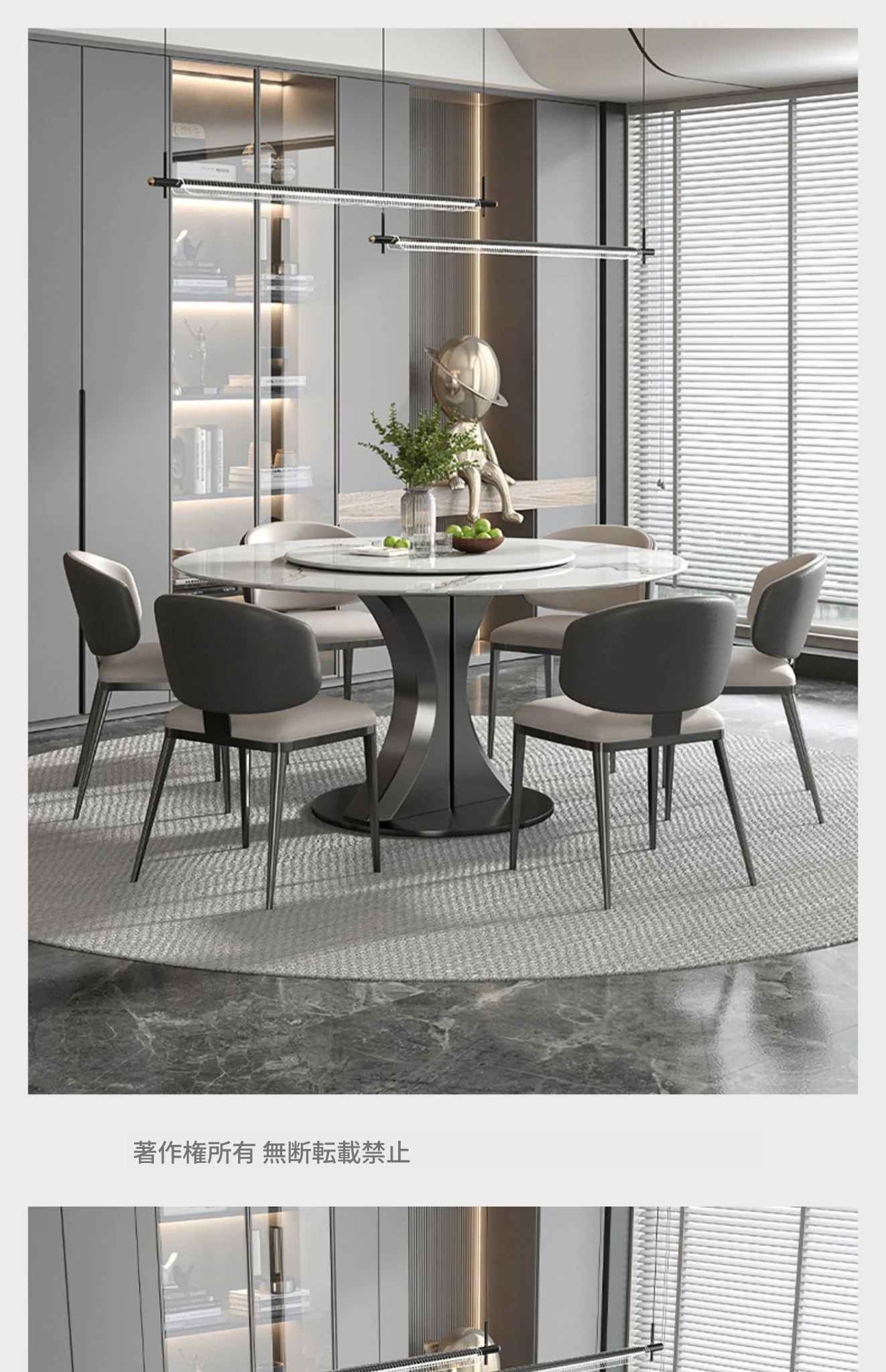 1.35M天然大理石ダイニングテーブル+猫爪皮製ダイニングチェア*4