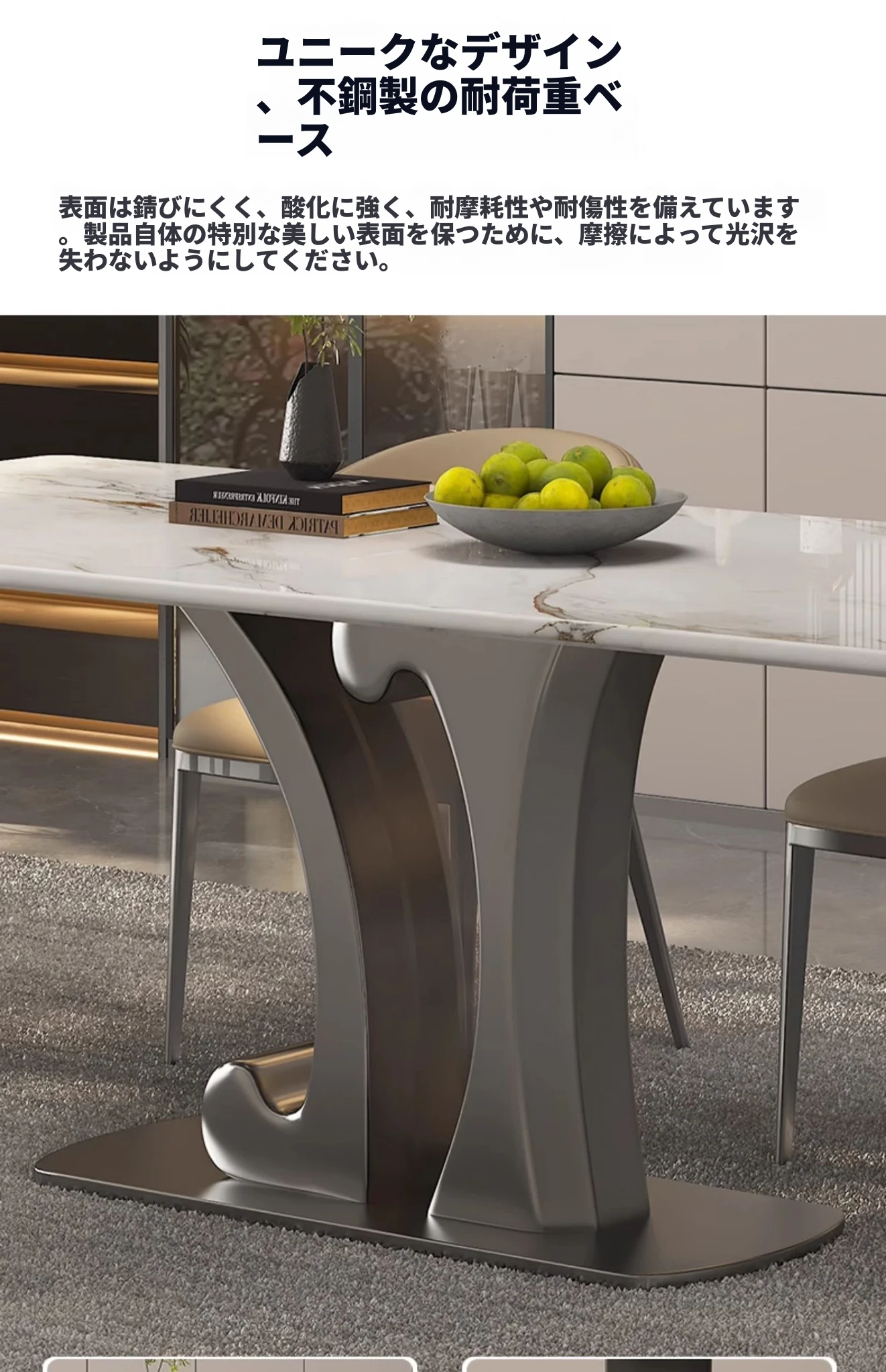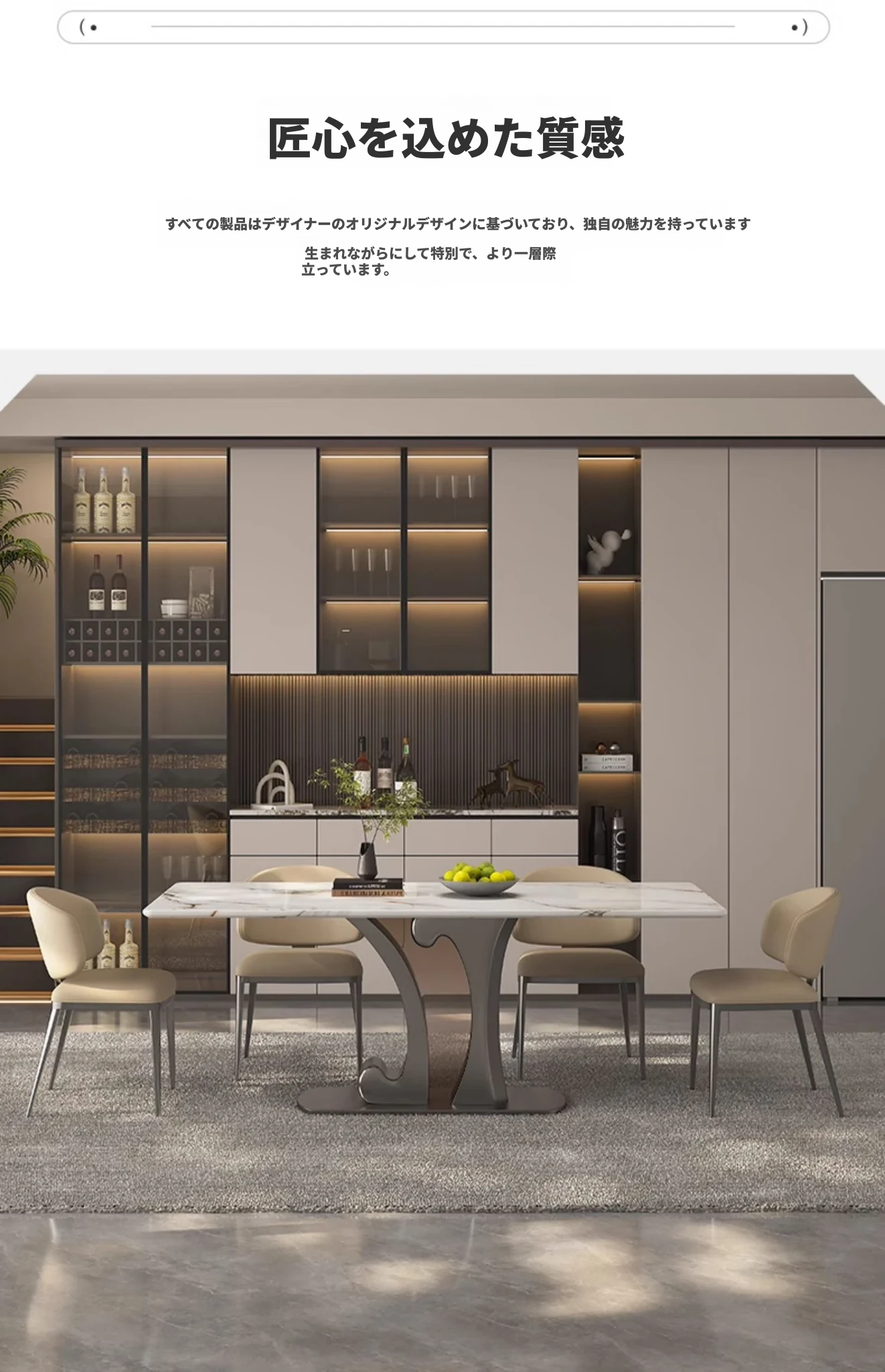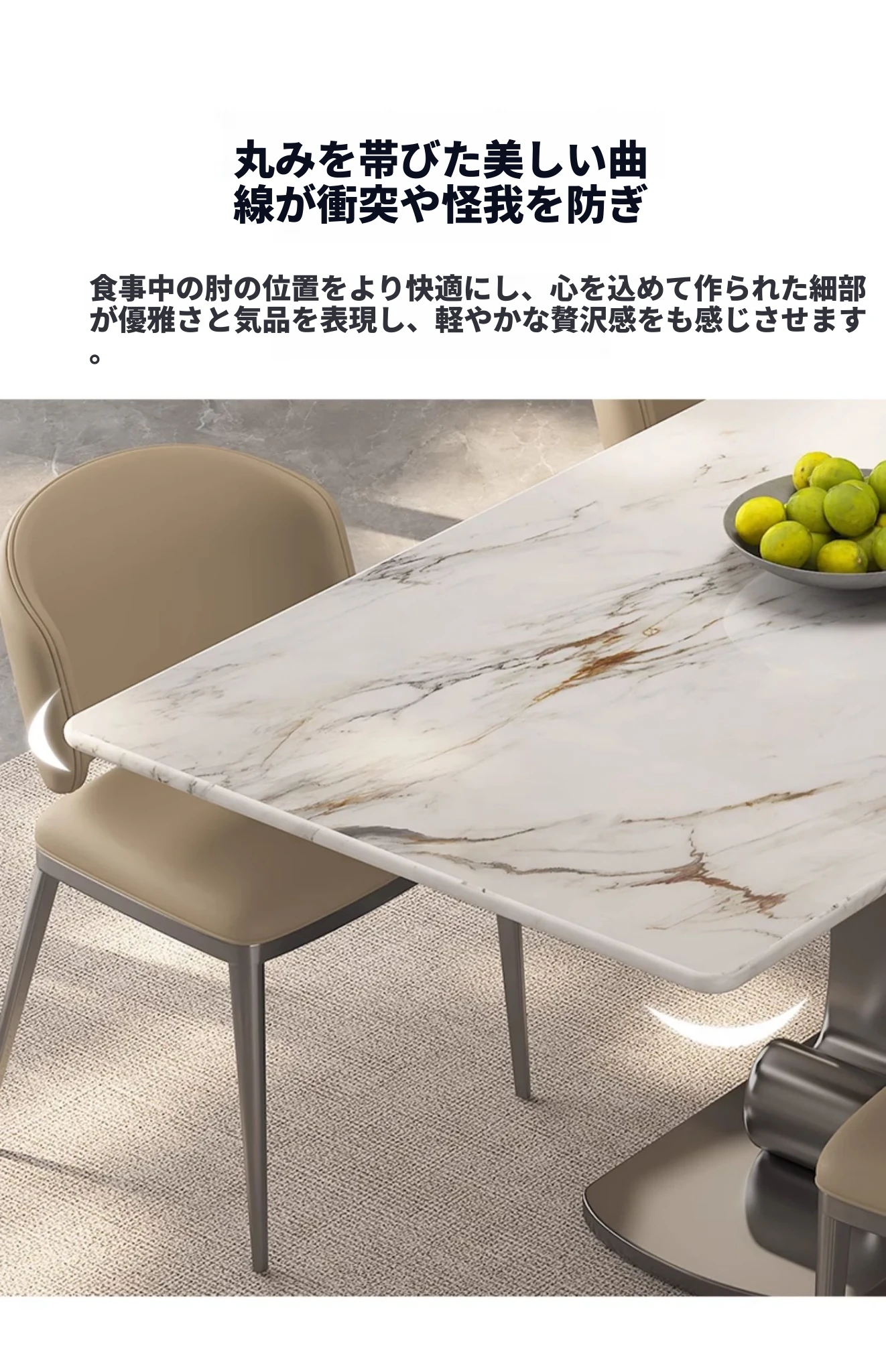 1.6天然ミクロ結晶石ダイニングテーブル+猫の爪を引っかけるレザーのダイニングチェア*4