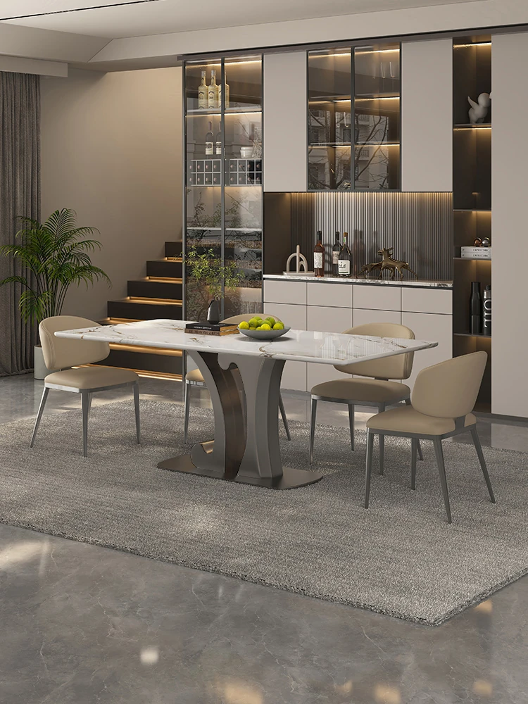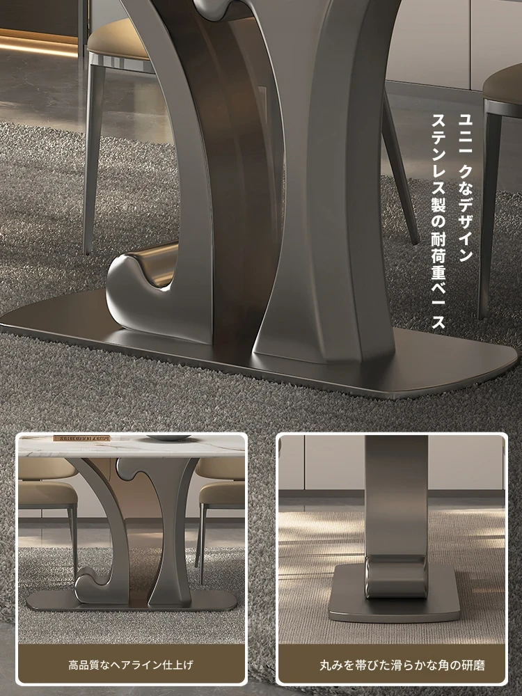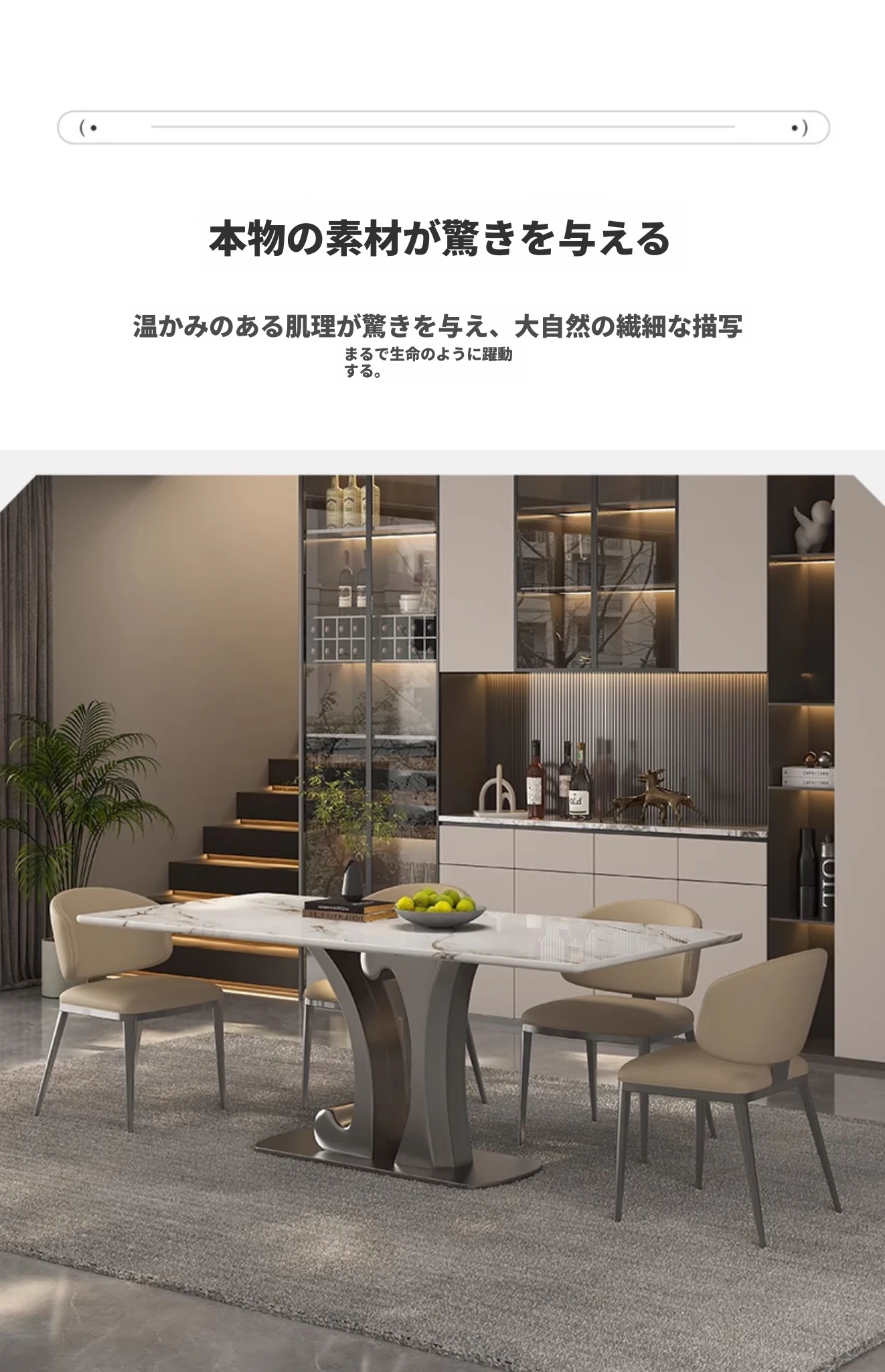 1.6天然ミクロ結晶石ダイニングテーブル+猫の爪を引っかけるレザーのダイニングチェア*4