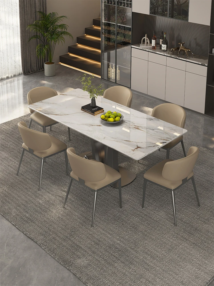 1.3天然ミクロ結晶石ダイニングテーブル+猫の爪を引っかけるレザーのダイニングチェア*6