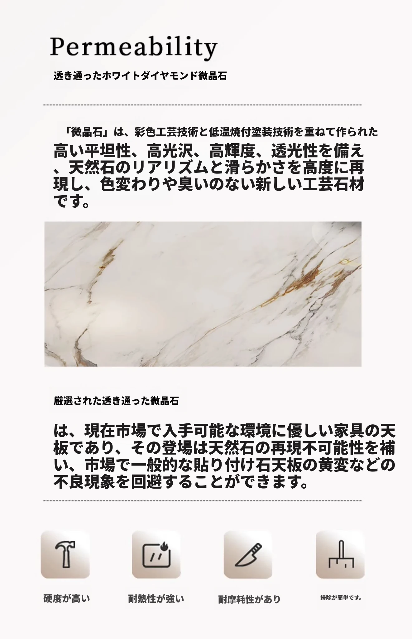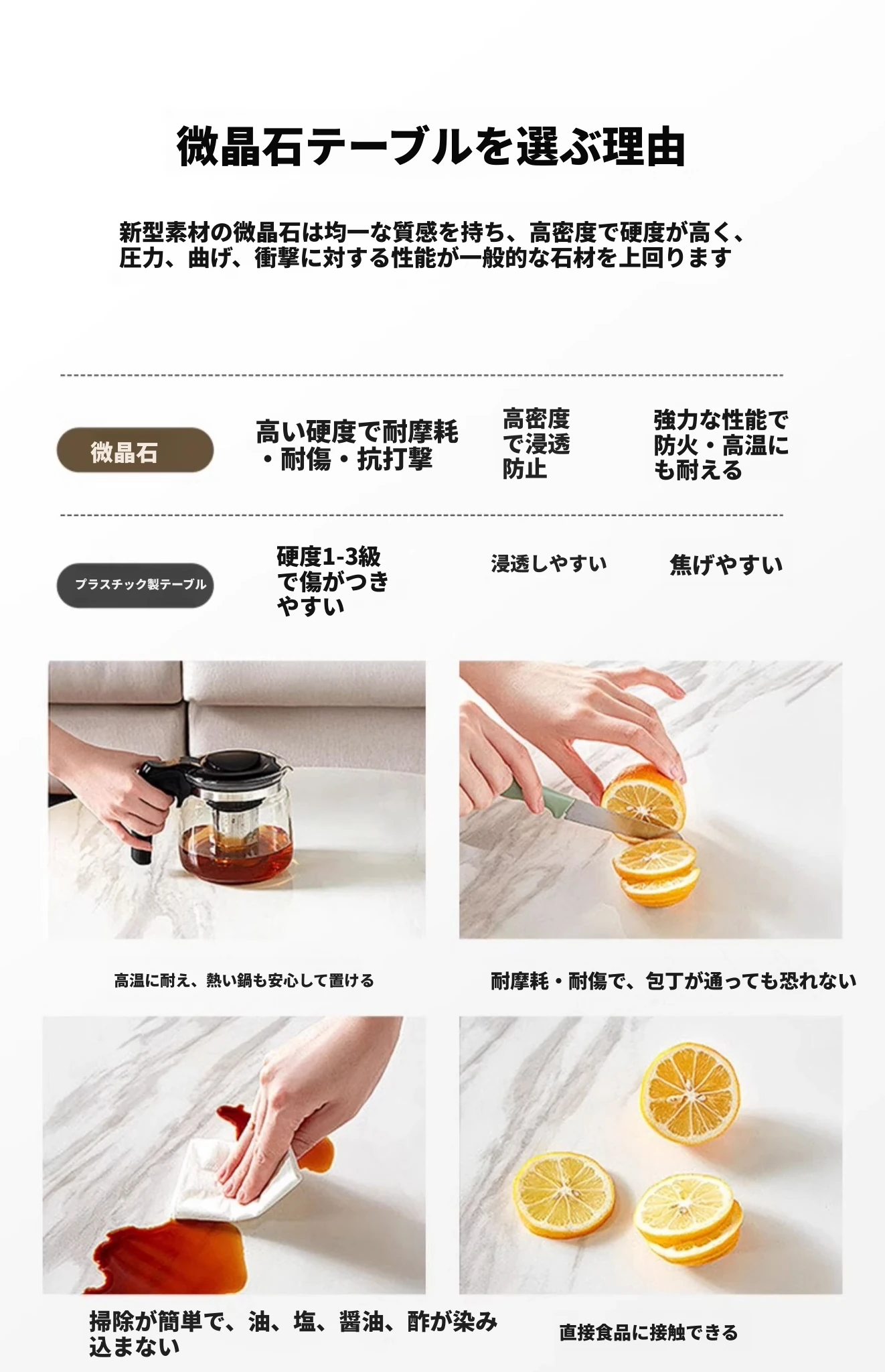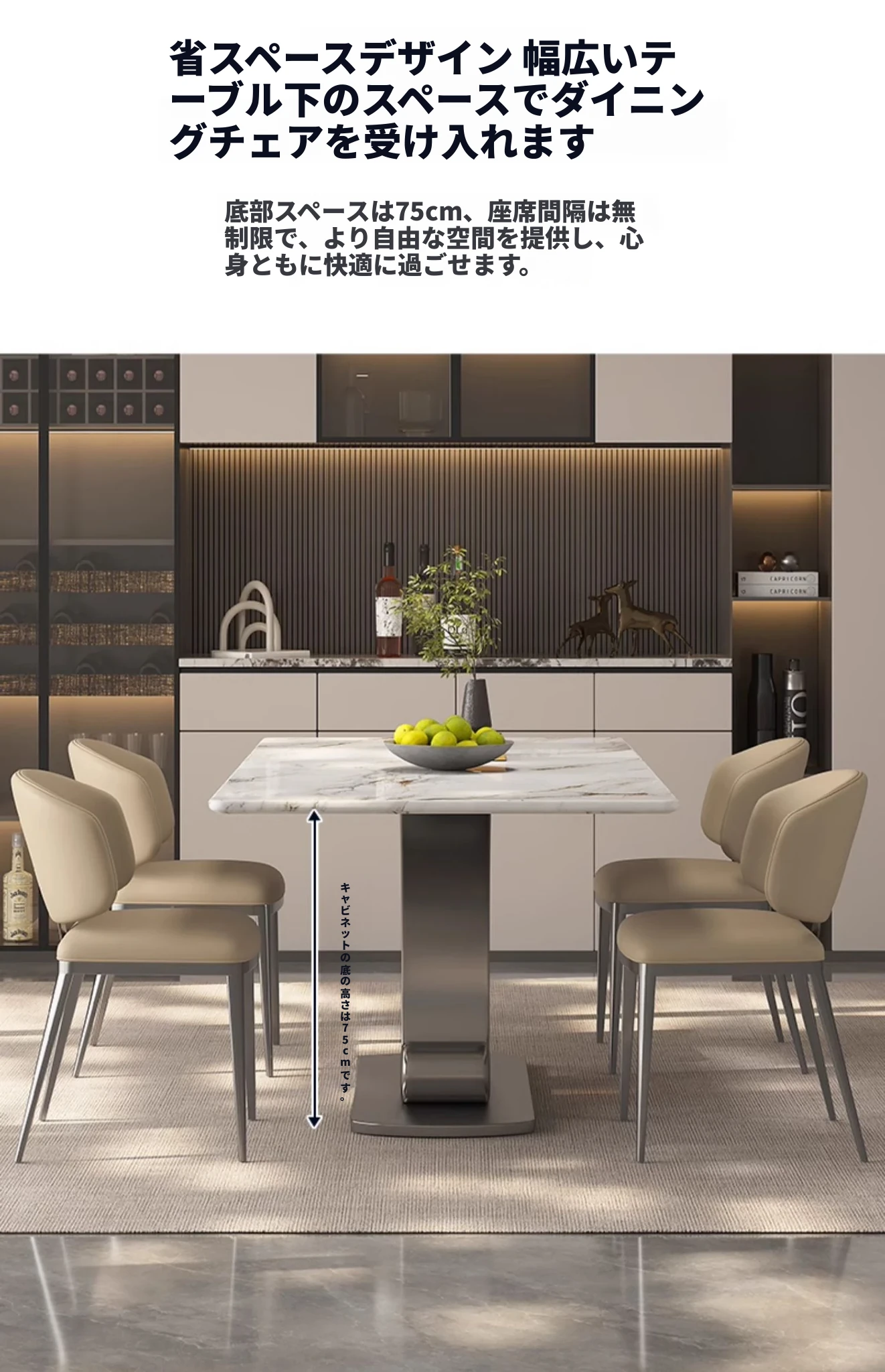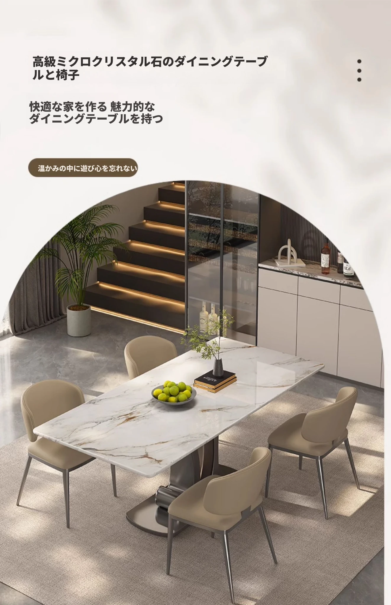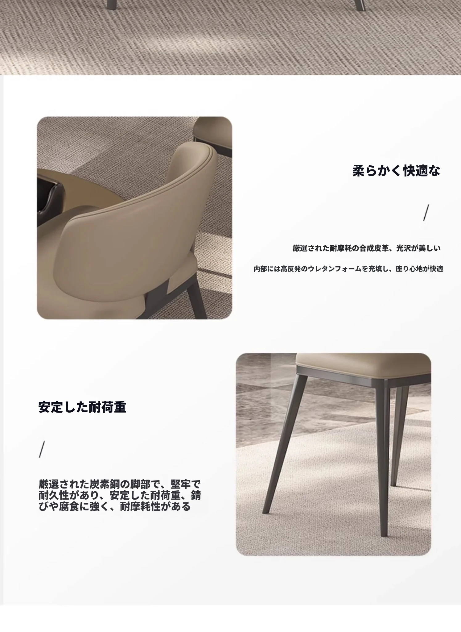 1.3天然ミクロ結晶石ダイニングテーブル+猫の爪を引っかけるレザーのダイニングチェア*4