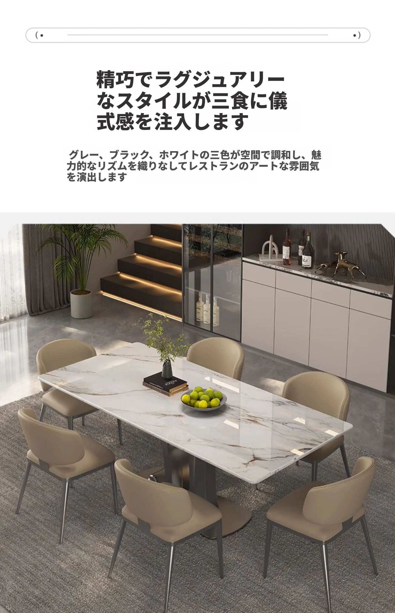 1.4天然ミクロ結晶石ダイニングテーブル+猫の爪を引っかけるレザーのダイニングチェア*6