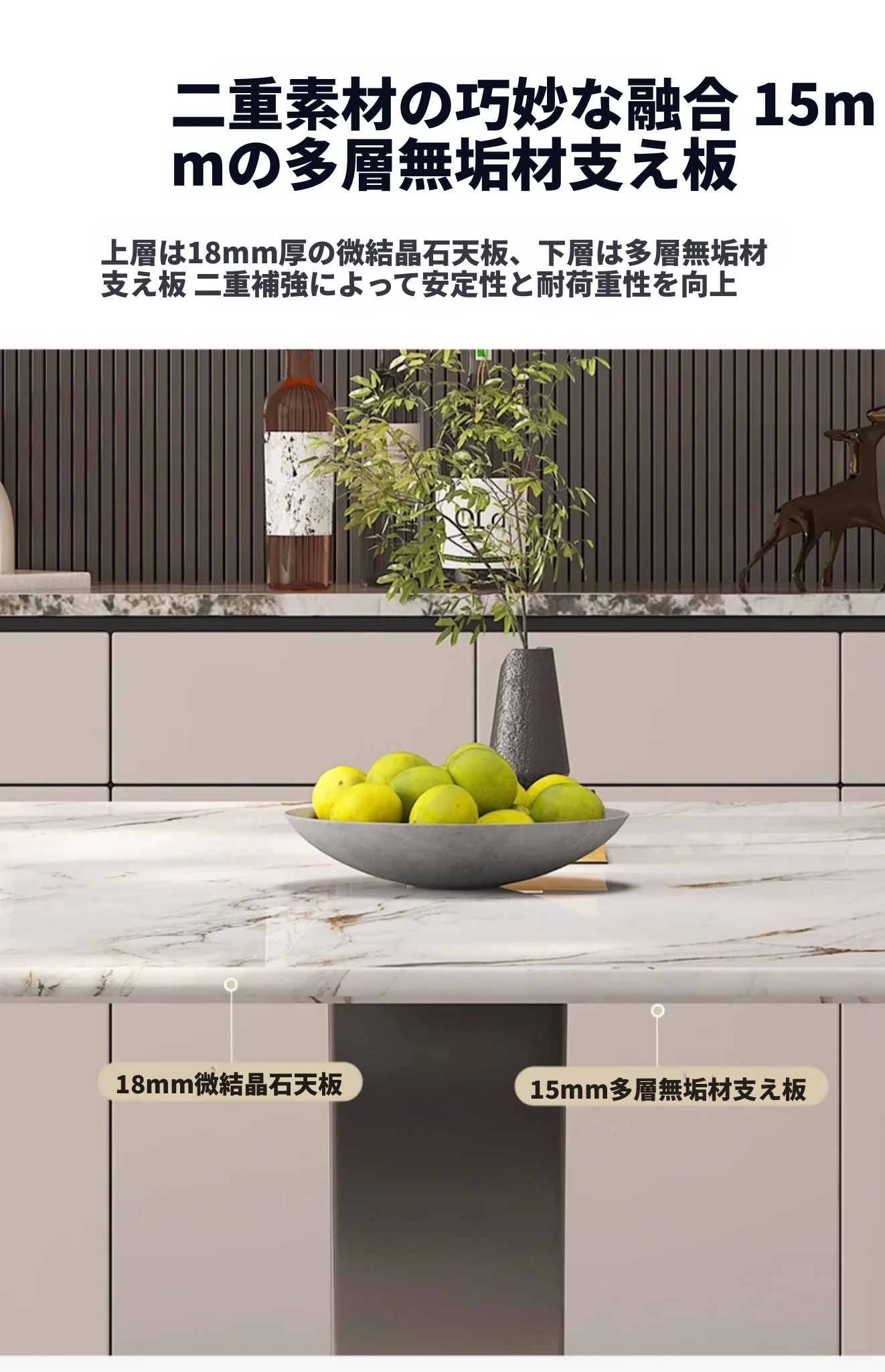 1.8天然ミクロ結晶石ダイニングテーブル+猫の爪を引っかけるレザーのダイニングチェア*4