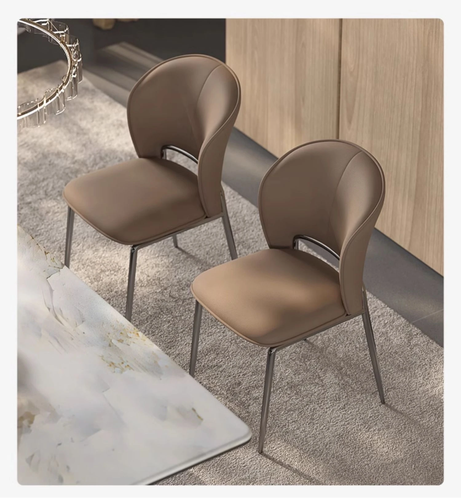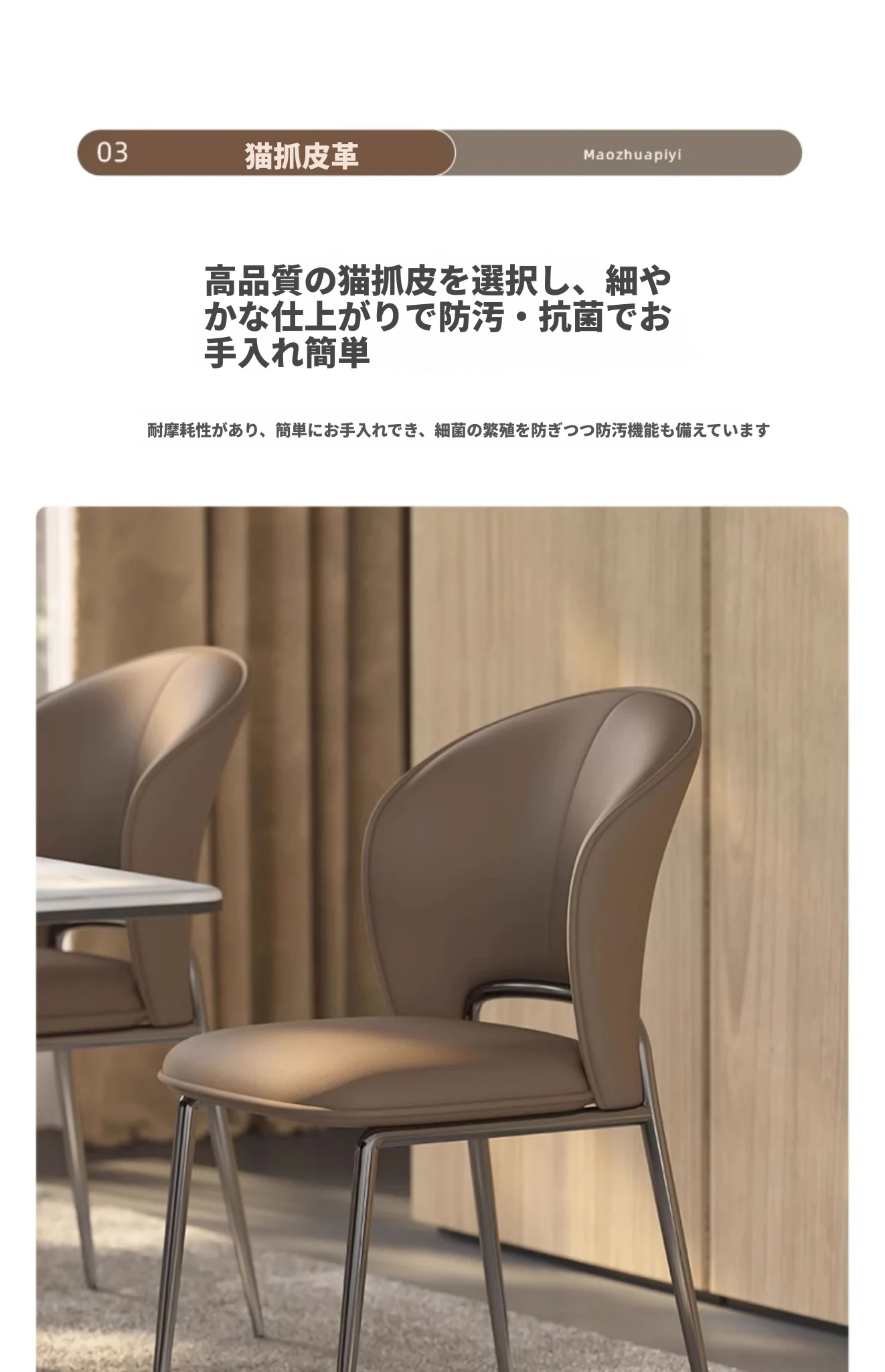 イタリアンミニマリズムデザインの猫抓皮製ダイニングチェア - 北欧スタイルの洗練された食卓椅子、ホテルやリビングに最適な背もたれ付き!おしゃれで快適な空間を演出します。