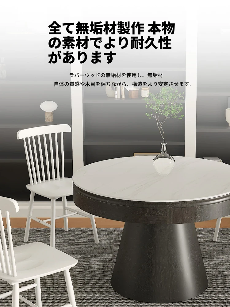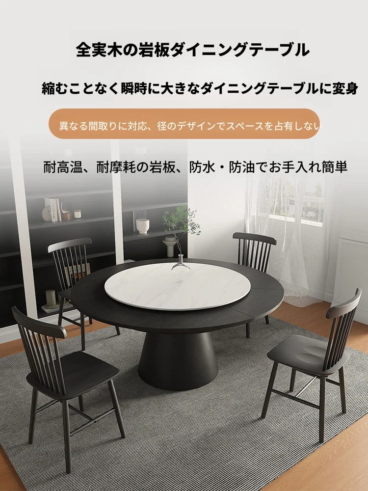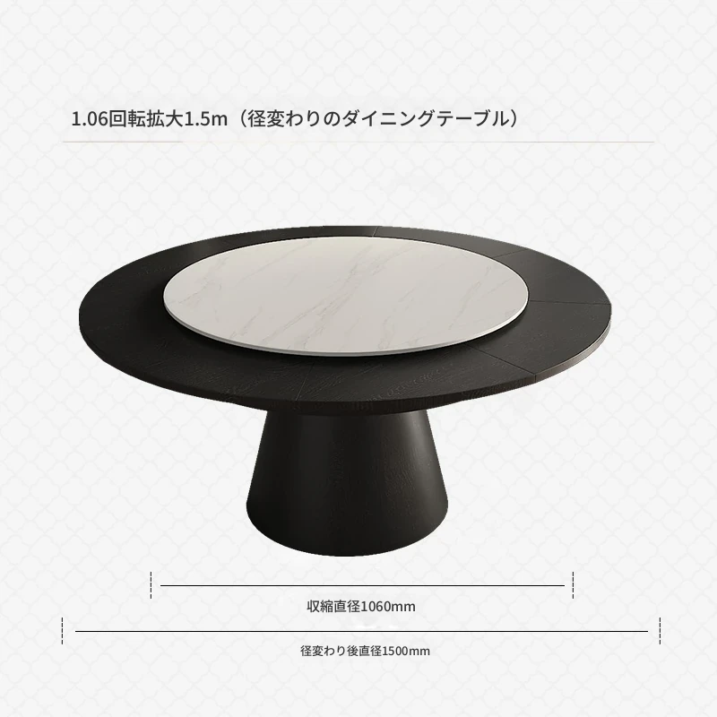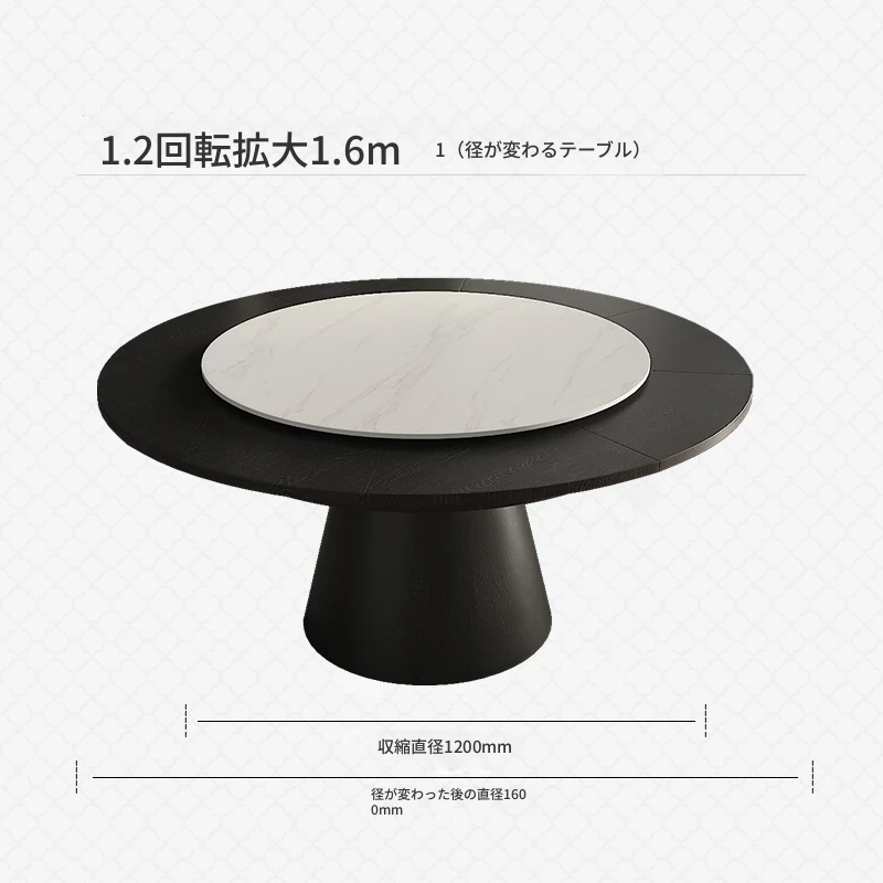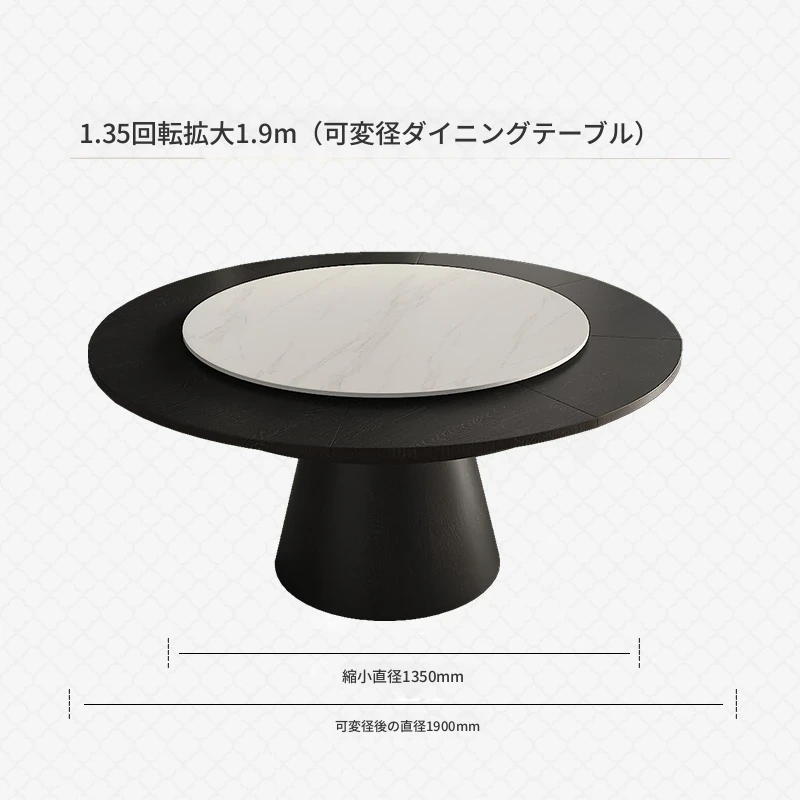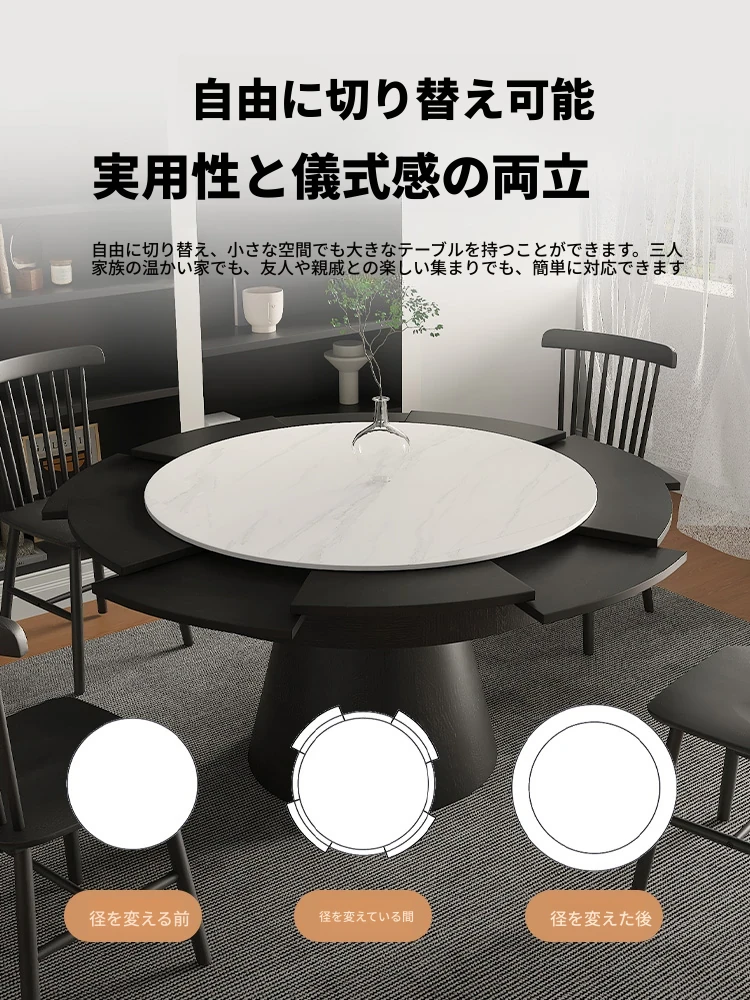イタリアンモダンスタイルの天然石回転テーブル - スペースを有効活用する伸縮式サークルダイニングテーブル。小さなお部屋にも最適なデザイン!