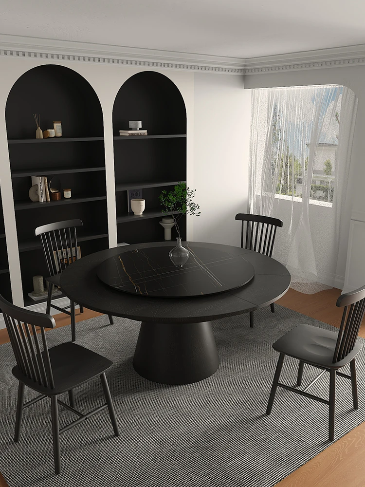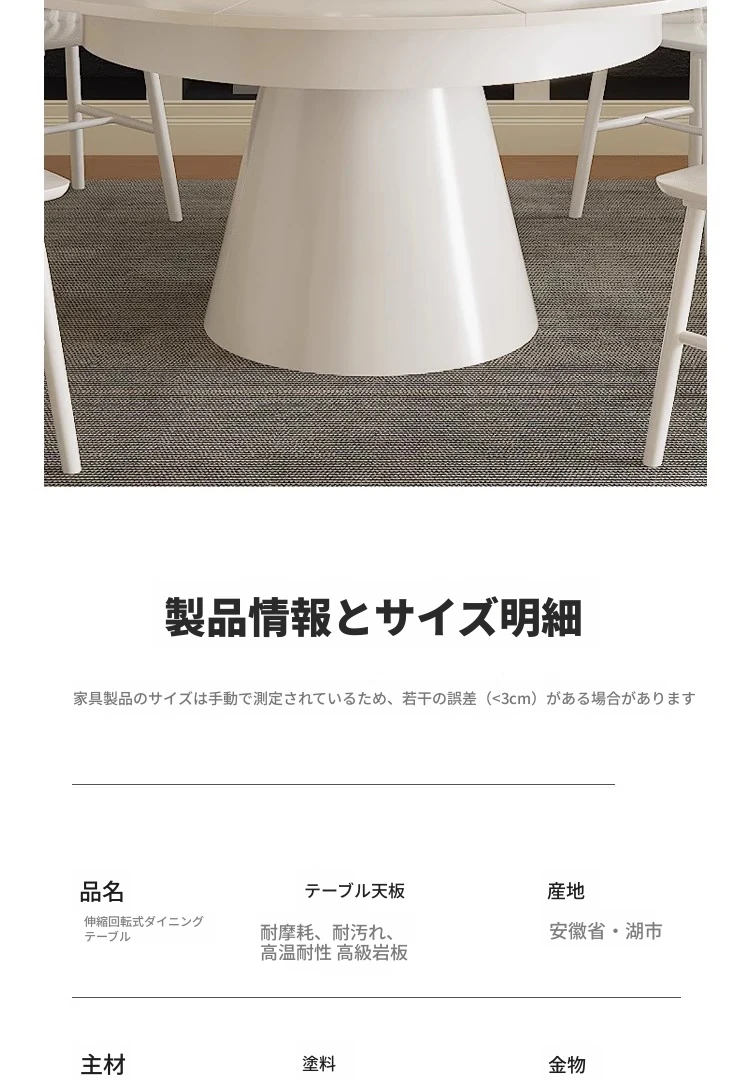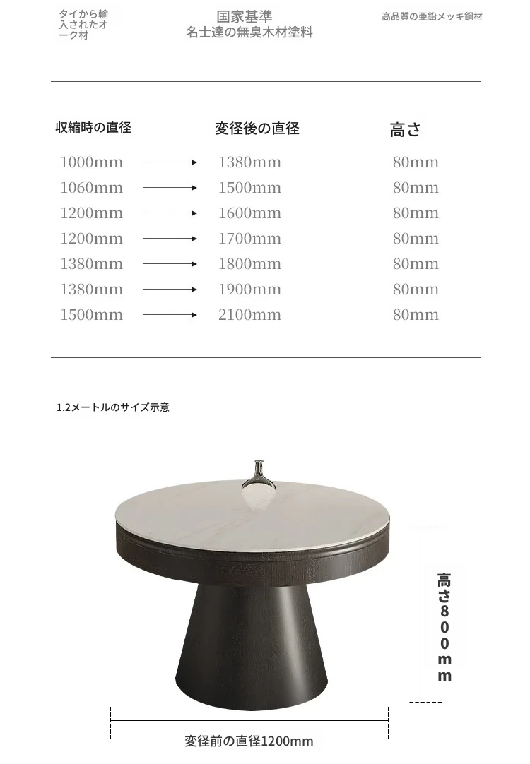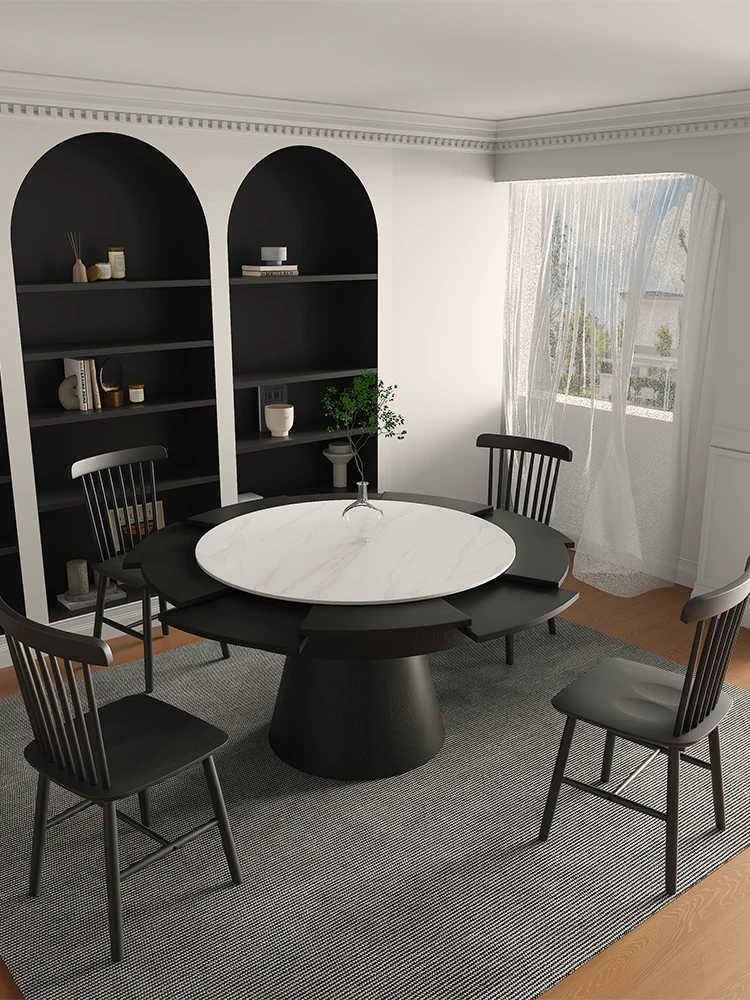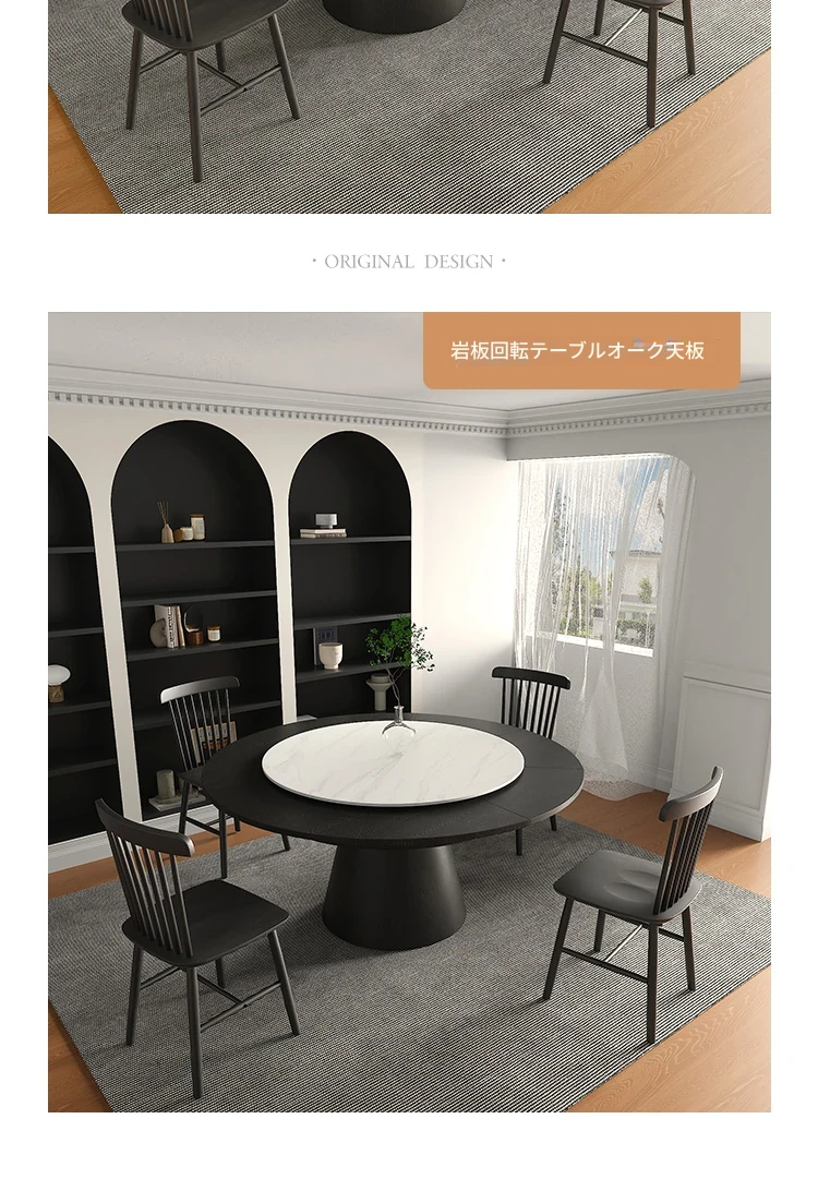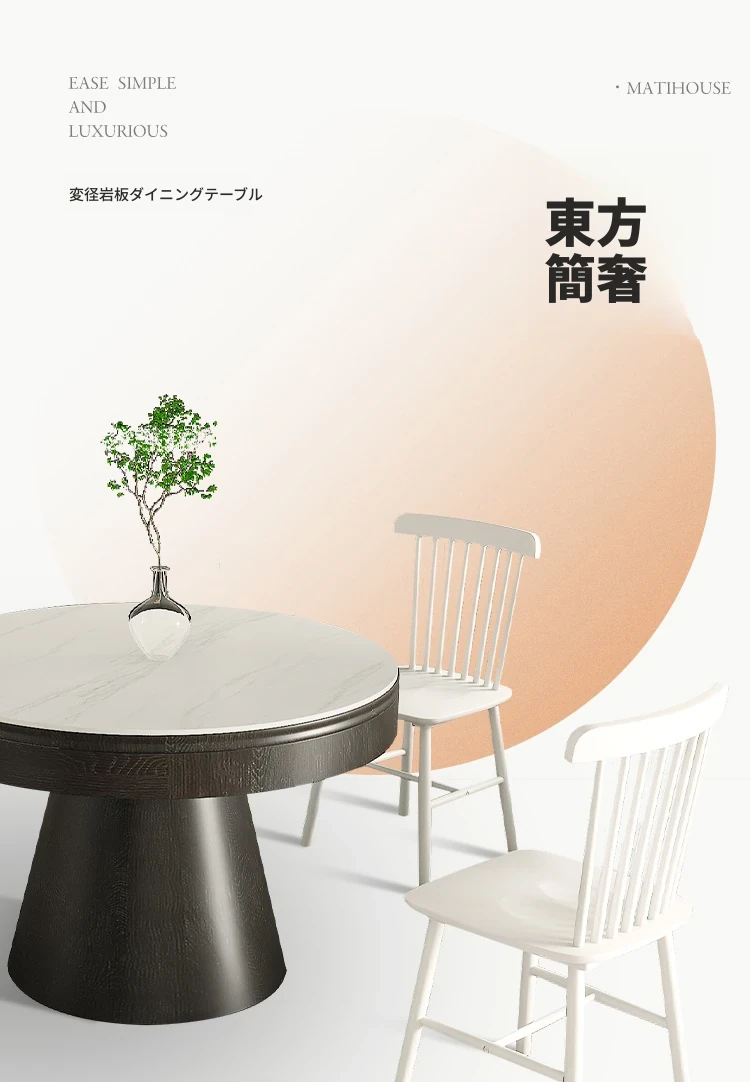 イタリアンモダンスタイルの天然石回転テーブル - スペースを有効活用する伸縮式サークルダイニングテーブル。小さなお部屋にも最適なデザイン!