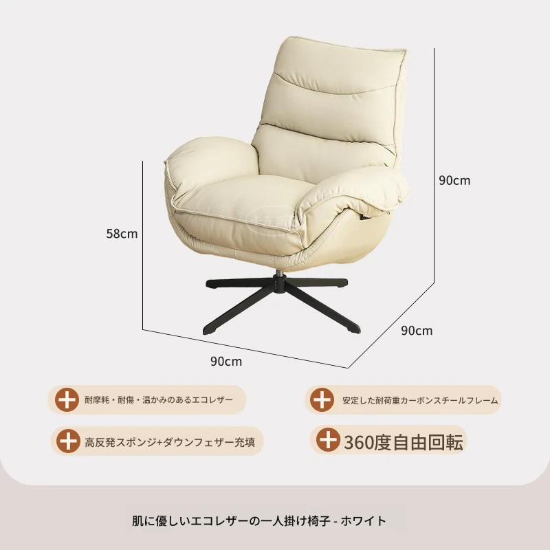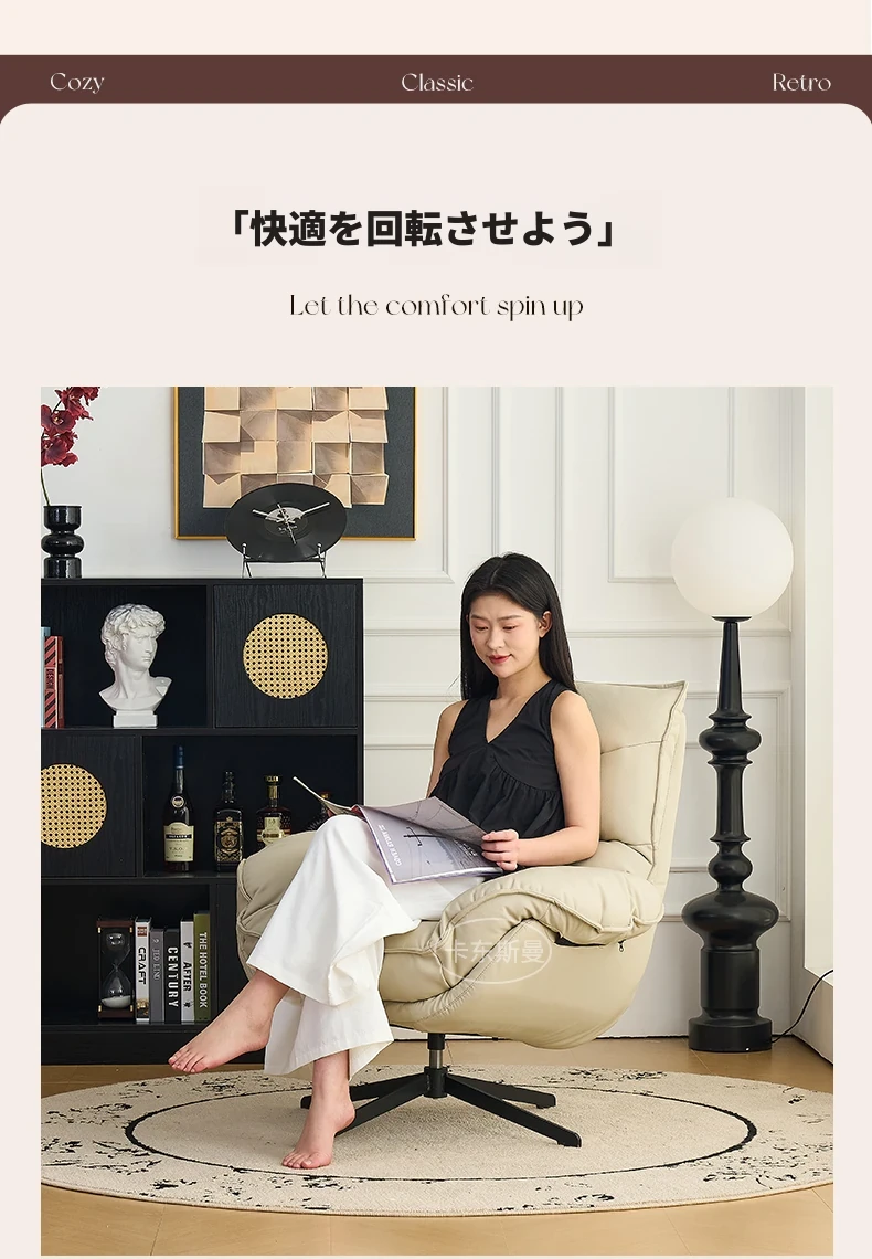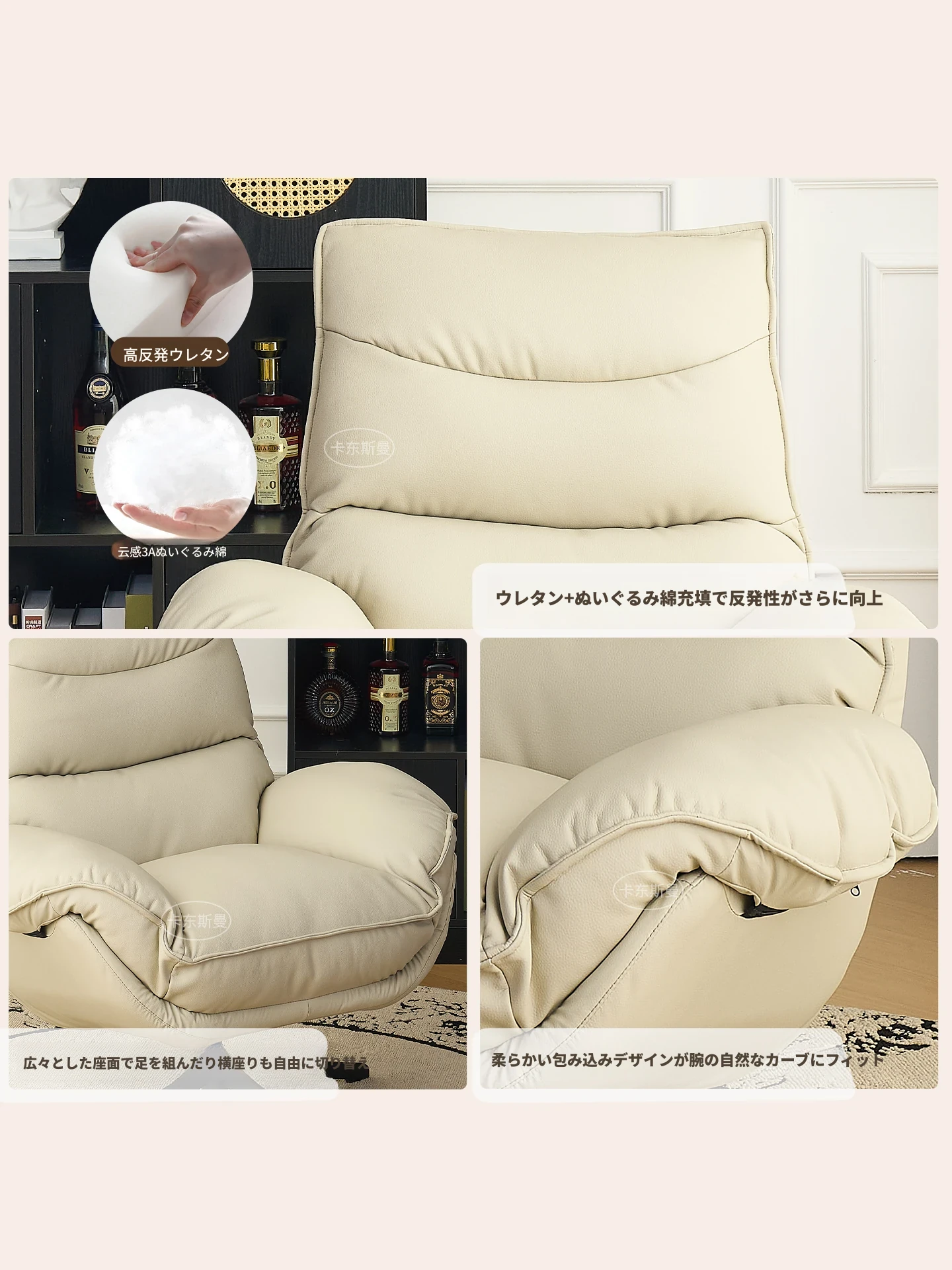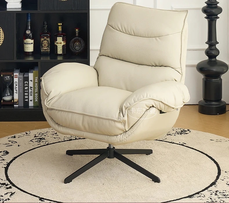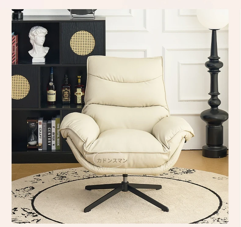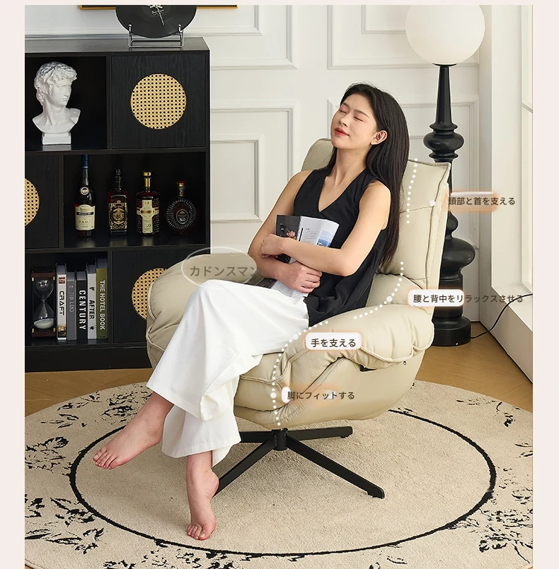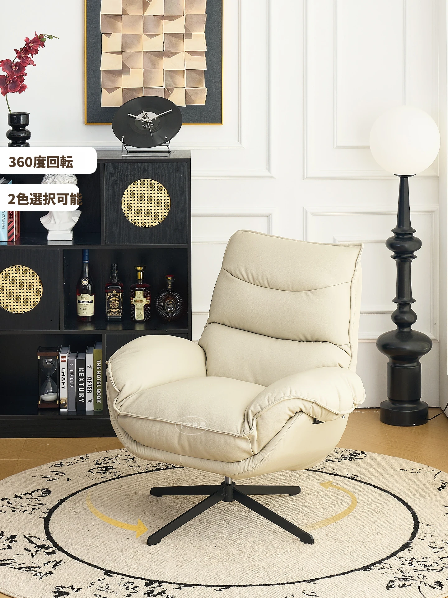イタリアンスタイルの回転リクライニングソファチェア|デザイナーズ軽奢なカジュアルチェア|リビングやバルコニー、寝室に最適なコンピューターチェアとしても使えるシンプルで洗練された一人用チェア