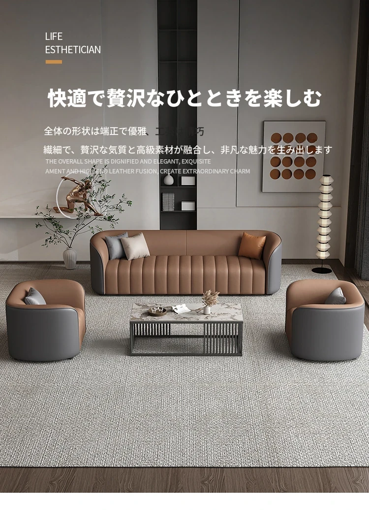 ホテルロビー VIPラウンジのリラックススペース、接客エリアに最適な販売用ソファ。洗練されたデザインでお客様をお迎えし、心地よい会話を楽しむための完璧なアイテムです。