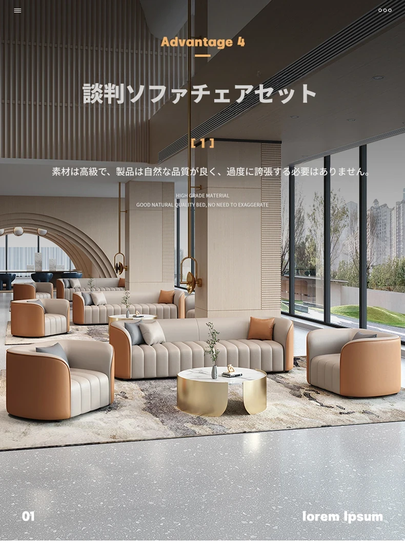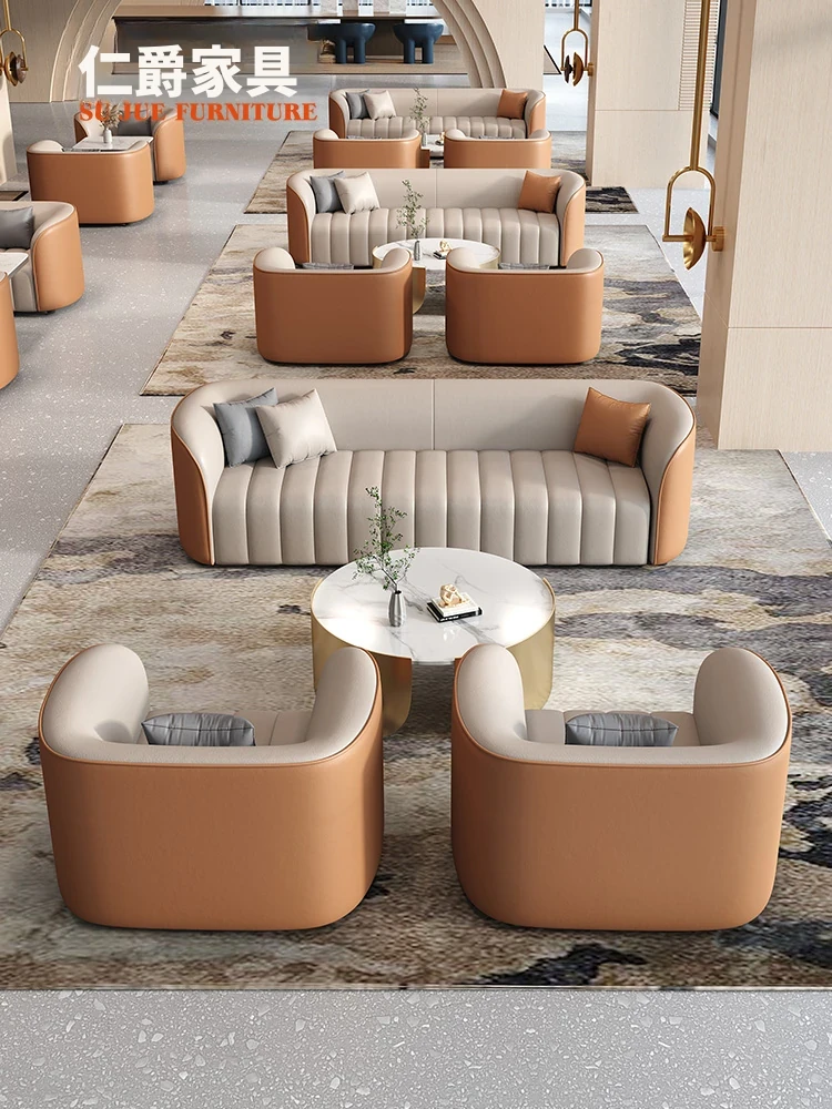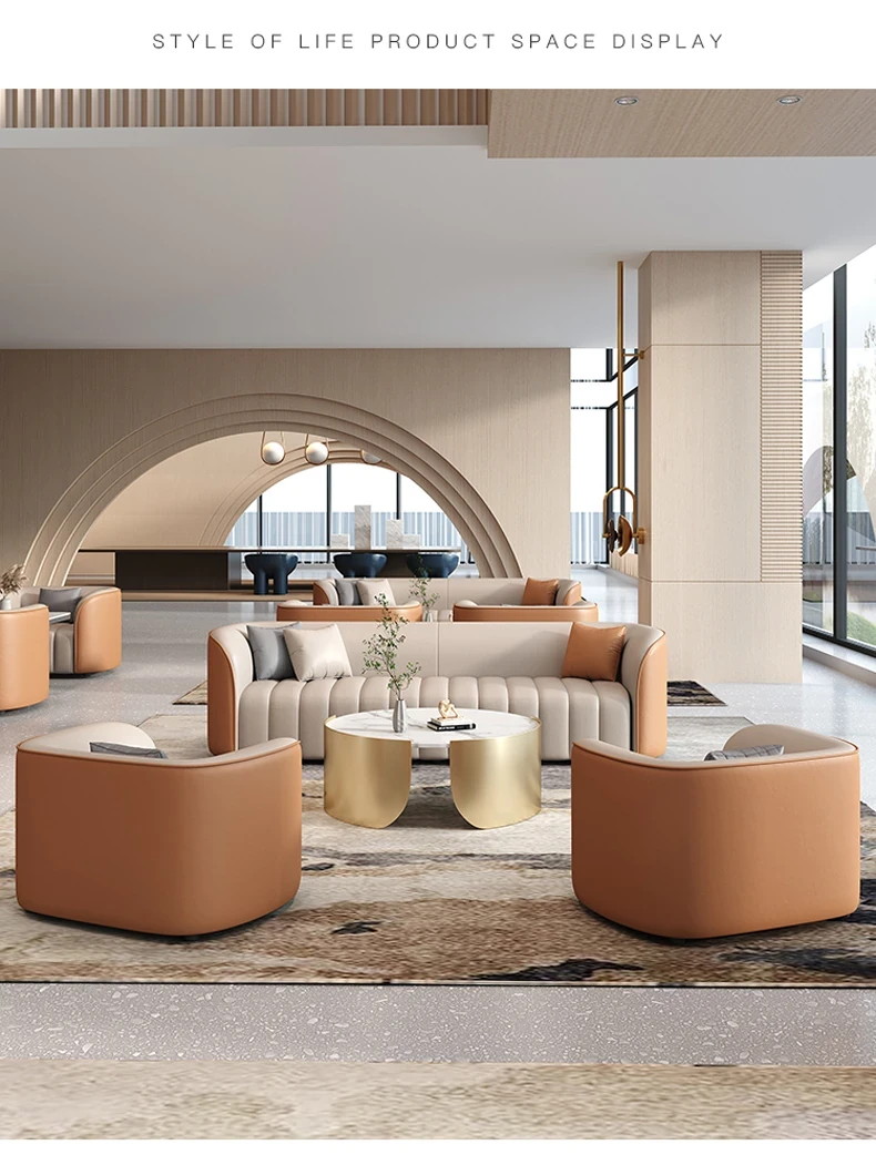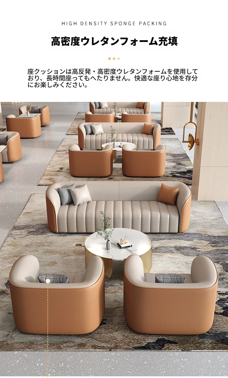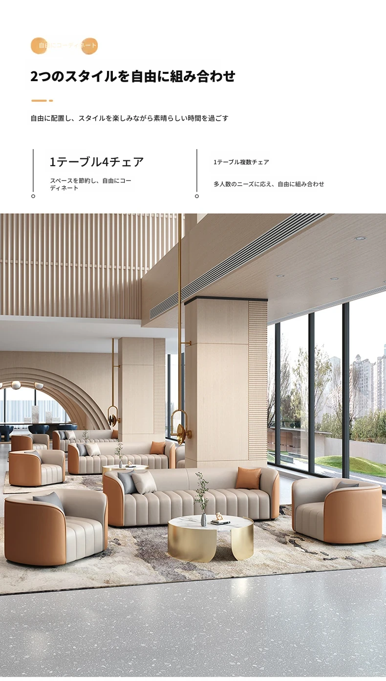 ホテルロビーVIPラウンジ休憩エリア接客スペース販売オフィス用ソファー、商談に最適なスタイリッシュで快適なソファーです。顧客を迎えるための贅沢な空間を演出し、商談を成功へと導きます。